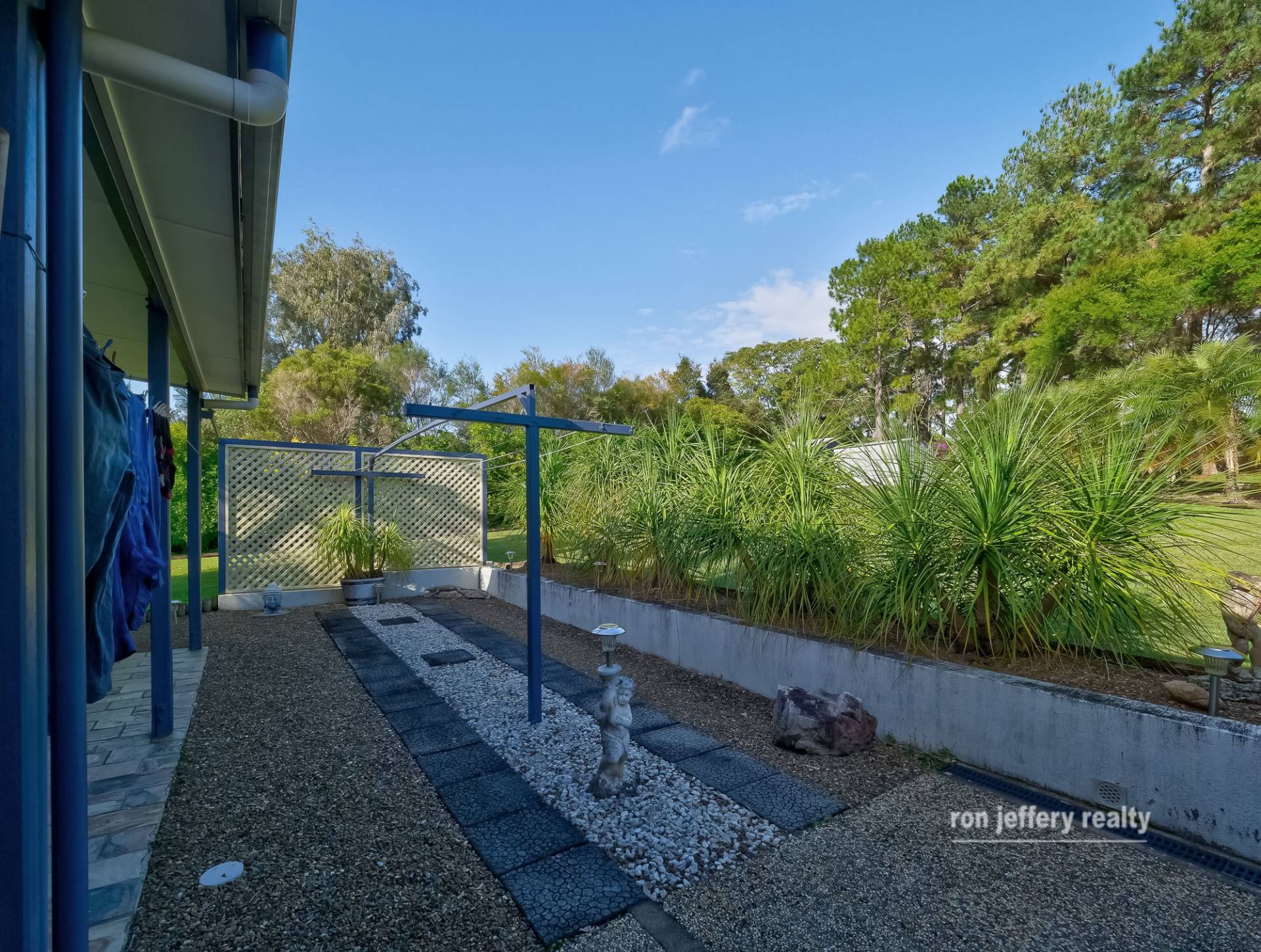 A real feature of this property is the 4-car garage beside the house. It will look after all the vehicle, storage and workshop needs. Amamoor is connected to town water, the property has a septic system and solar power, back to the grid.