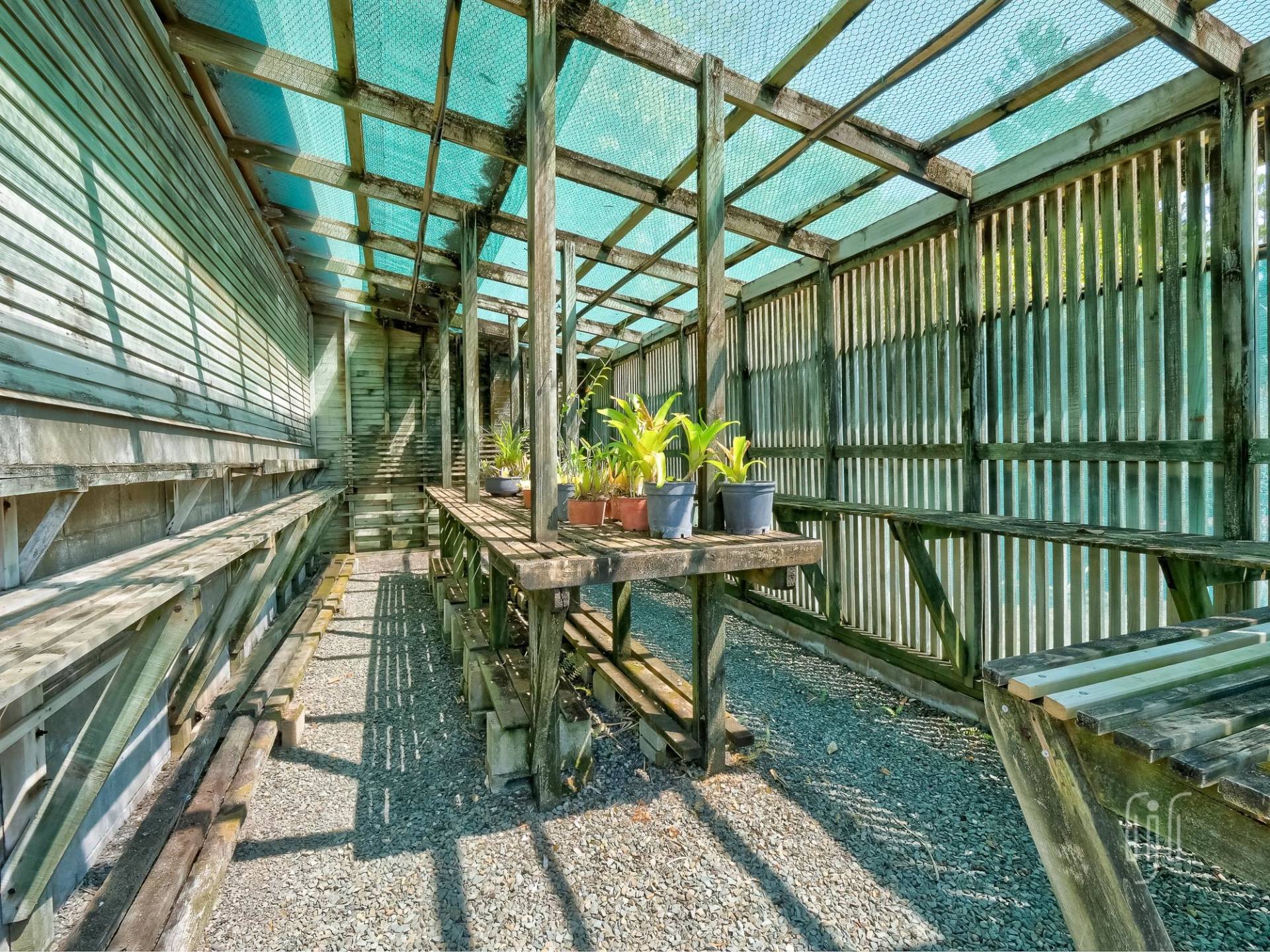 Outbuildings include an original double garage sized shed, an excellent shade house with built-in shelving and an enormous space under the house, ready for further development.
