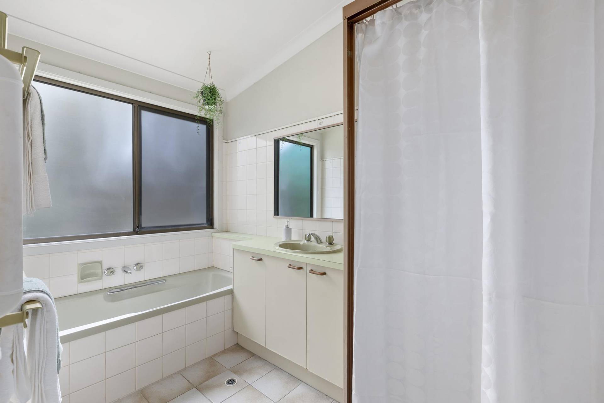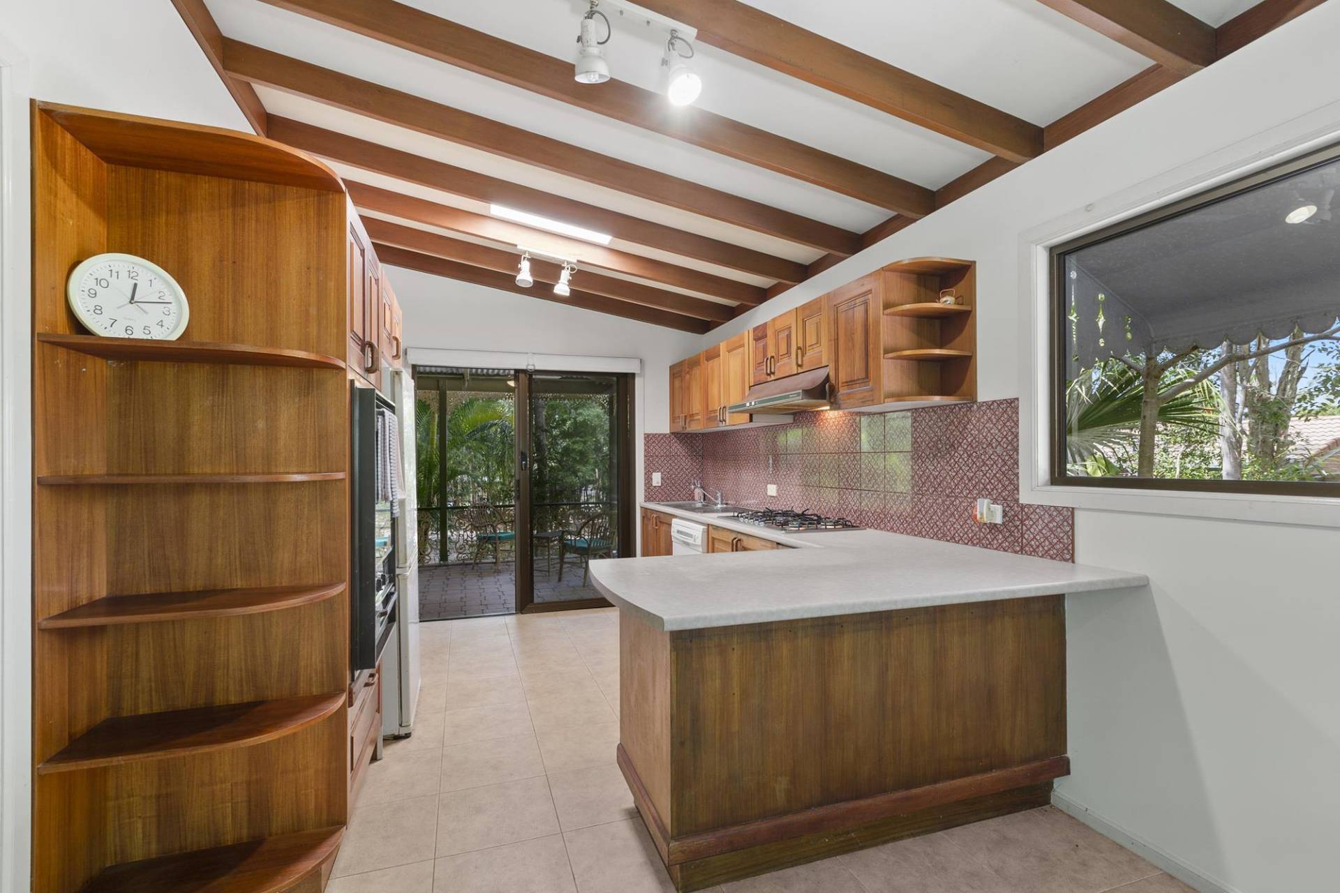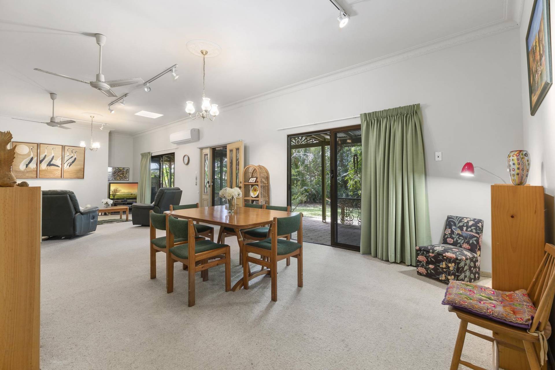 11 Gossamer Dr is a Rustic Retreat, a country home in the city. The homestead here is set well back from the road, shielded by mature grounds on the well-fenced half-acre block (1,926m2). A brick path leads from the gravel driveway to a wide, paved front veranda with high ceilings. Externally, it’s timber-clad and, apart from the front door, has a number of sliding door access points.