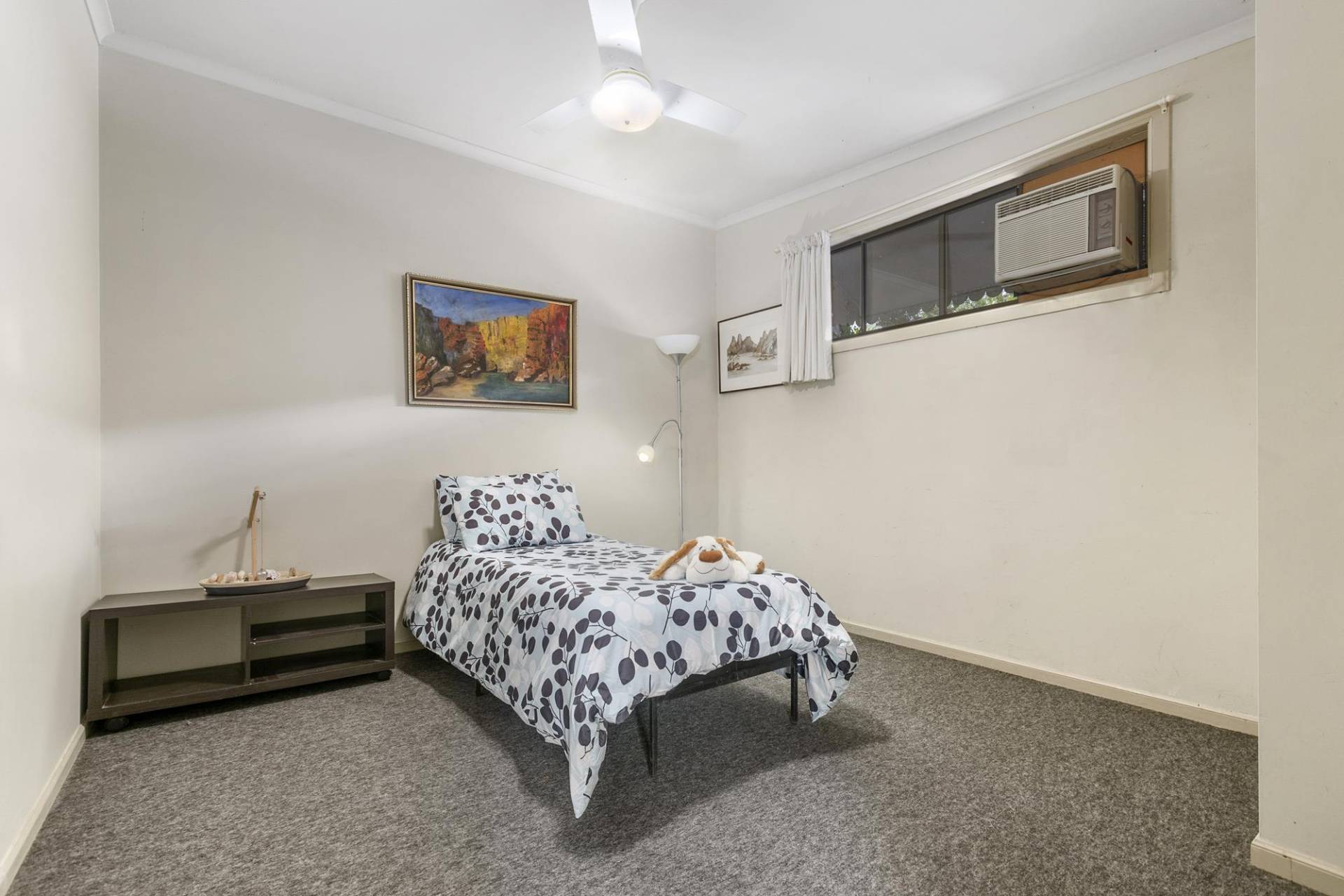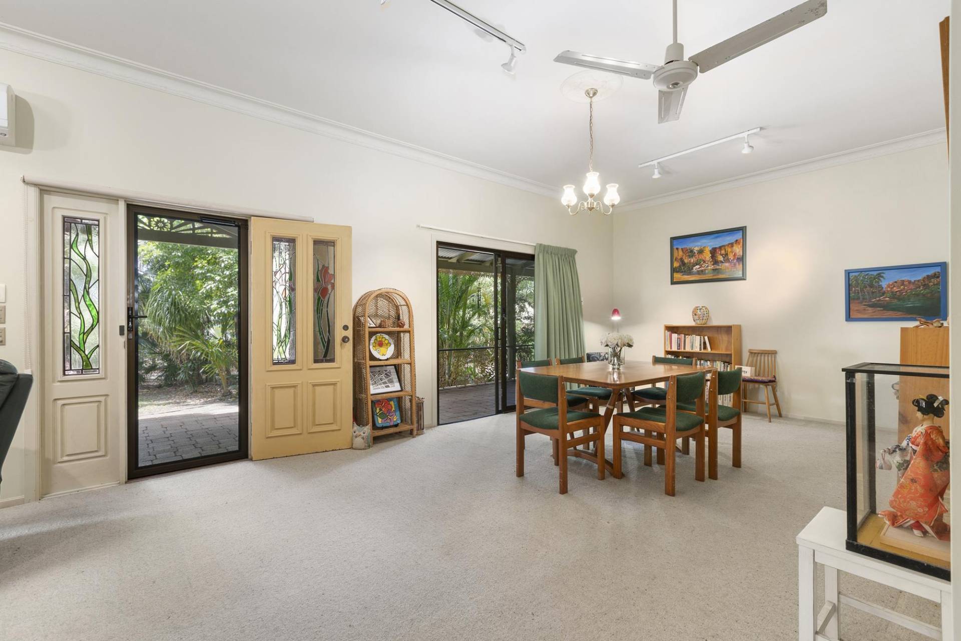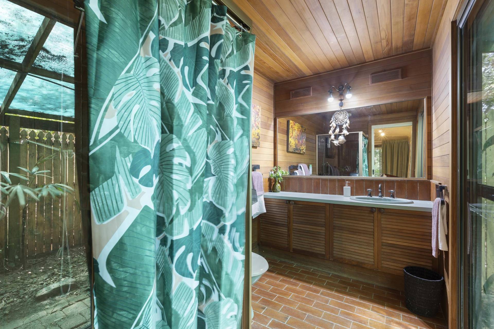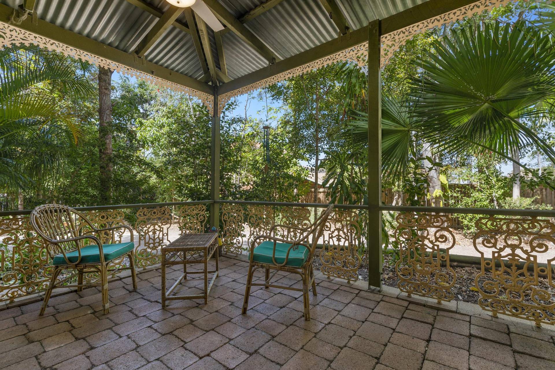 11 Gossamer Dr is a Rustic Retreat, a country home in the city. The homestead here is set well back from the road, shielded by mature grounds on the well-fenced half-acre block (1,926m2). A brick path leads from the gravel driveway to a wide, paved front veranda with high ceilings. Externally, it’s timber-clad and, apart from the front door, has a number of sliding door access points.