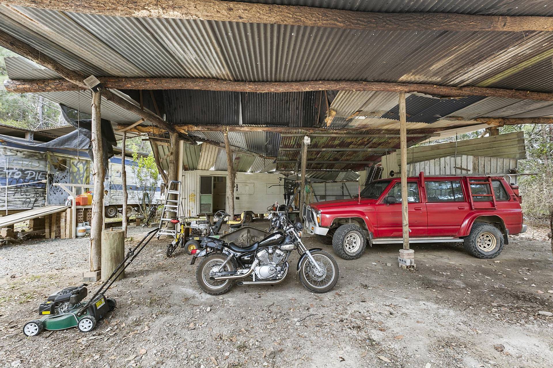 Across from the shack is a bush structure that incorporates 2 vans ... one as accommodation, the other as a workshop. There is power on the block, with two metres!