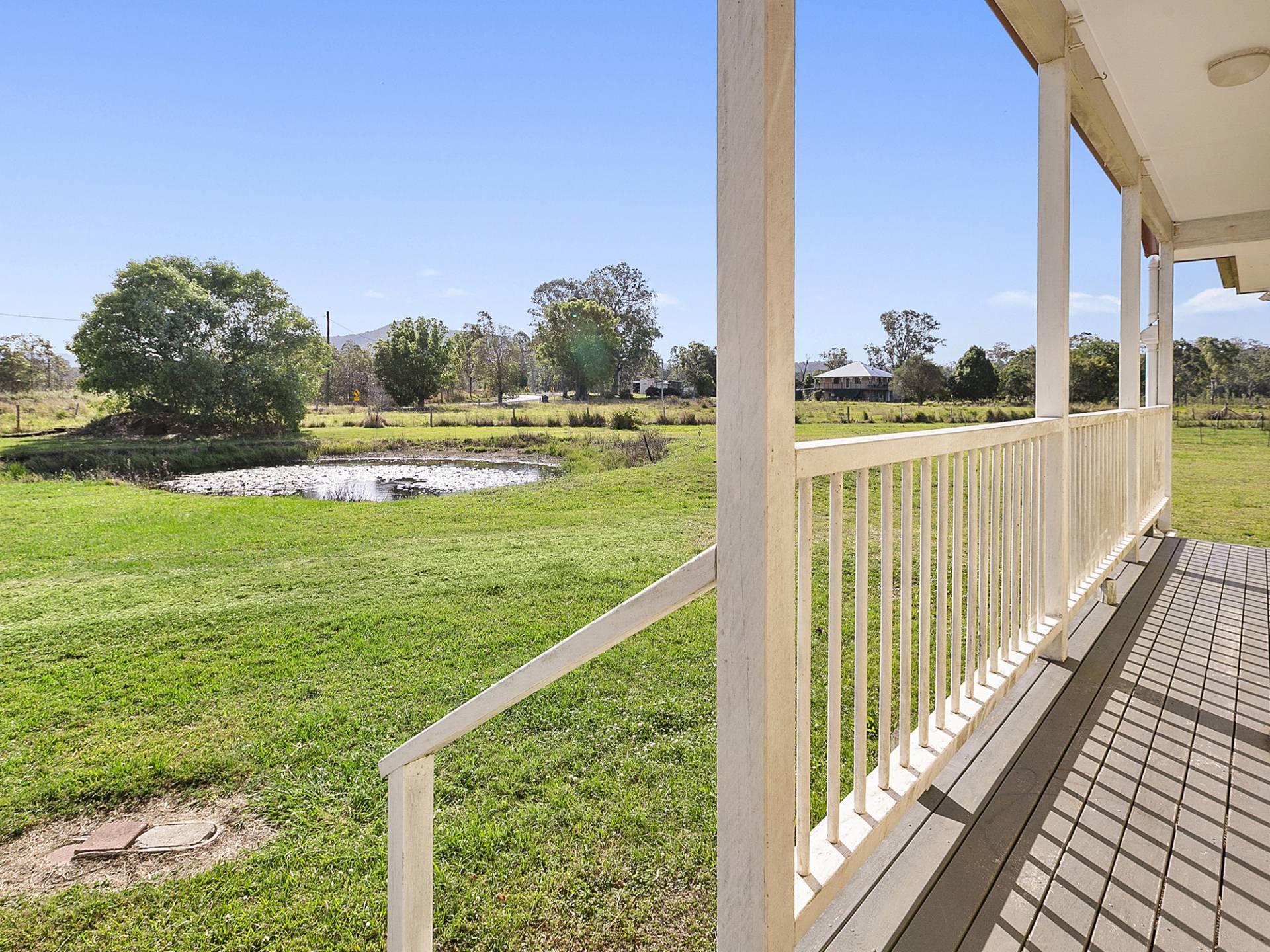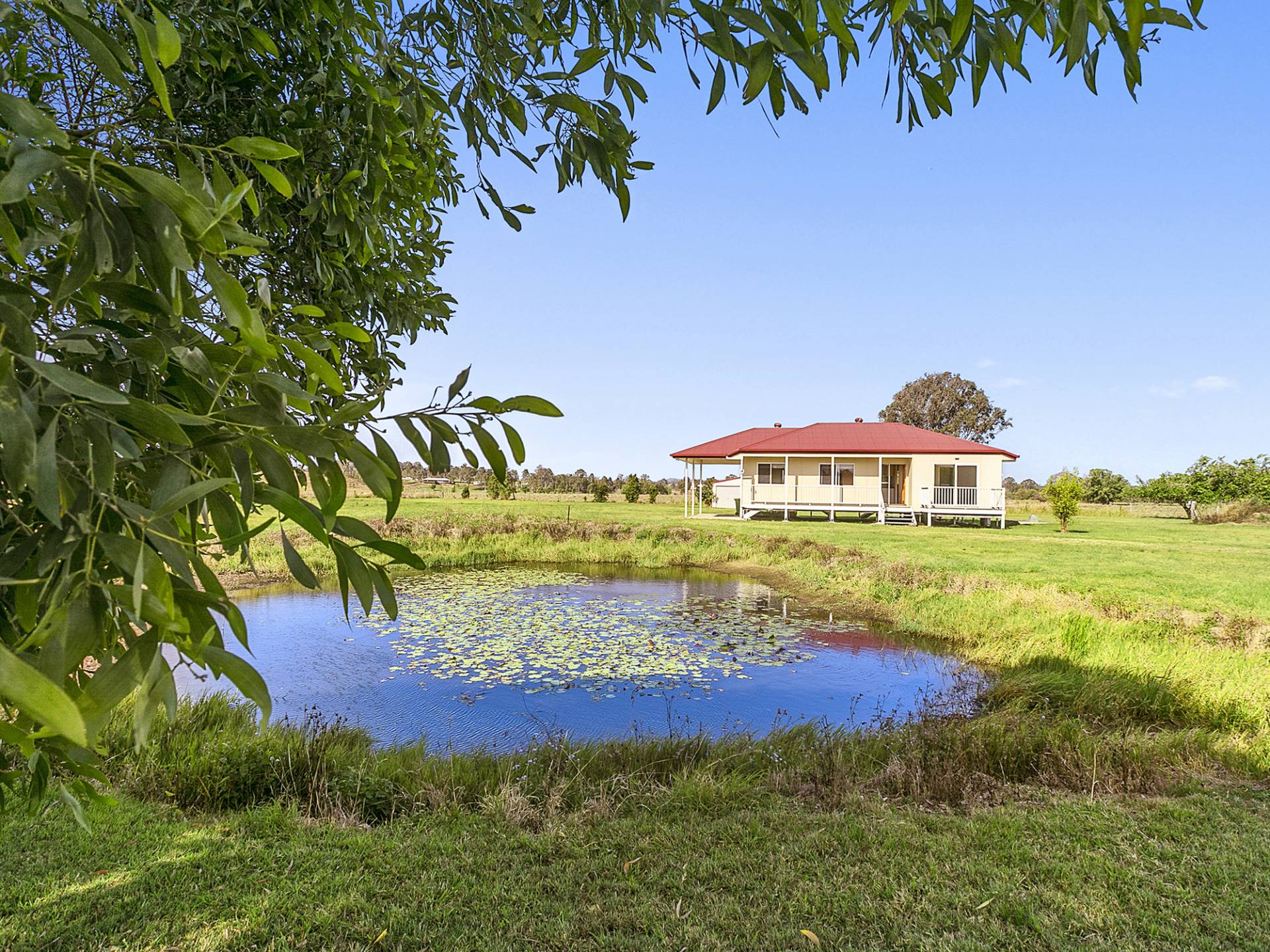 Internally, the house has an open plan living room with polished timber floors and access from both front and back. The kitchen overlooks the living area, separated by the breakfast bar. It is a well-appointed kitchen with a freestanding gas stove, a dishwasher and pantry cupboard. The loungeroom overlooks the dam while the kitchen overlooks the rear yard.