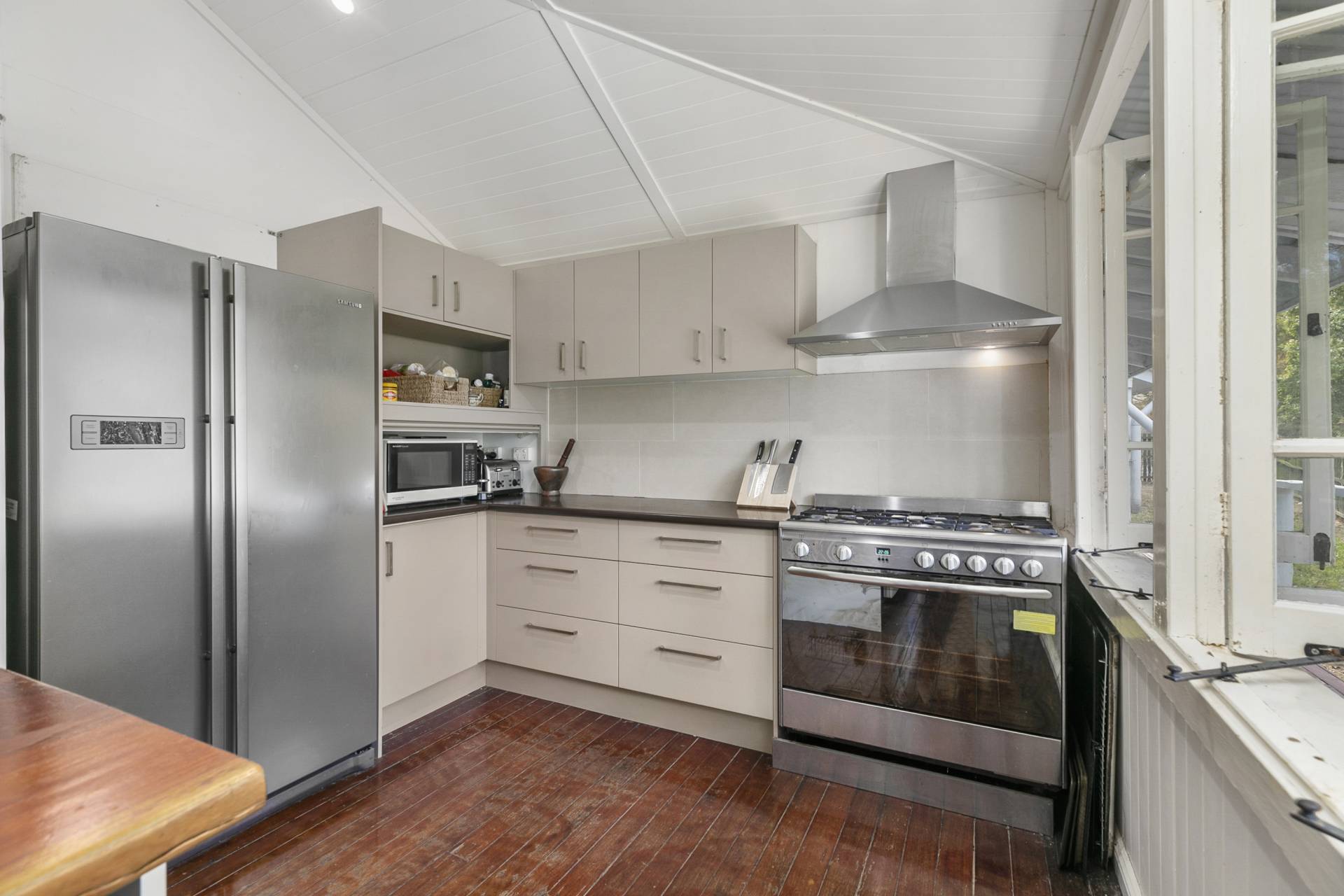 • The kitchen features a 5-burner gas stove and a long island bench,