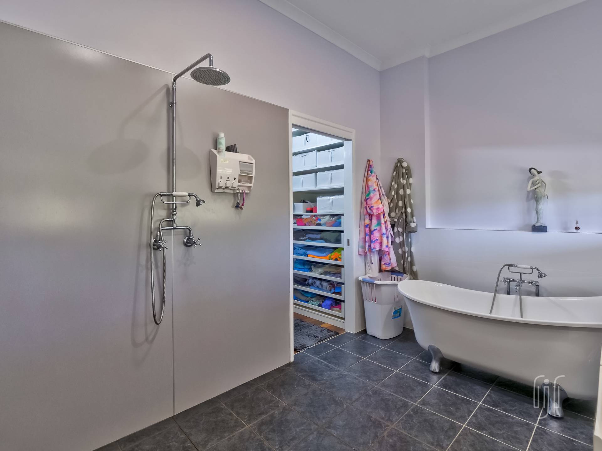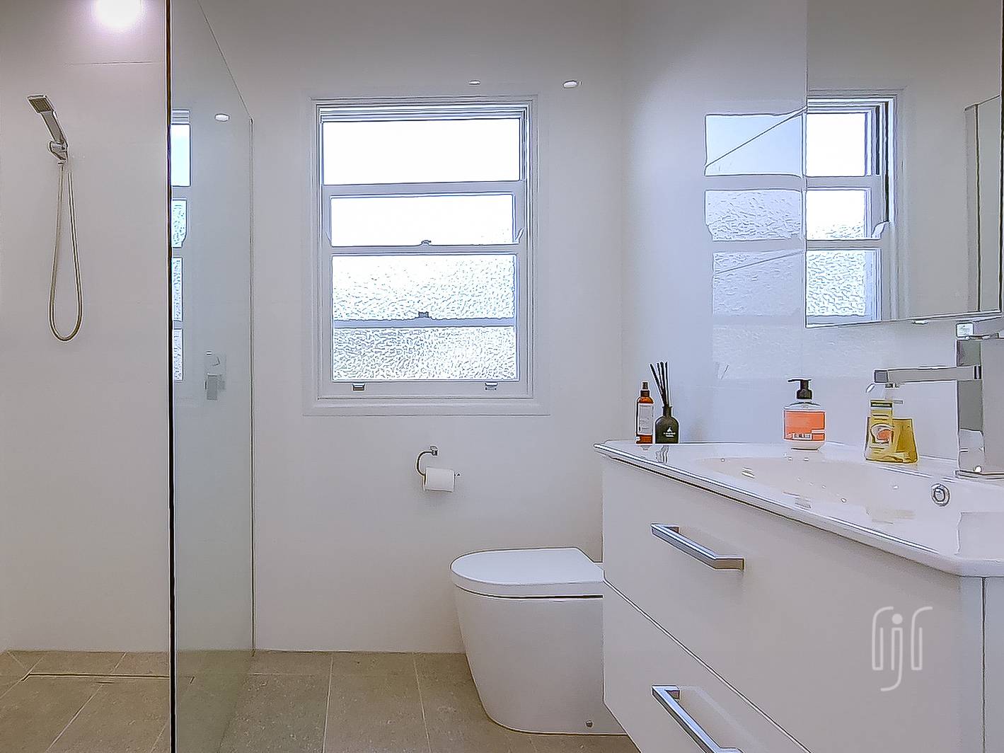 There are three bedrooms in the main house and one superb bathroom that acts as an en-suite (check out the shower). Separated only by the veranda, a self-contained studio apartment is the 4th bedroom, great for guests or as a home office/craft room.