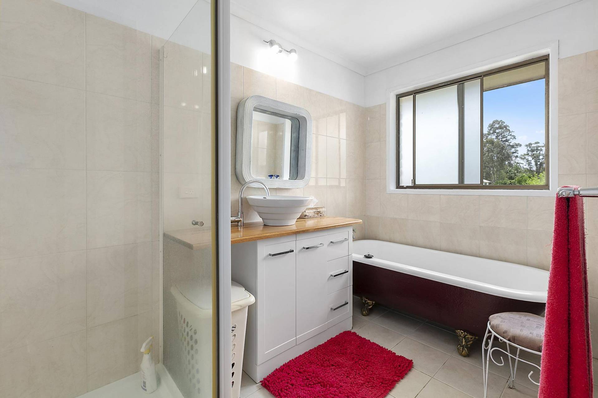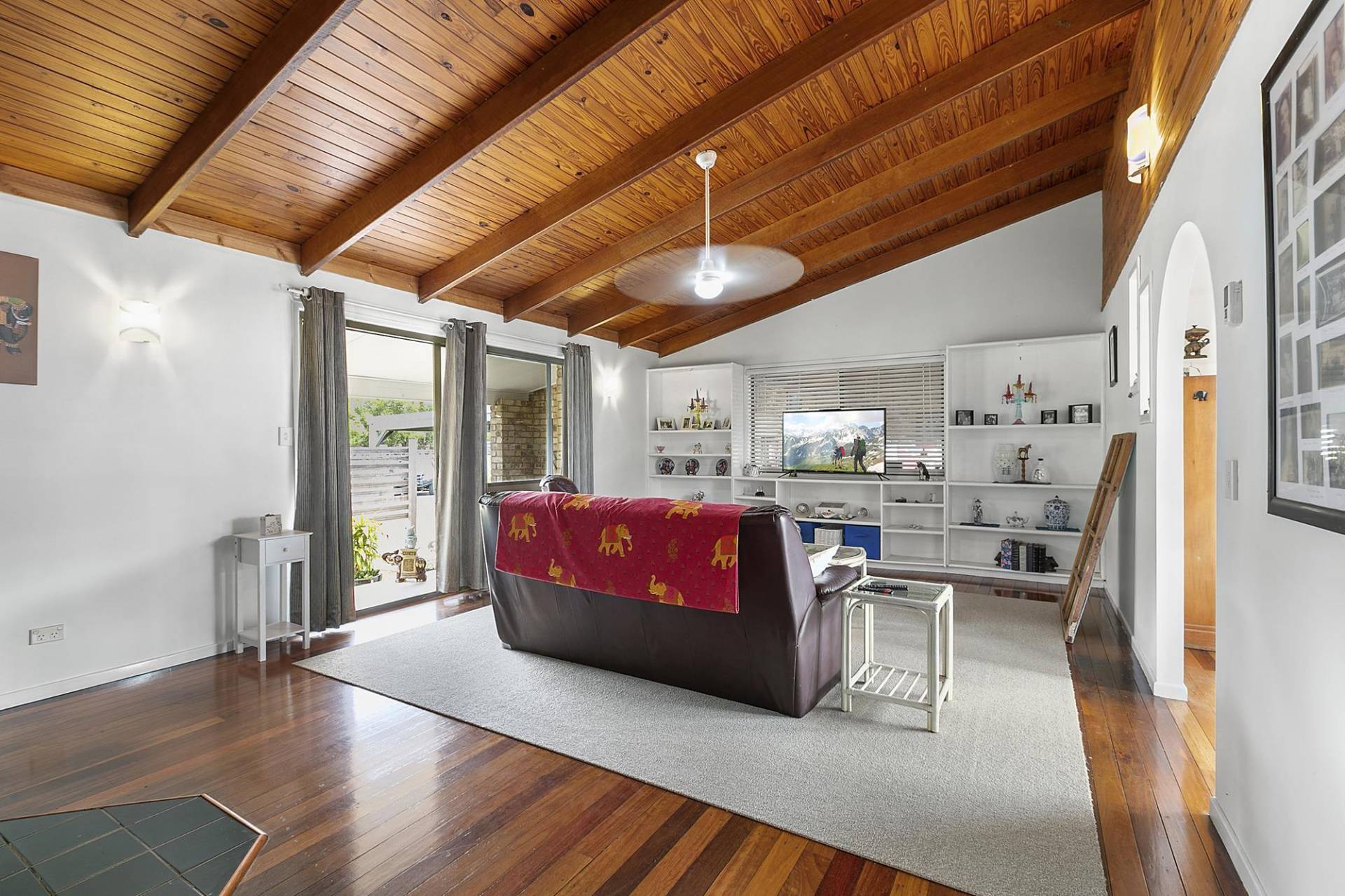 The former “double garage under the roofline” has been converted to a rumpus room, but could be converted back. There are 3 bedrooms, the main with an en-suite, all with built-in robes. A freestanding bath is the feature in a bathroom that has a separate shower and separate toilet.