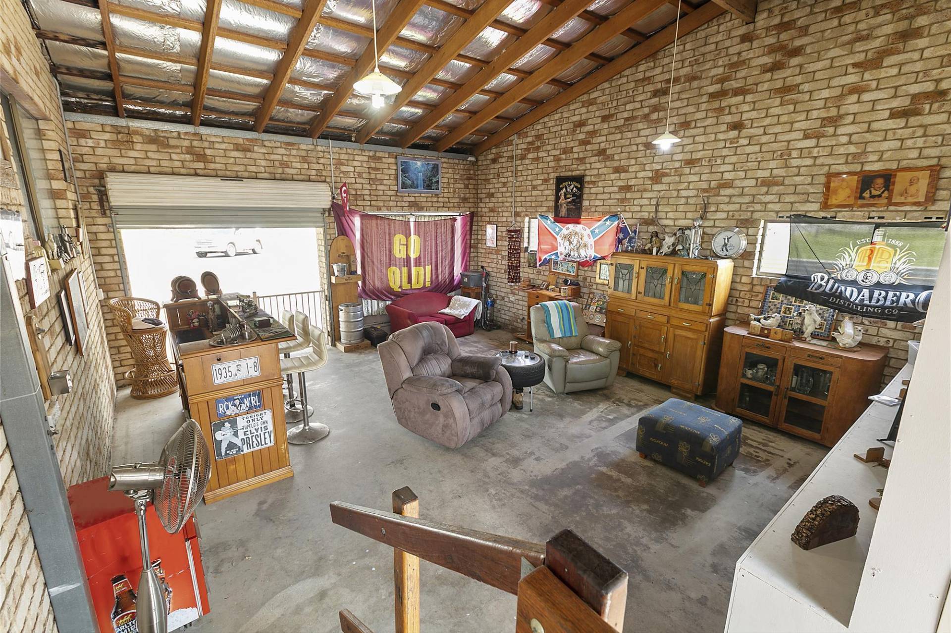 The 5-bay garage at the rear is divided between workshop and storage. The single vehicle access to the garage is complemented by front and rear carports that accommodate another 3 vehicles. The rear yard has vehicle access on both sides of the house.