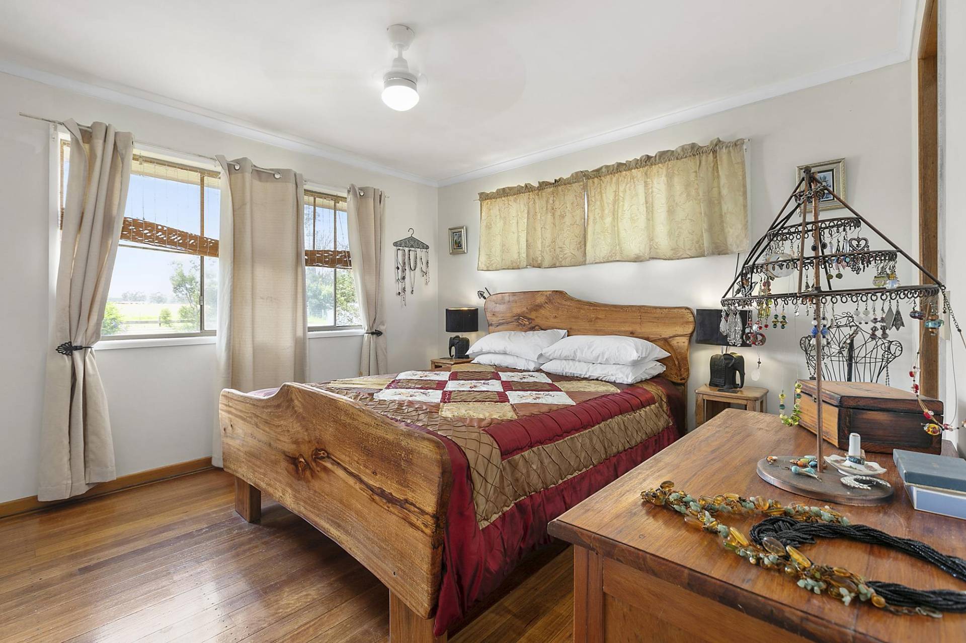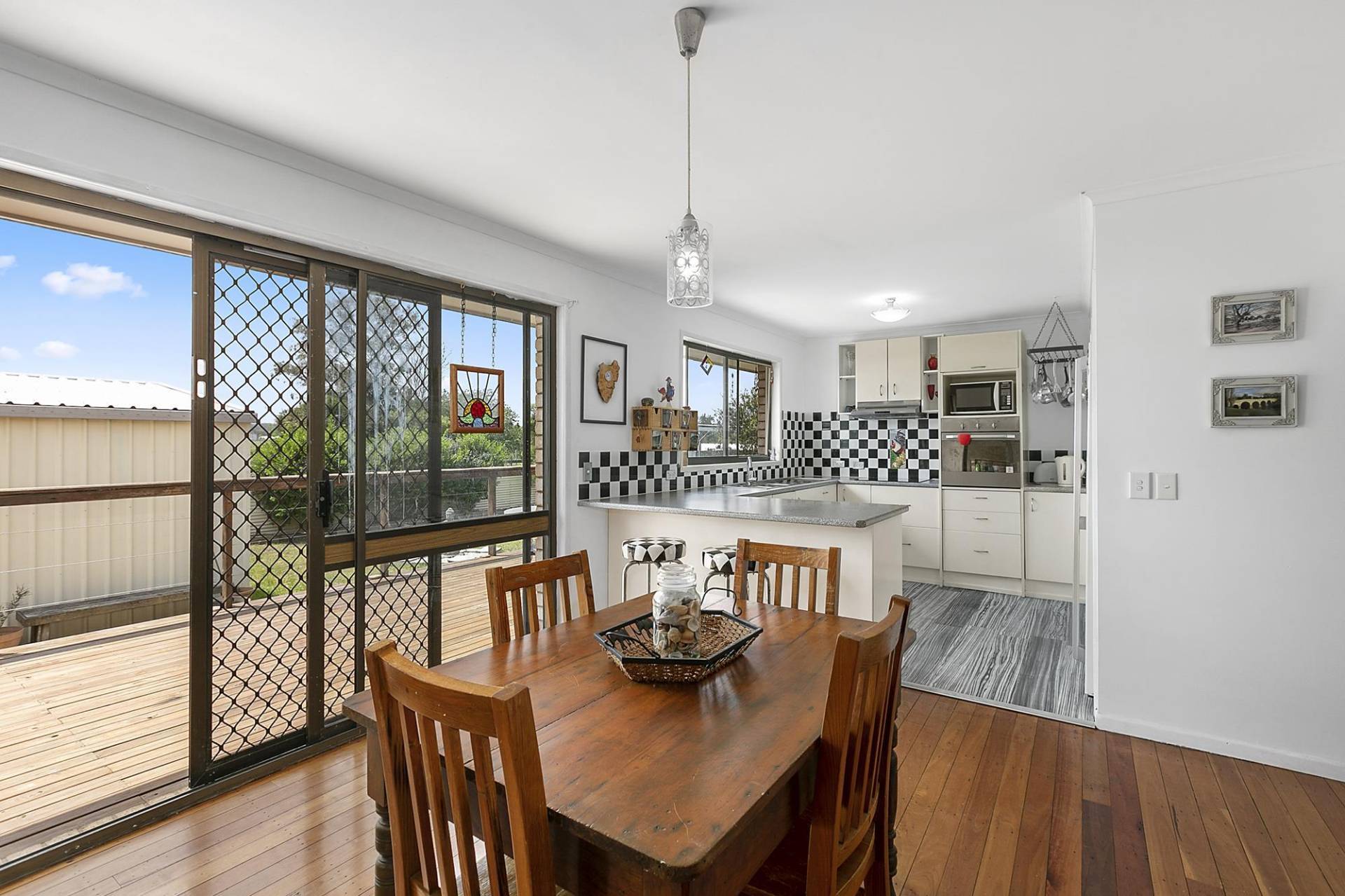 The low-set, brick veneer home has a veranda at the front that gives direct access to the loungeroom. This room has a vaulted timber-lined ceiling with exposed beams, a built-in shelf unit and slow combustion heating. The kitchen/dining room is semi-separated from the lounge and has direct access to the rear deck and the rumpus room. The kitchen has electric cooking, a walk-in pantry and a breakfast bar while the whole house has polished timber floors.