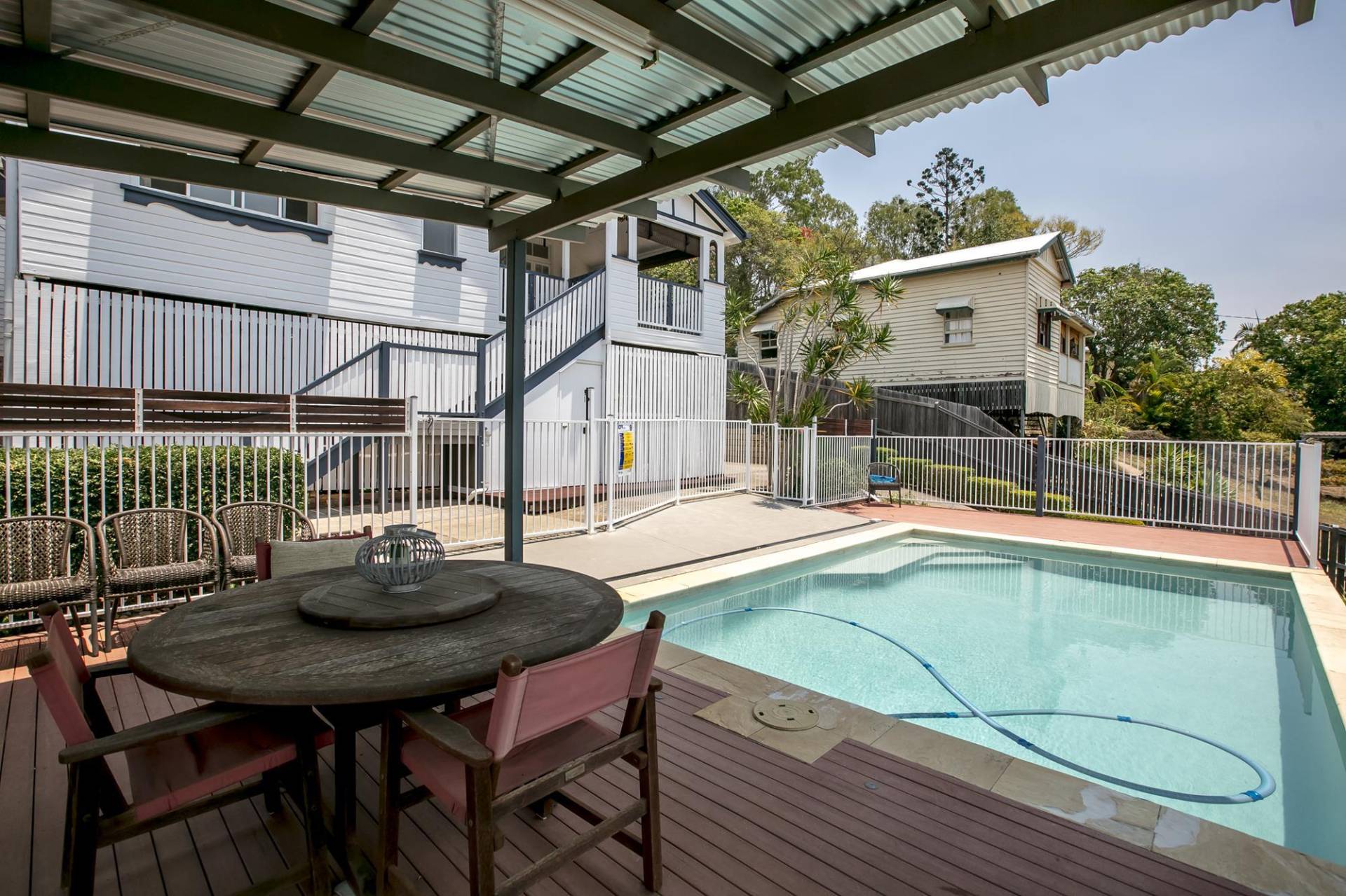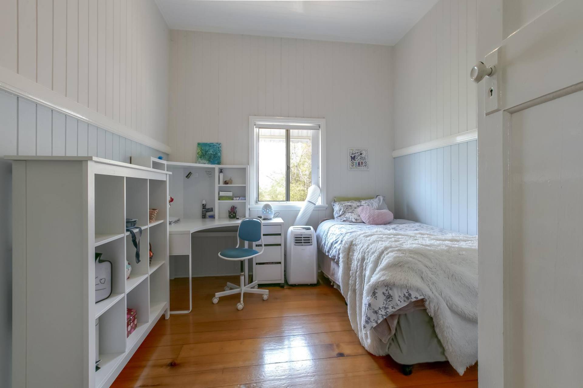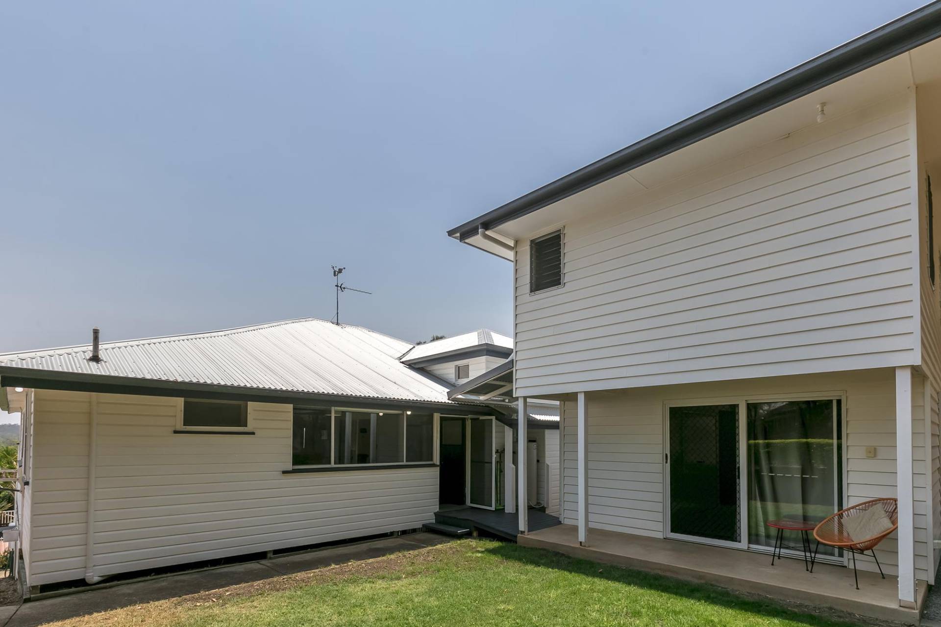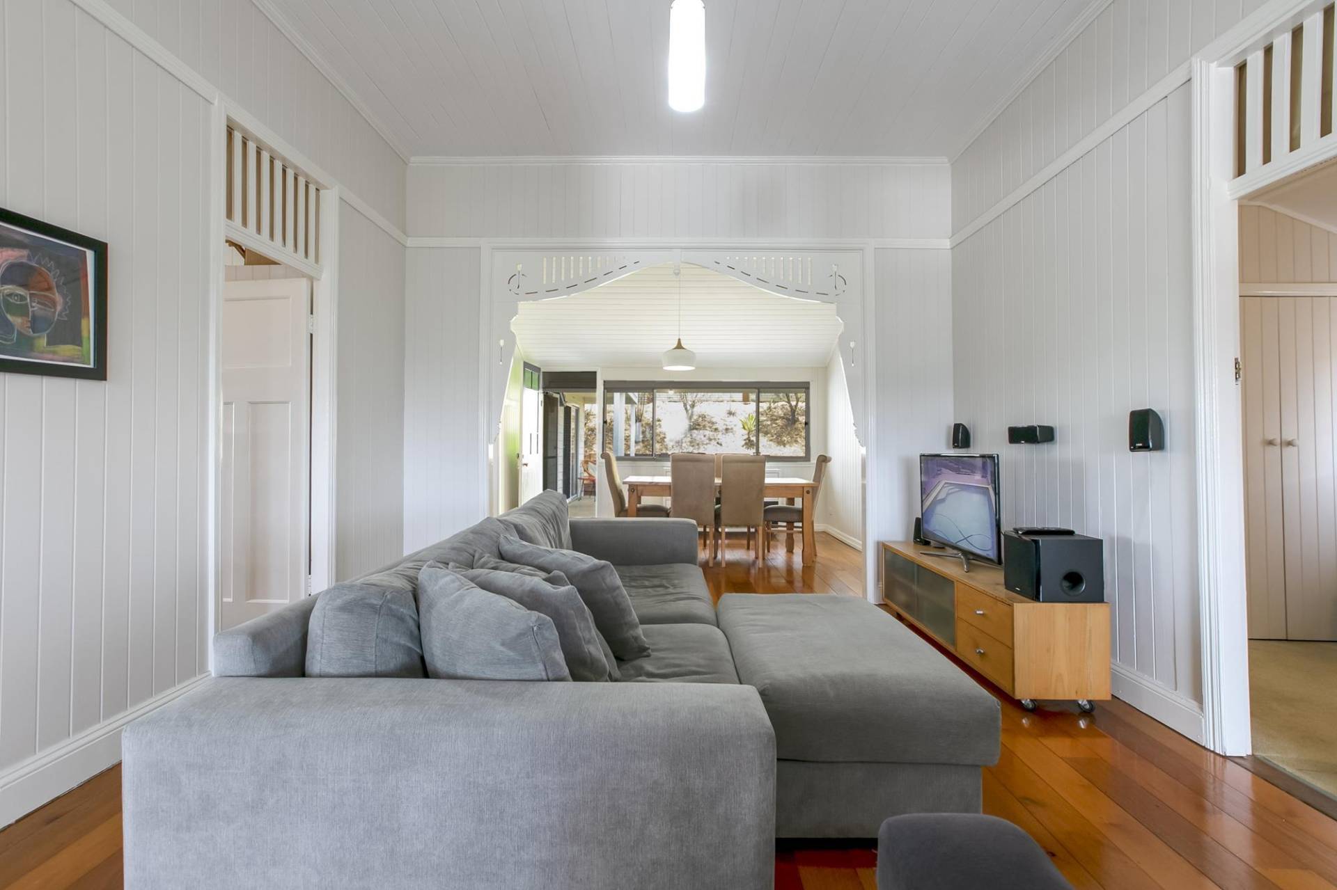 The front stairs at the house lead to a wide front veranda with an awesome northerly view over the pool, the village and beyond. Inside, it’s an immaculately presented Queenslander with all the usual features: high ceilings, timber walls & ceilings, period trims and polished timber floors. There are also modern touches like air conditioning!
