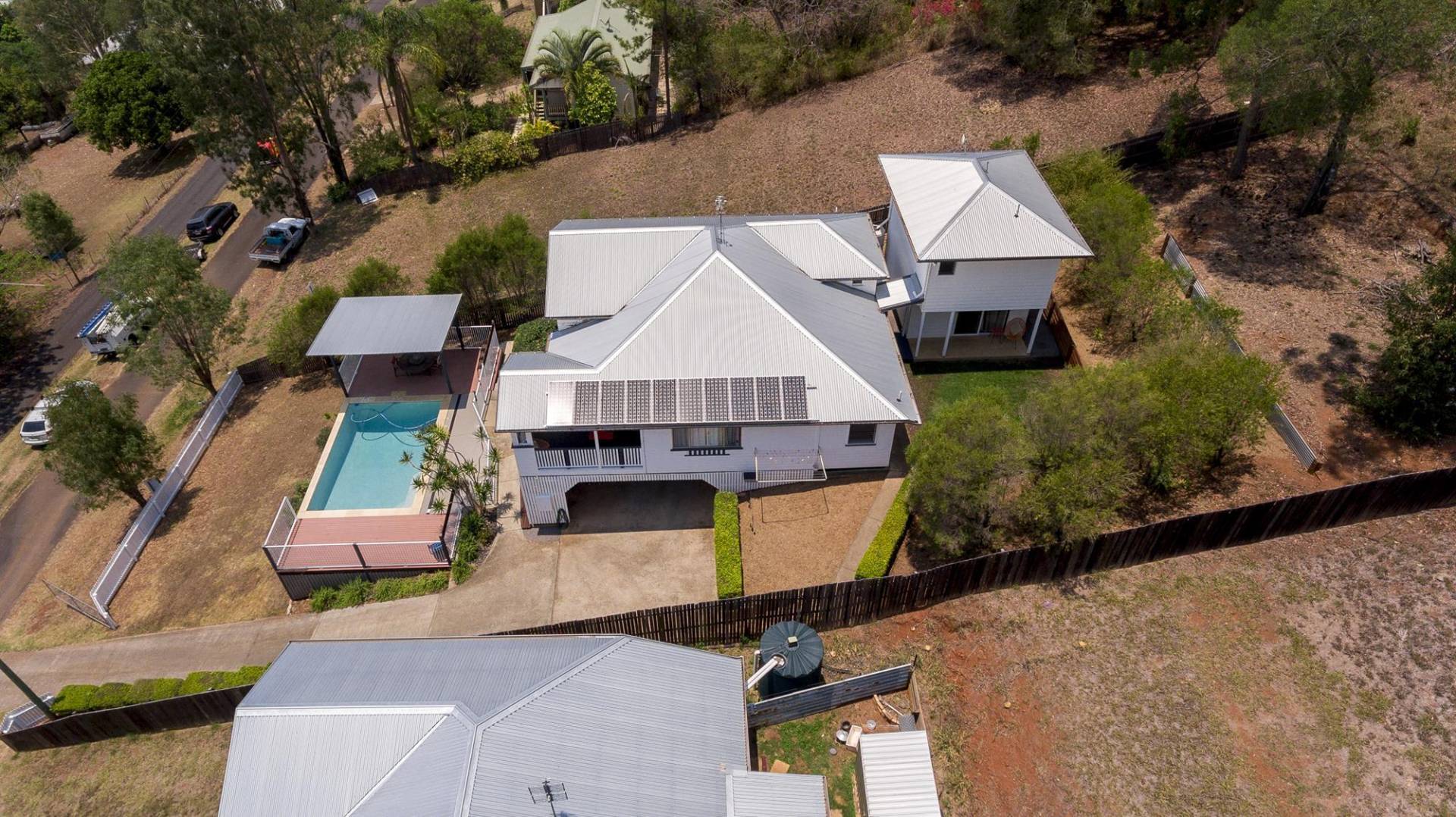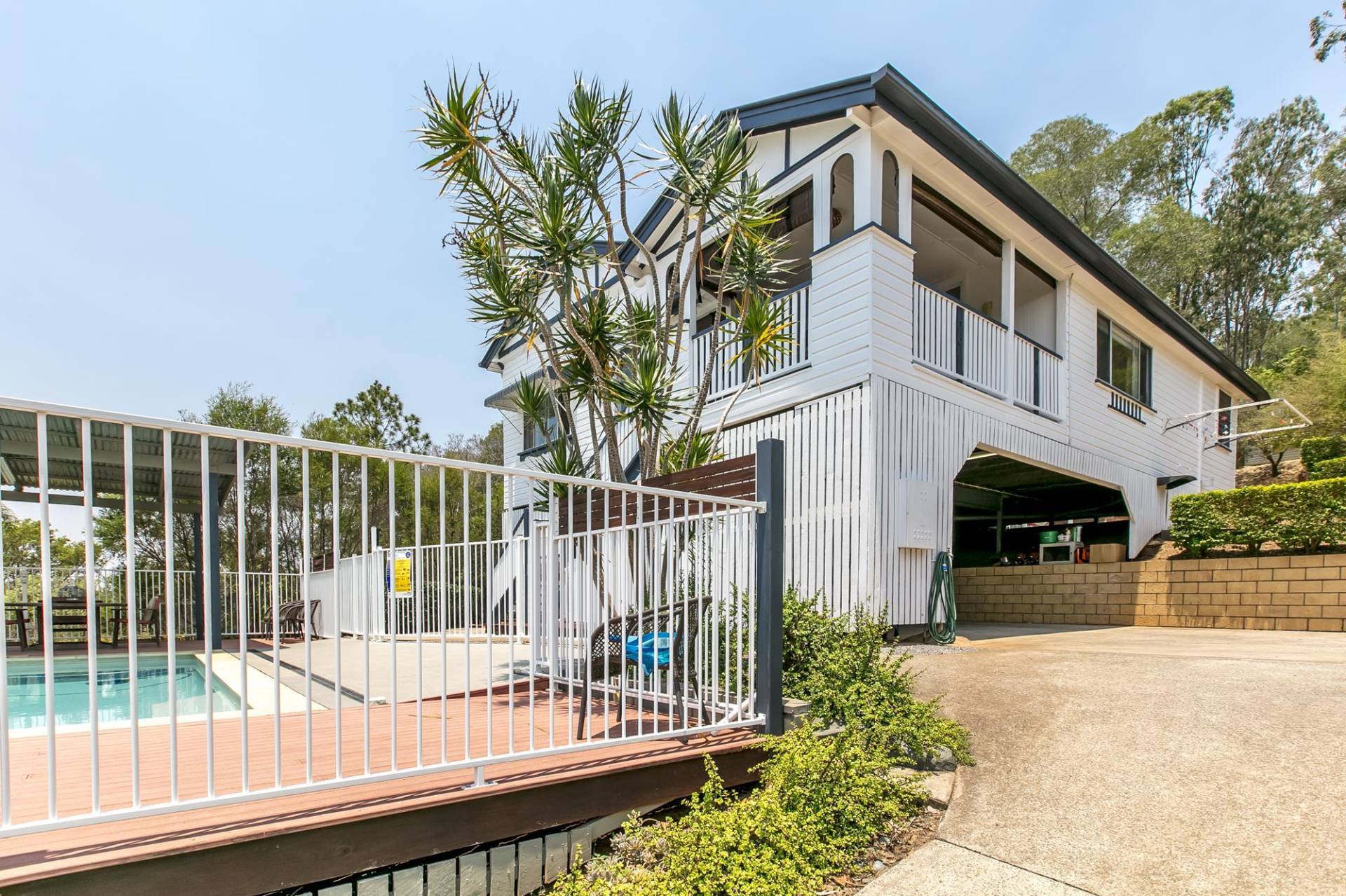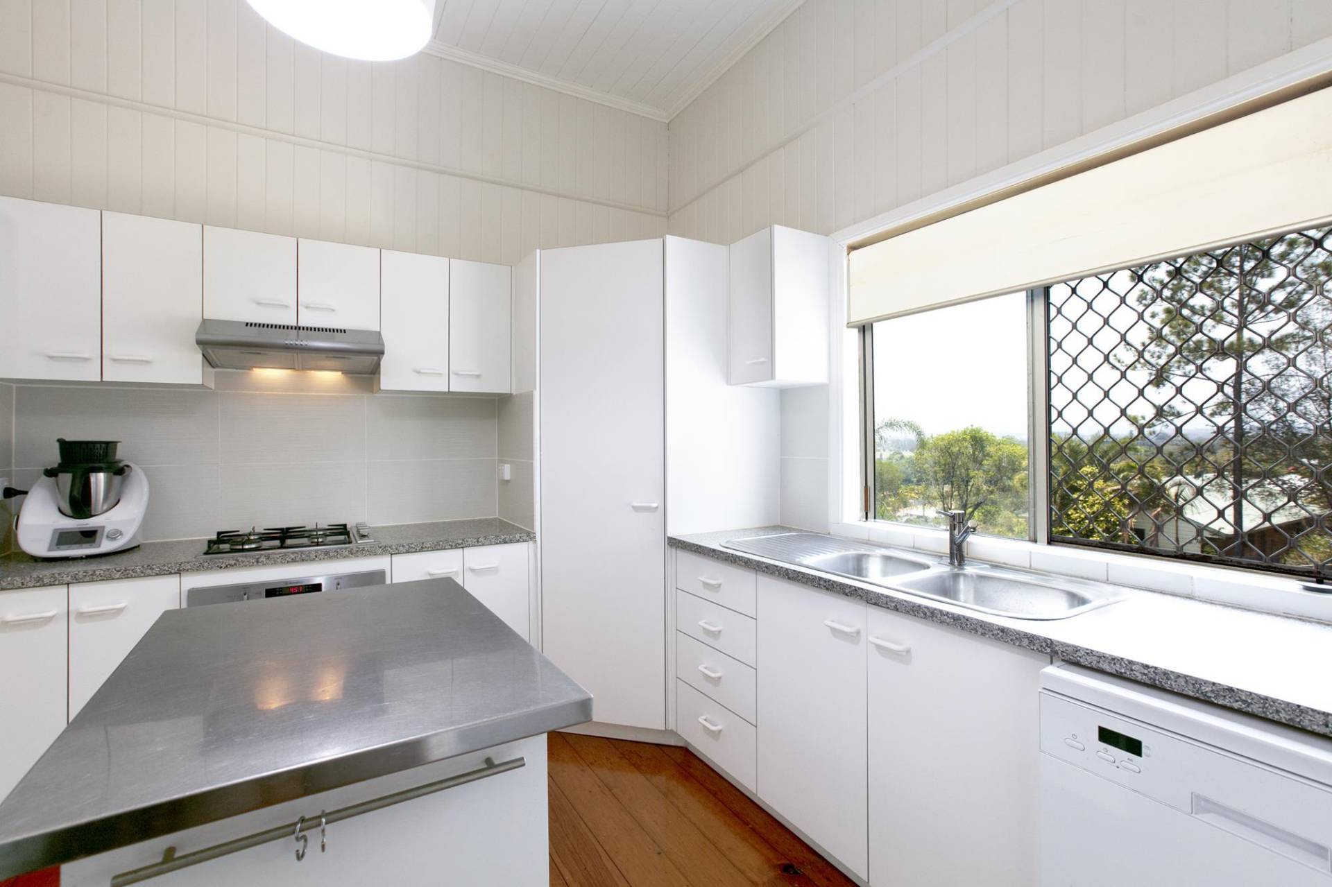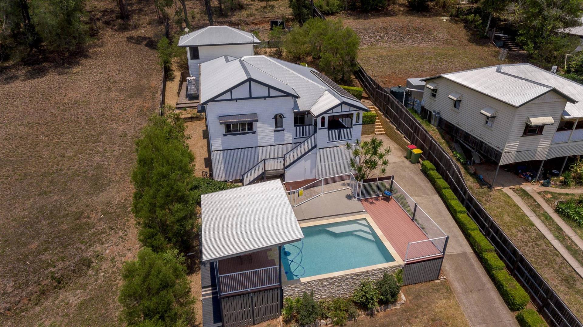 The front stairs at the house lead to a wide front veranda with an awesome northerly view over the pool, the village and beyond. Inside, it’s an immaculately presented Queenslander with all the usual features: high ceilings, timber walls & ceilings, period trims and polished timber floors. There are also modern touches like air conditioning!