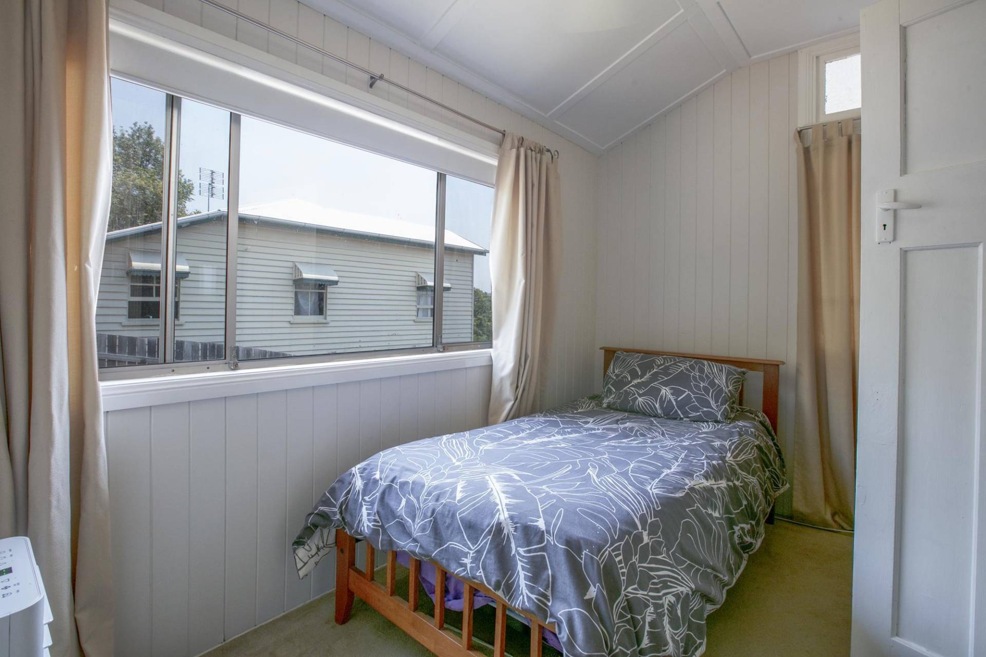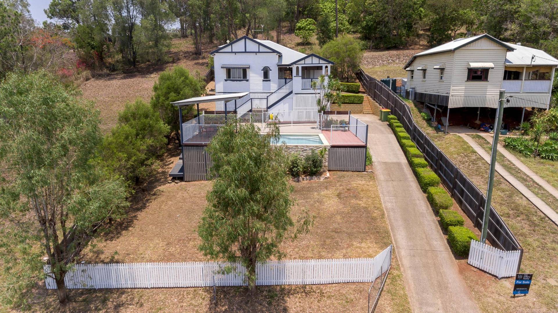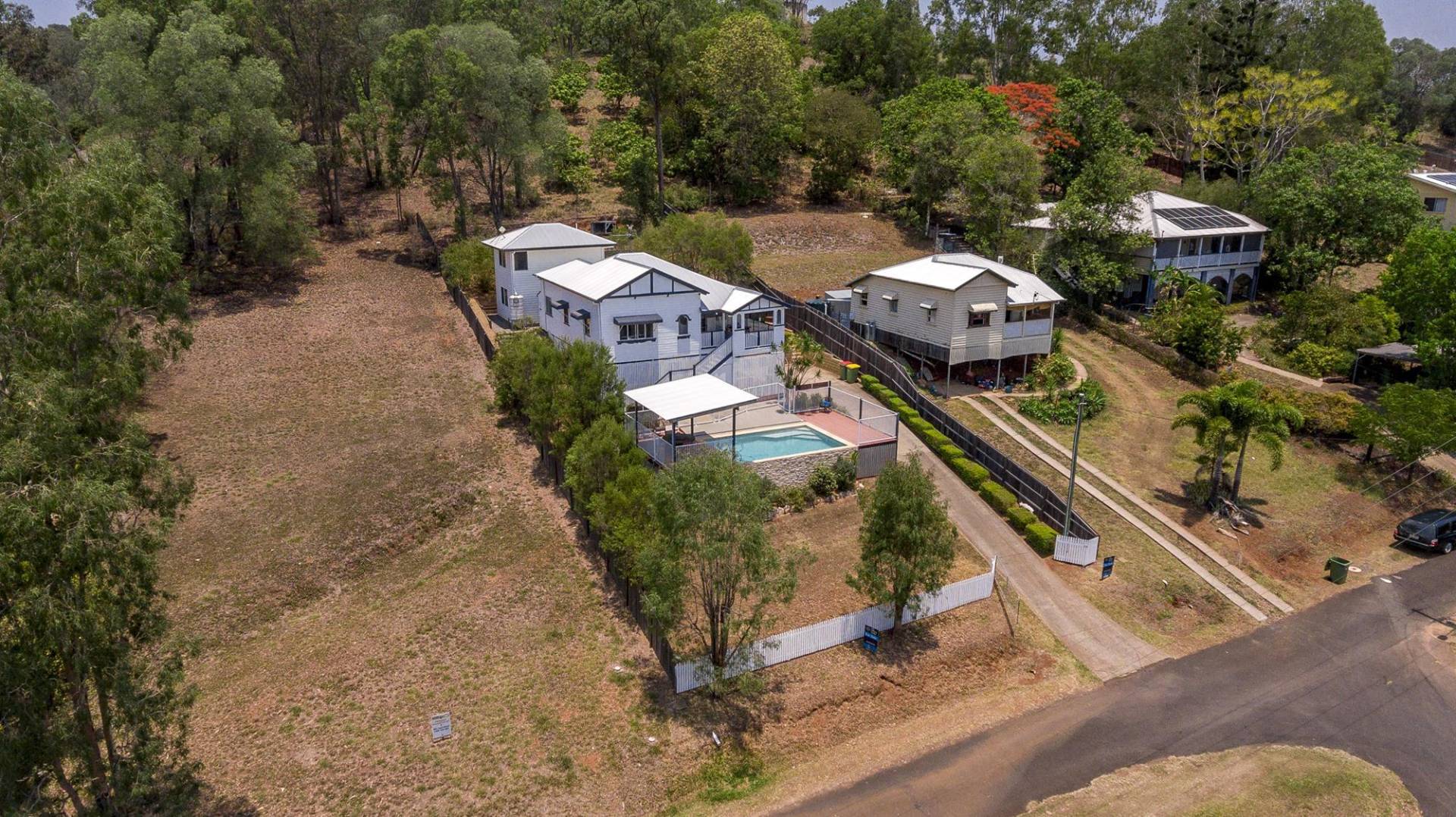 Behind the white picket front fence at 26 York St Imbil is a matching white Queenslander, with blue trim. It looks stately; It has street appeal!
