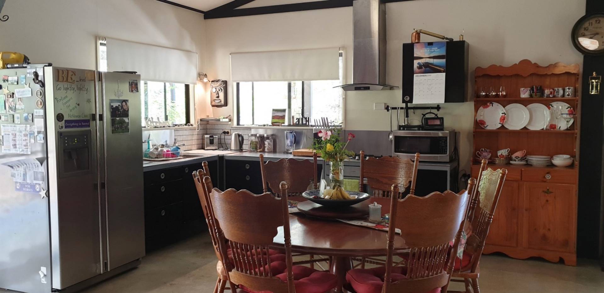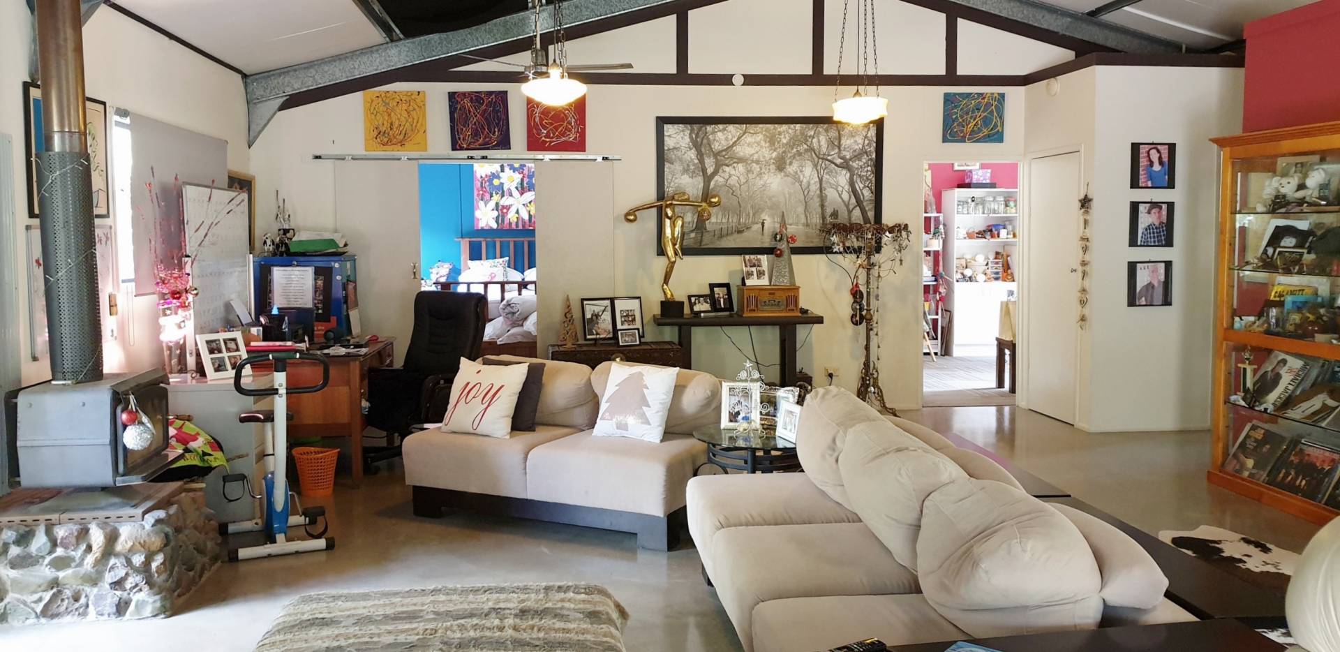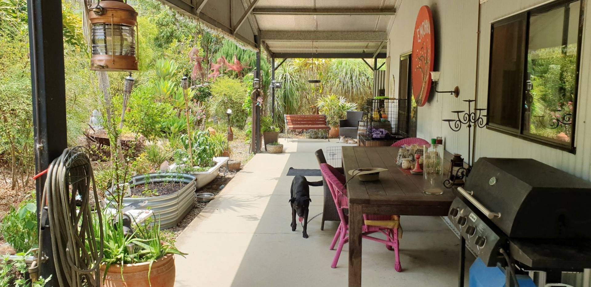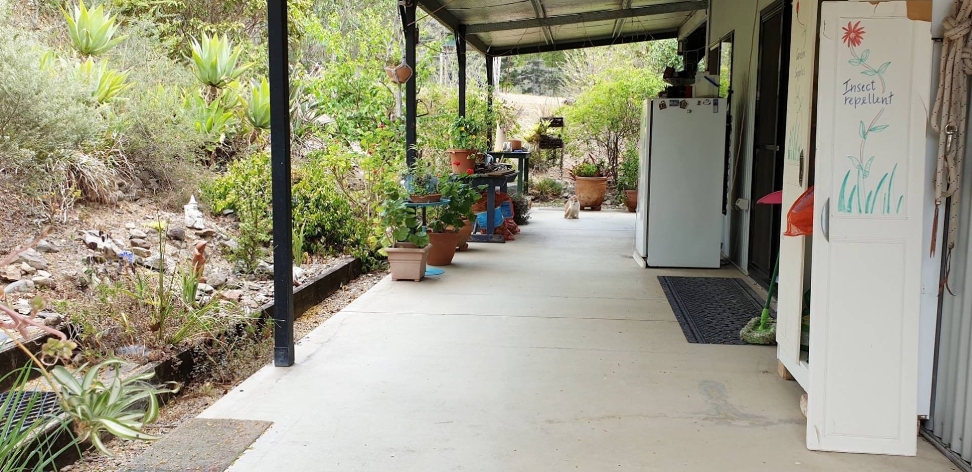 This shed home is set in established gardens and the weekly rent includes the tenants electricity and lawn mowing.