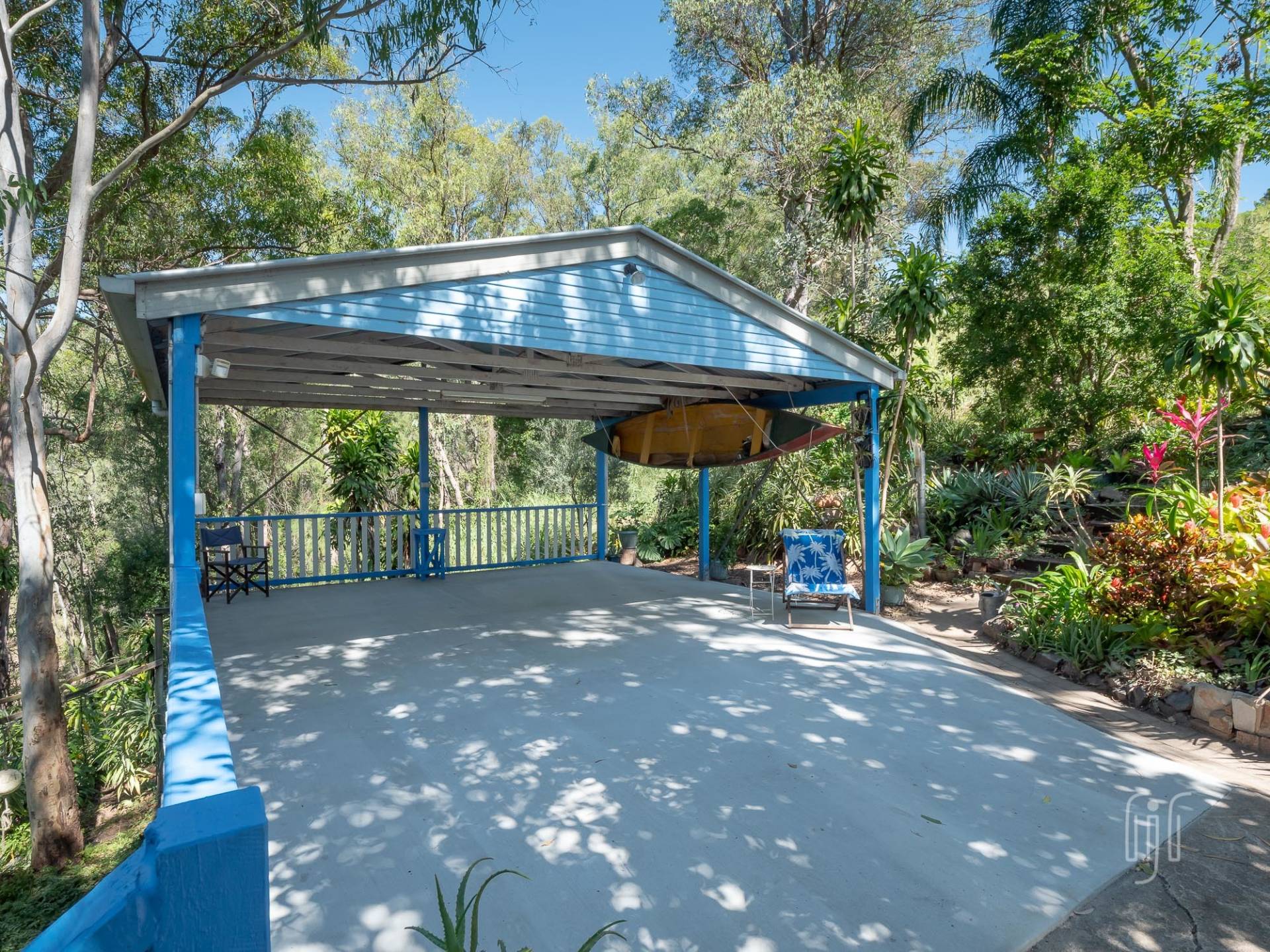 There is a double carport, serviced by a concrete driveway off Elizabeth St, and retainer walls to help tame the slope.