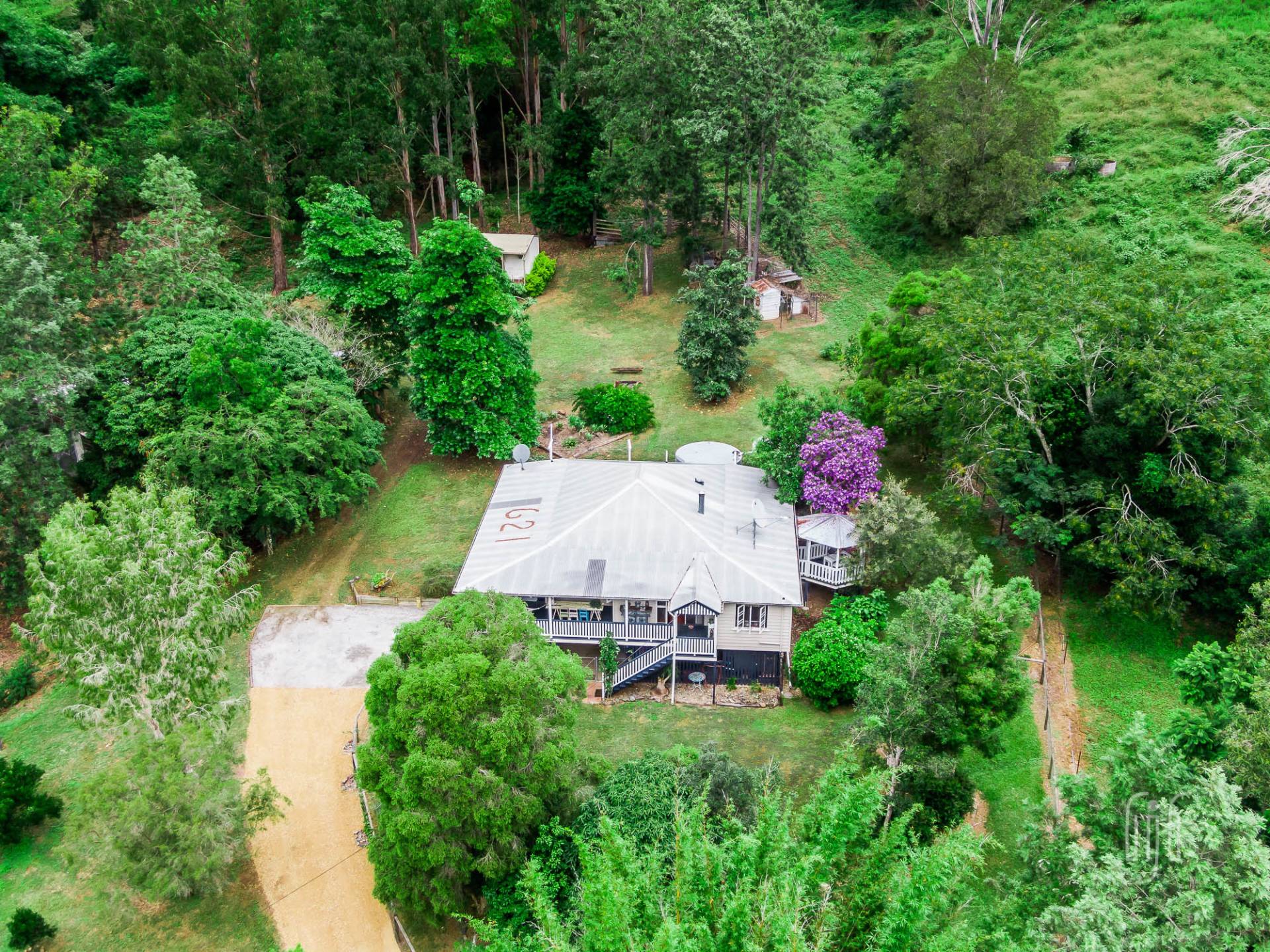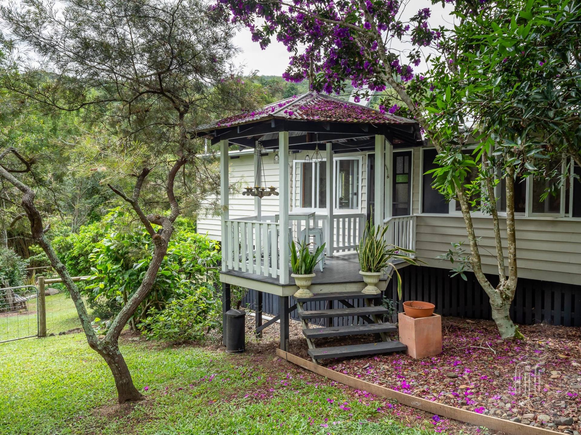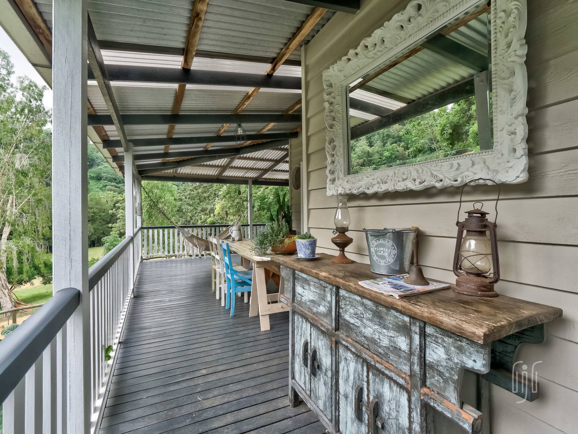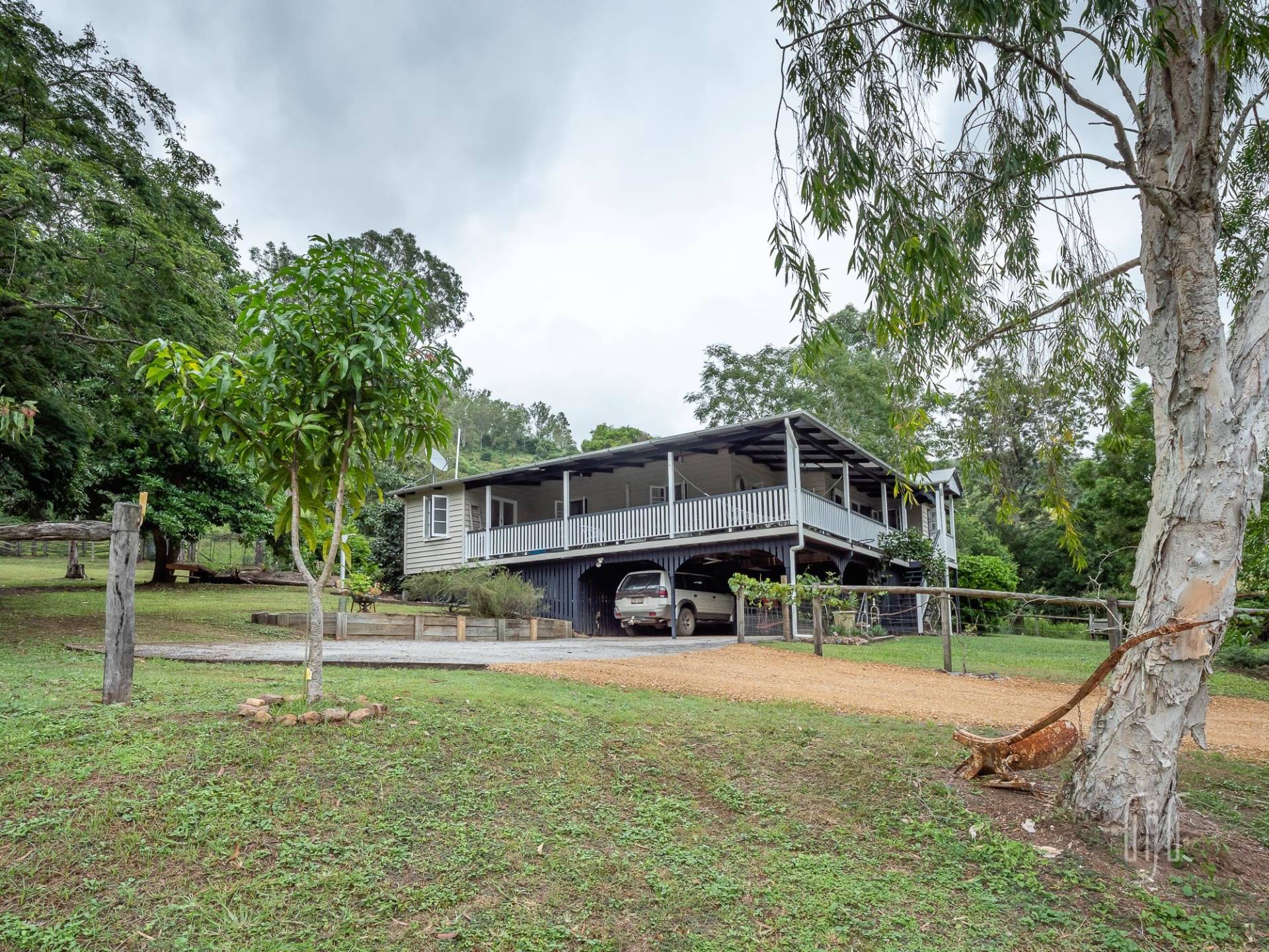 The weatherboard-clad home At 162 Walli Creek Rd is a Queensland classic, painted in classic colours. The home is set in a large house yard with well-established gardens and mature trees. The property is towards the end of the no-through-road, in the narrow Walli Creek valley.