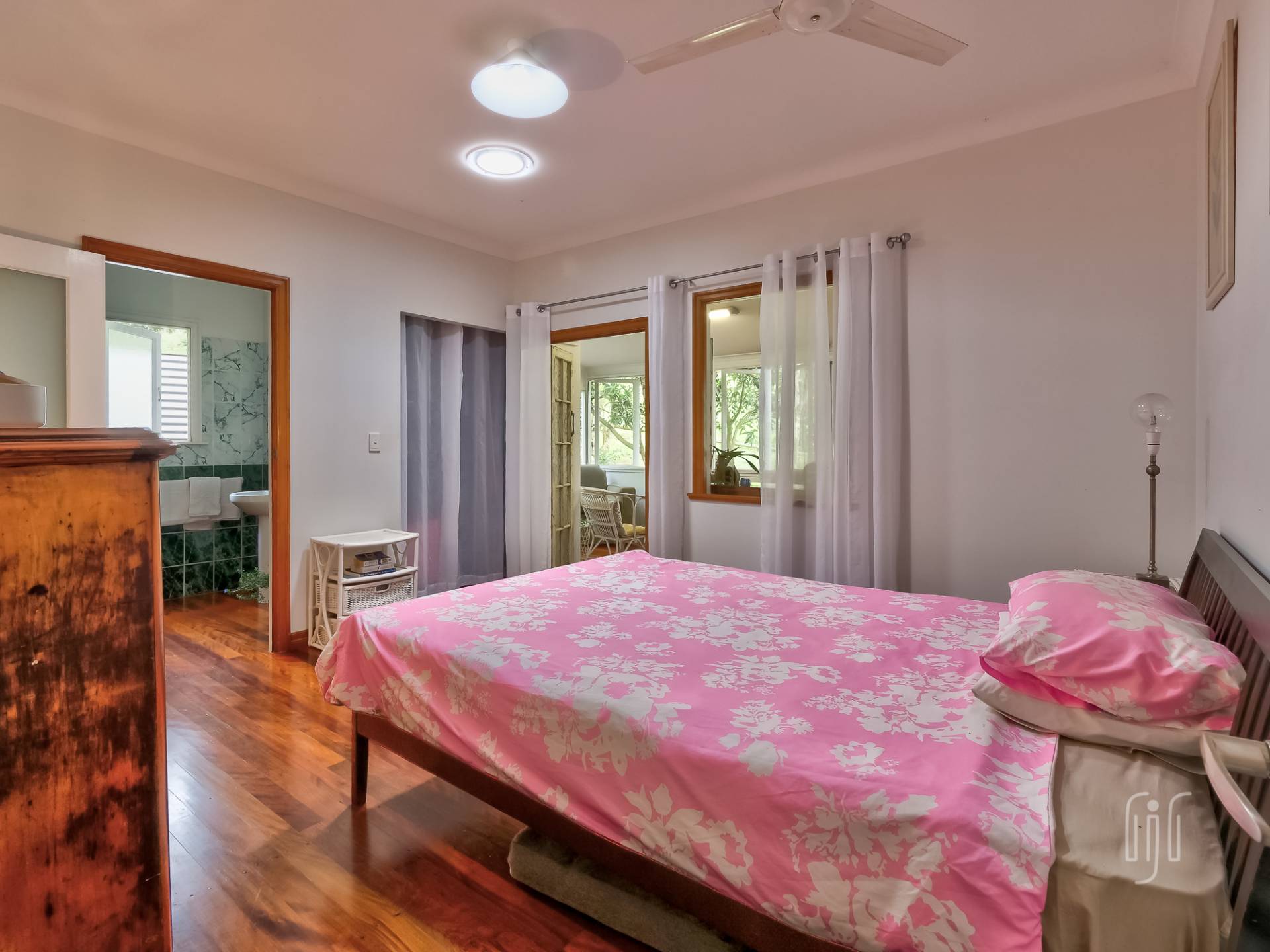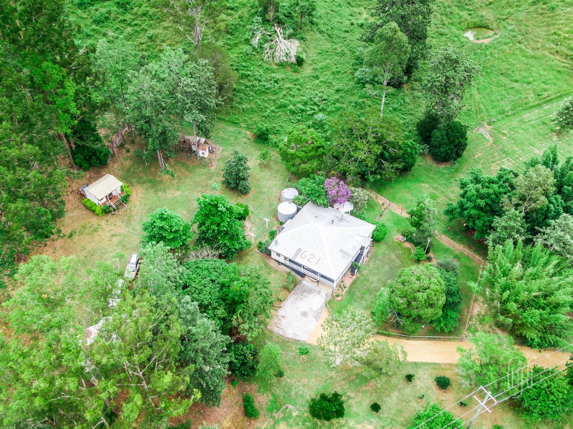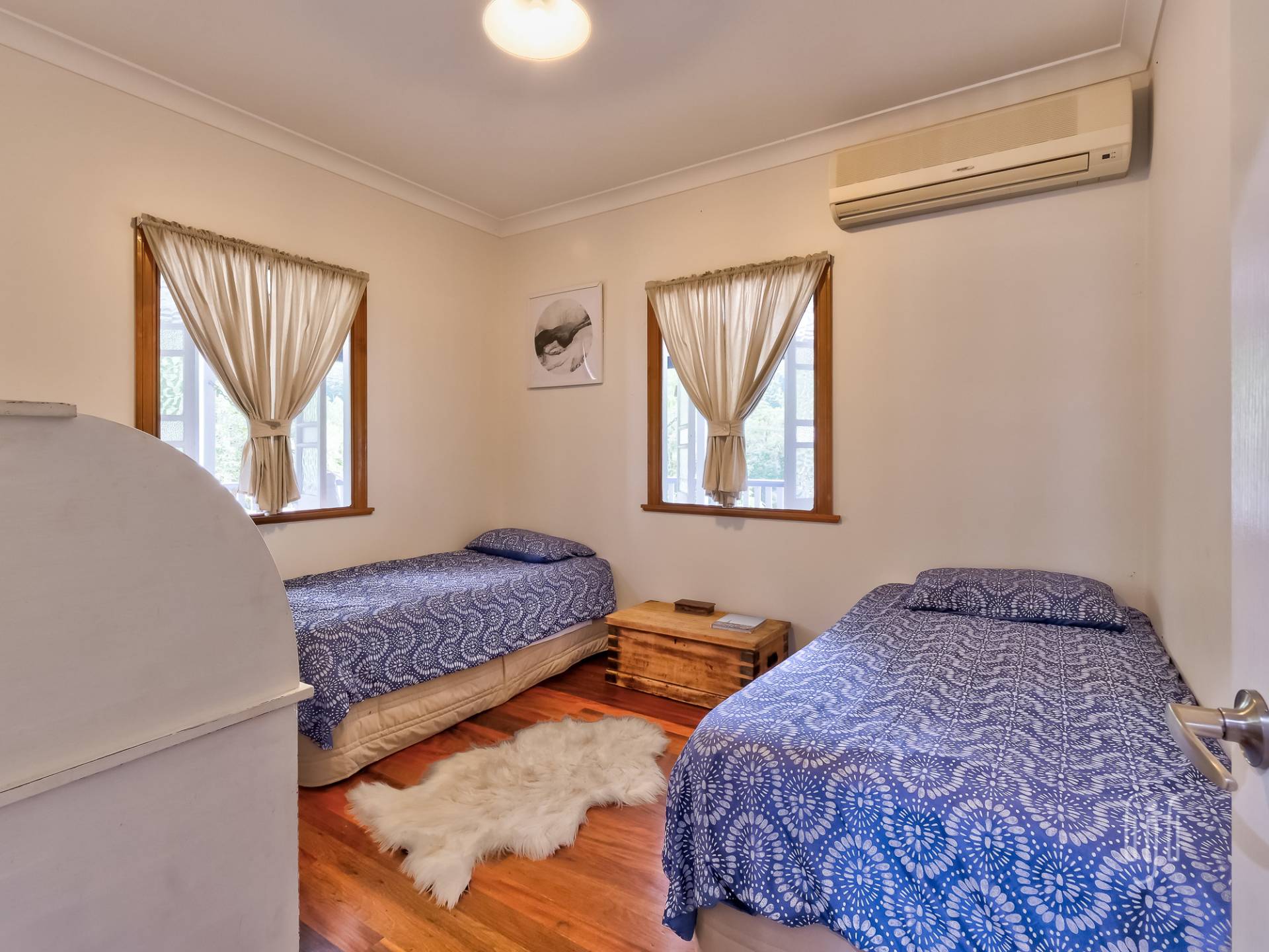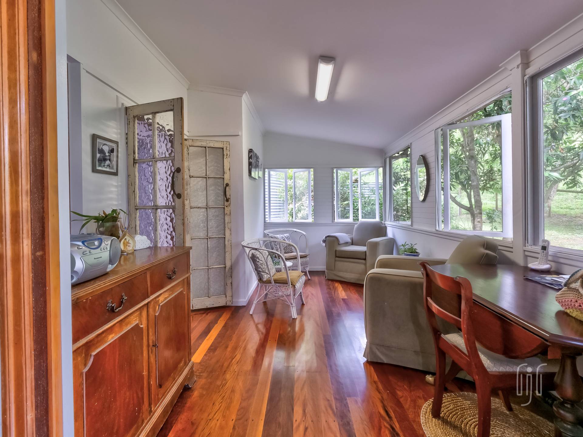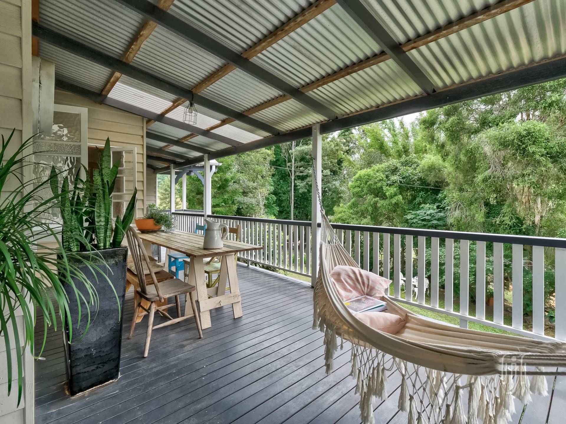 The weatherboard-clad home At 162 Walli Creek Rd is a Queensland classic, painted in classic colours. The home is set in a large house yard with well-established gardens and mature trees. The property is towards the end of the no-through-road, in the narrow Walli Creek valley.