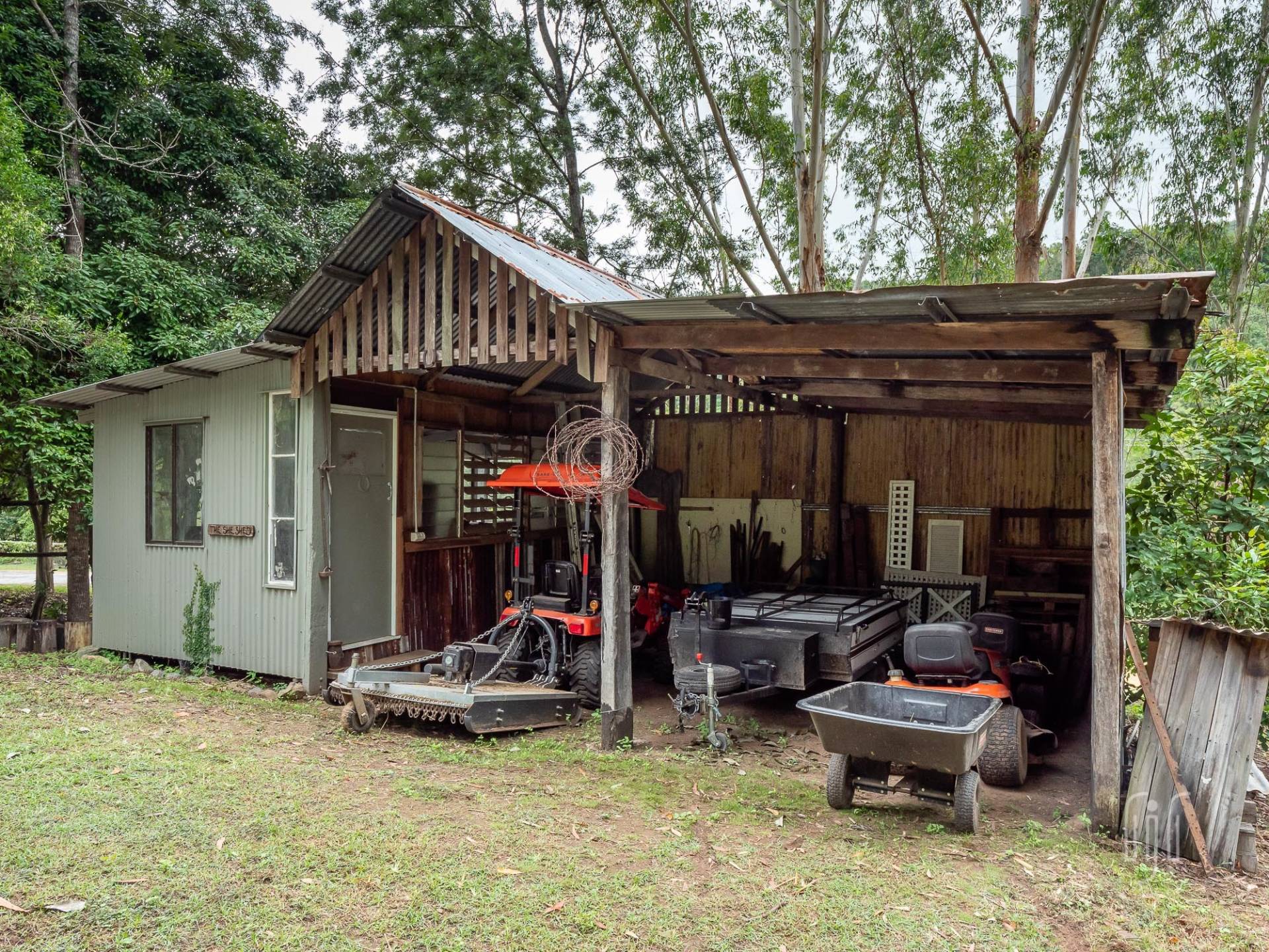The house yard includes a separate air-conditioned studio with it’s own covered deck, a shed to look after the workshop & farm equipment and under the house has parking for two vehicles.