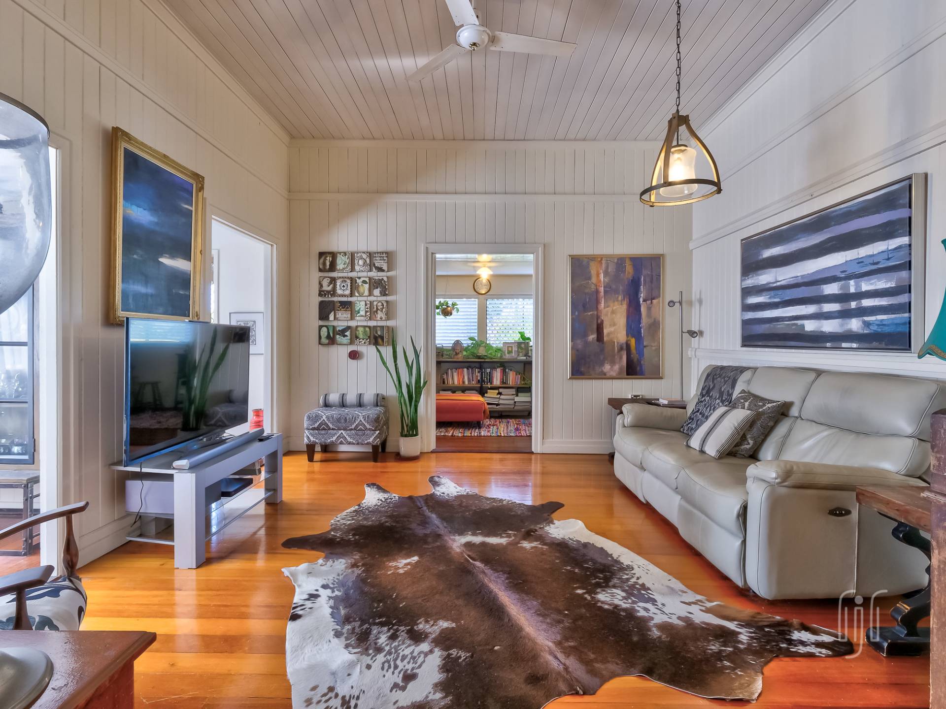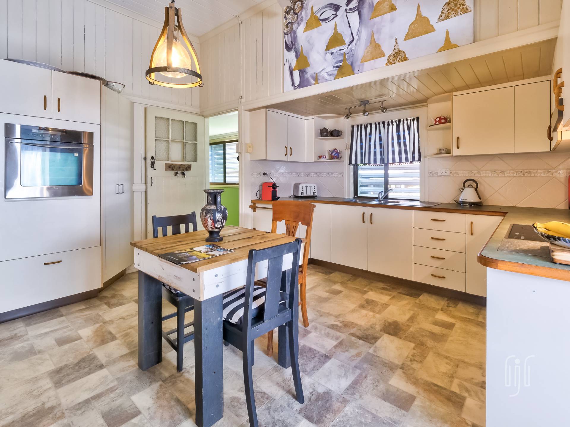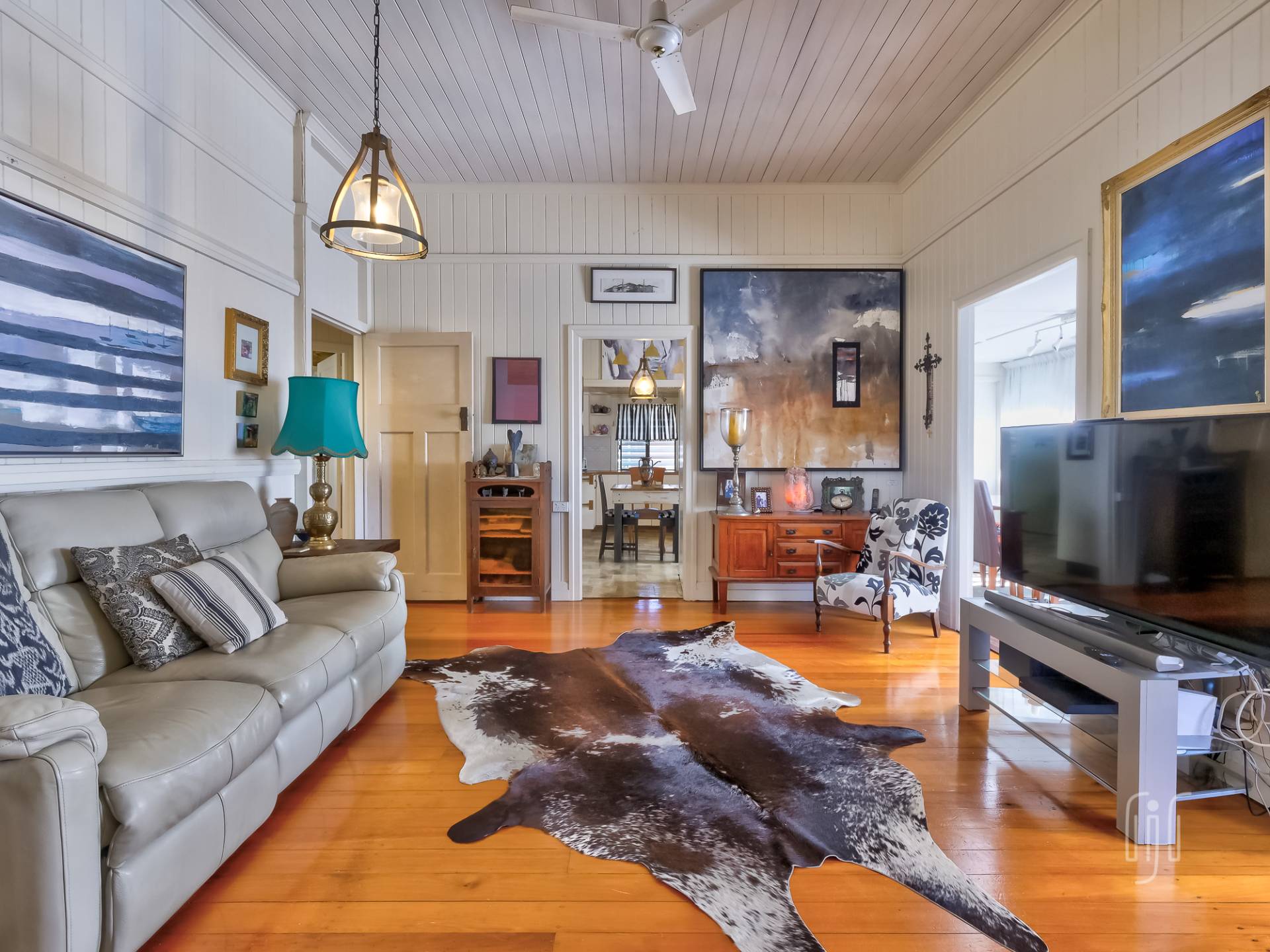 The brightly painted home at 51 Elizabeth St Kenilworth is partially hidden from the street by a picket fence and well established gardens. The front stairs of the double storey home deliver you to a comfortable, covered veranda on the top level.