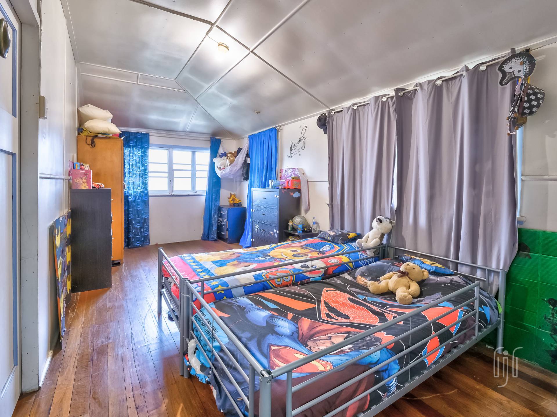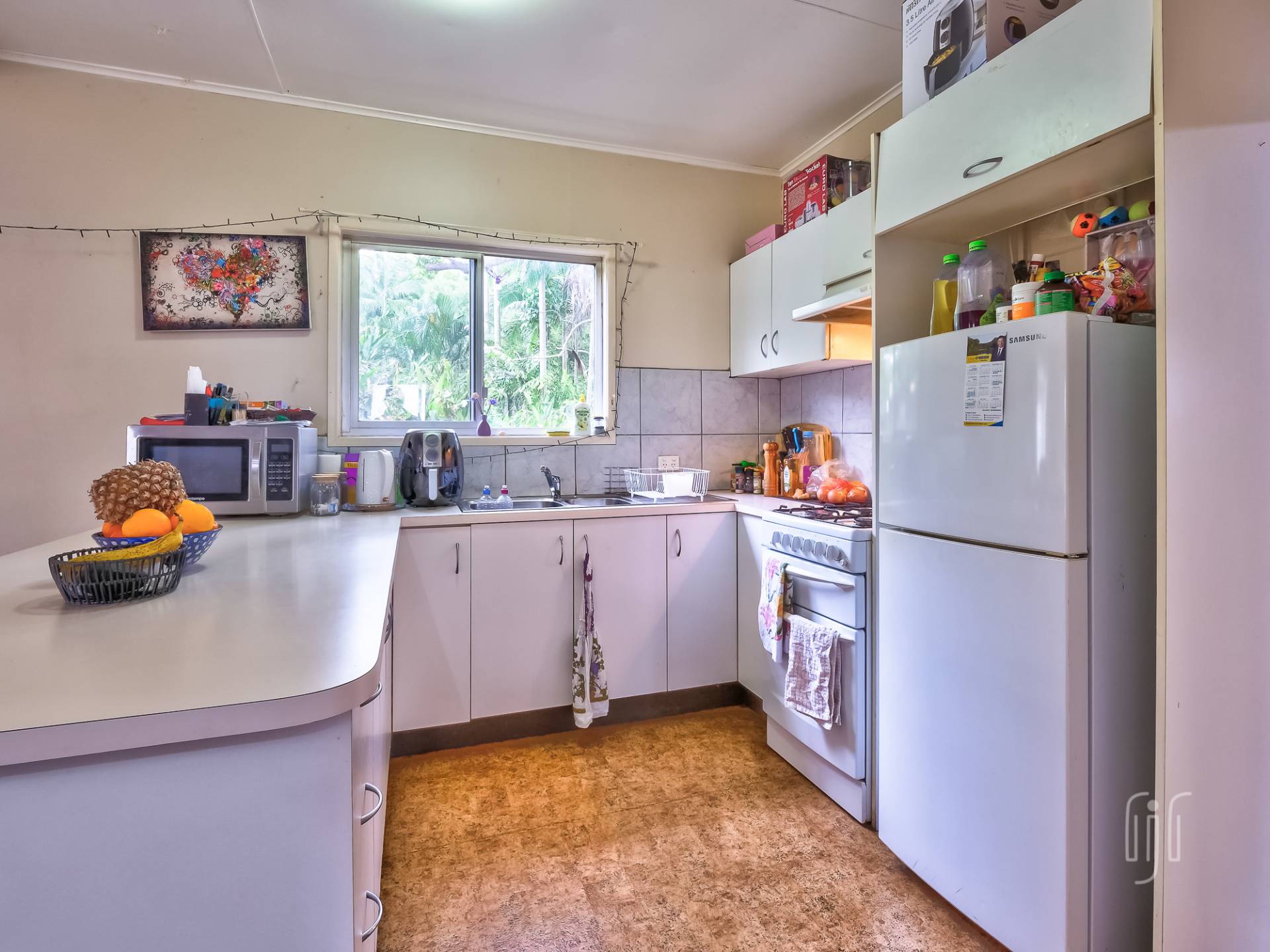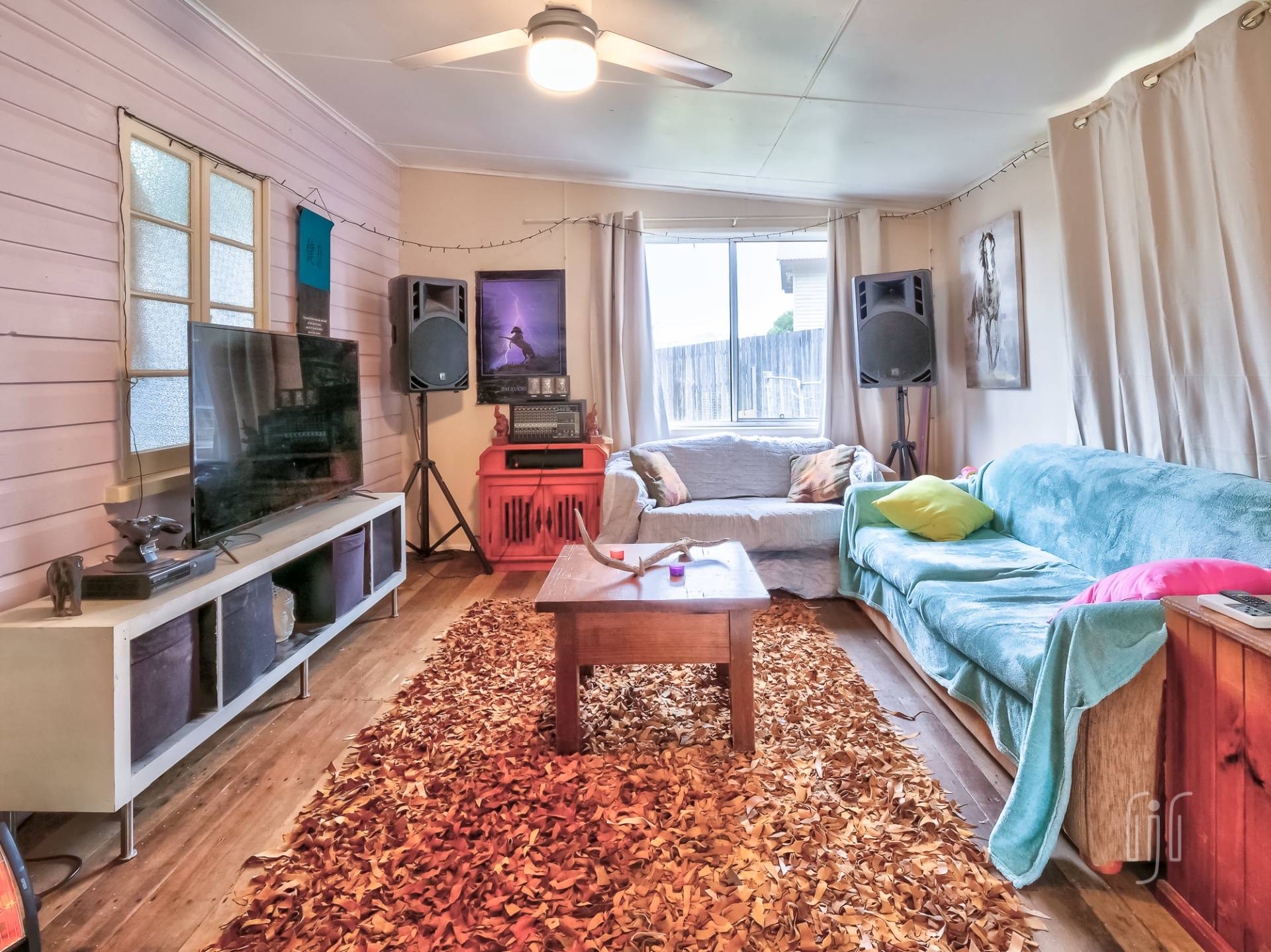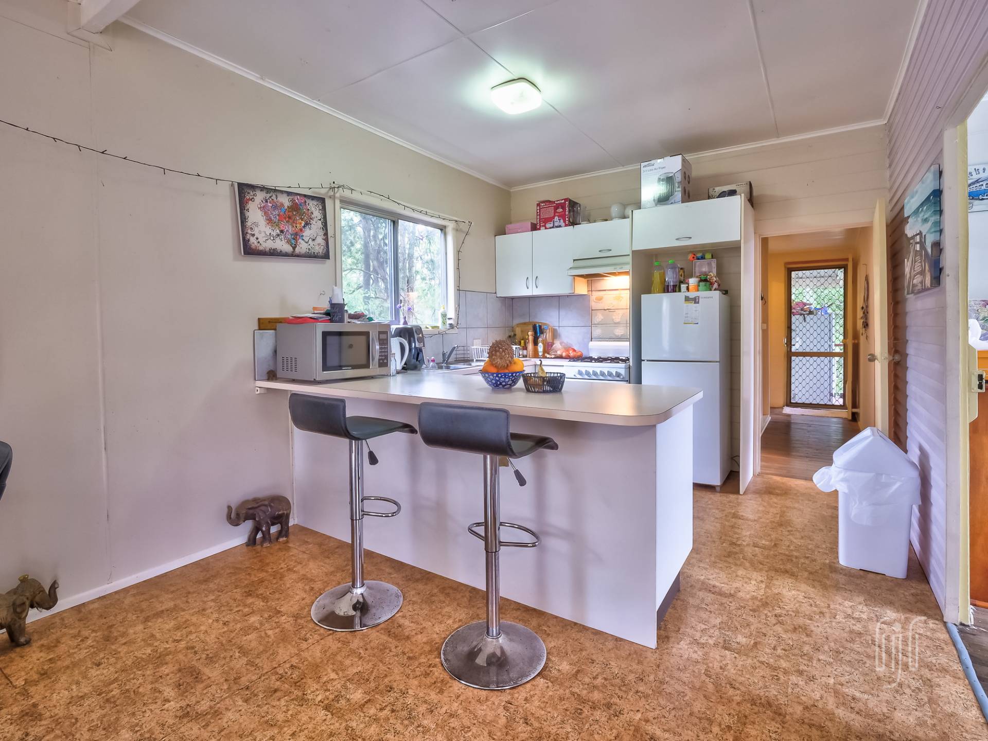 Located on a quarter acre (1,012m2) block, the front house is a classic Kandanga Queenslander. It’s in good condition, but ready for an upgrade. Entry is straight into an enclosed veranda that gives access to the hallway and two of the bedrooms. The living area is central to the home and has access to the rear porch. The galley kitchen has electric cooking and good storage that includes a pantry. The living area has original timber floors. There are 4 bedroom, including a sleep out style bedroom, and one bathroom.