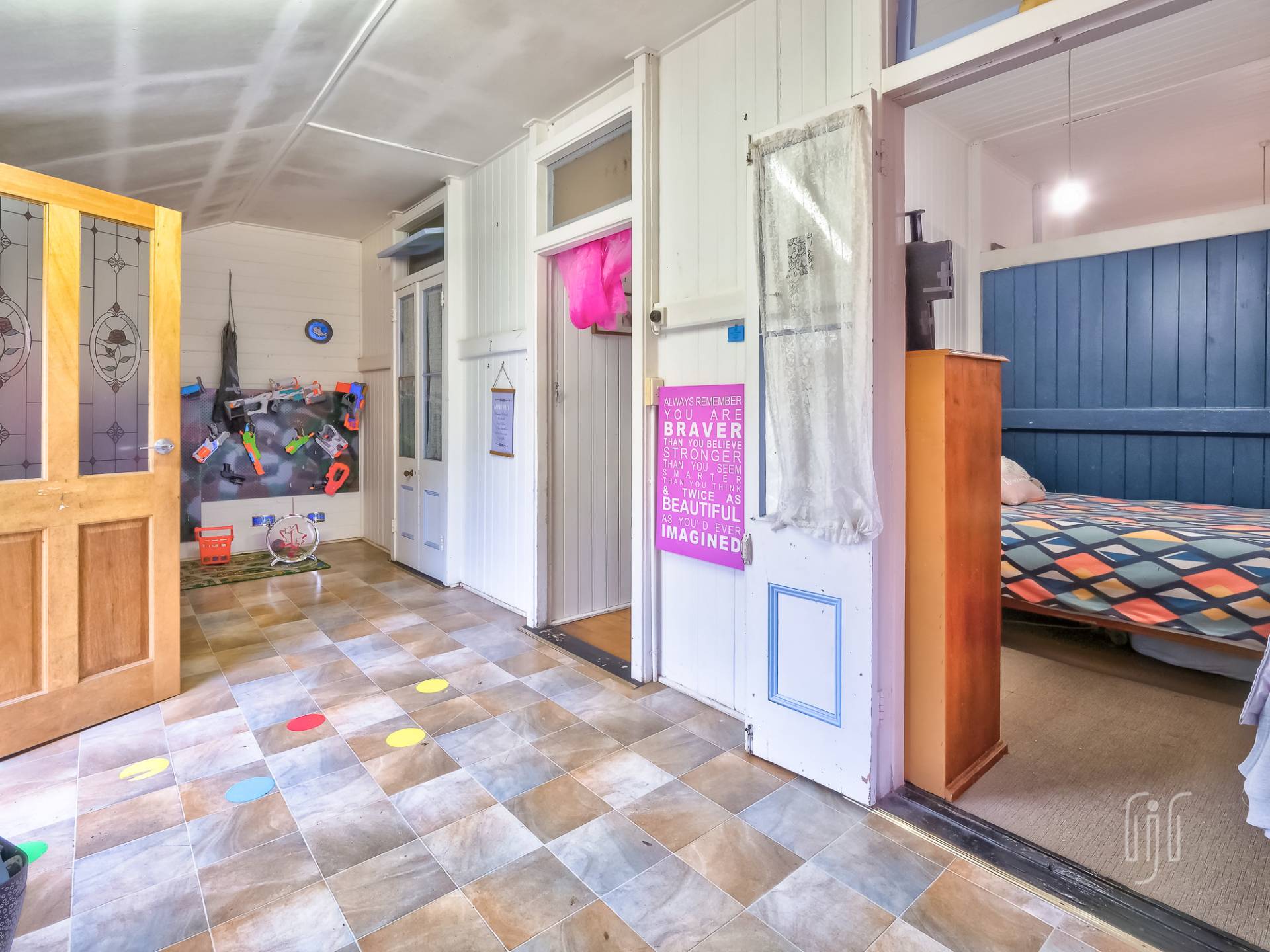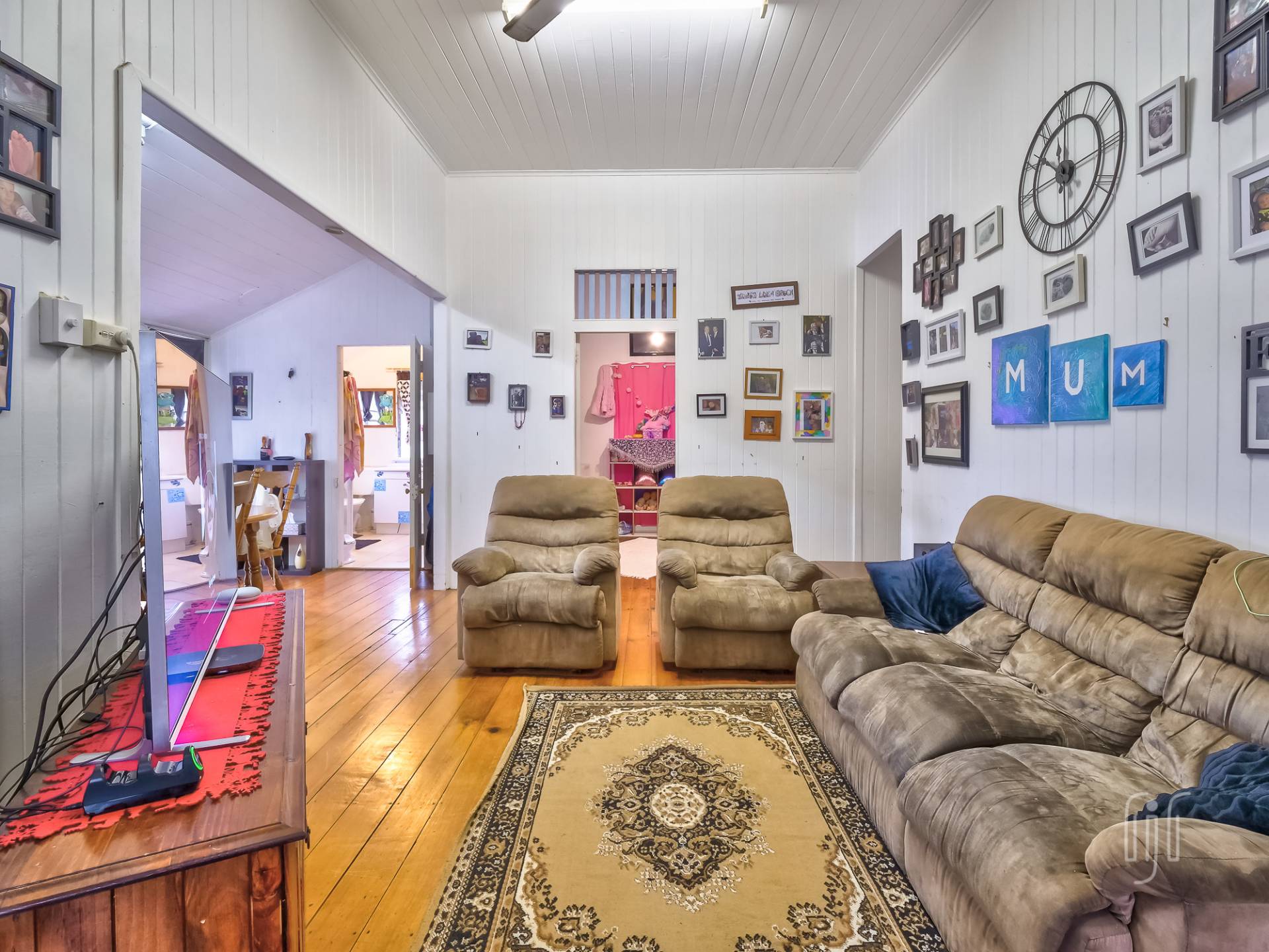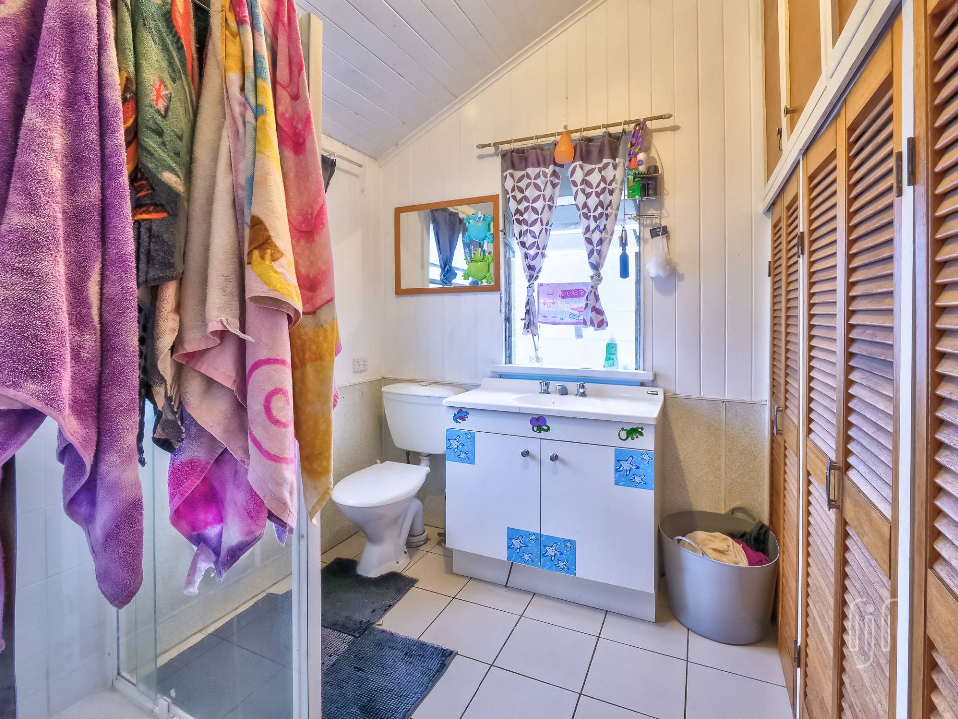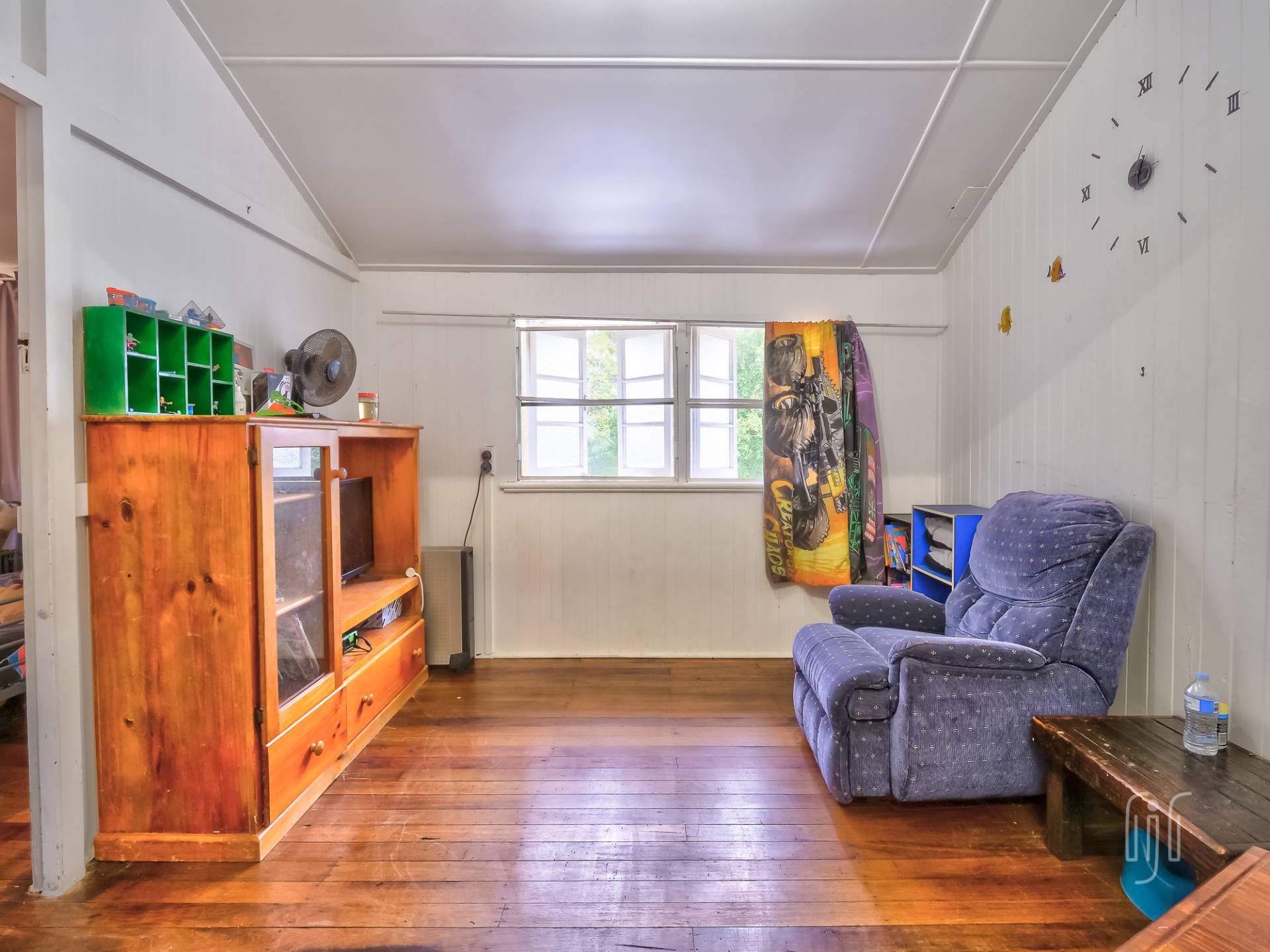 Located on a quarter acre (1,012m2) block, the front house is a classic Kandanga Queenslander. It’s in good condition, but ready for an upgrade. Entry is straight into an enclosed veranda that gives access to the hallway and two of the bedrooms. The living area is central to the home and has access to the rear porch. The galley kitchen has electric cooking and good storage that includes a pantry. The living area has original timber floors. There are 4 bedroom, including a sleep out style bedroom, and one bathroom.