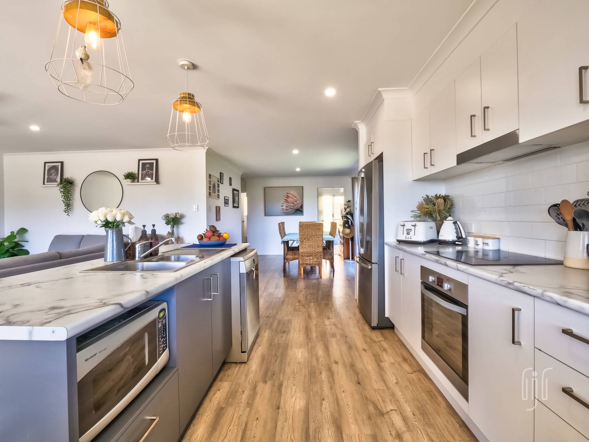 A concrete driveway takes you to this “two years young” country home, set amoungst other modern homes, in Kenilworth’s new estate. The lowset home is a modern take on country!