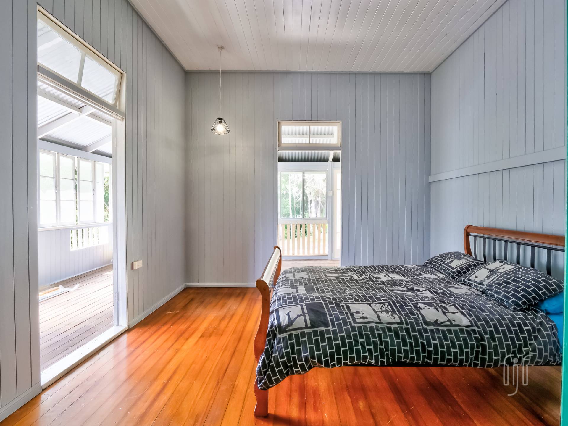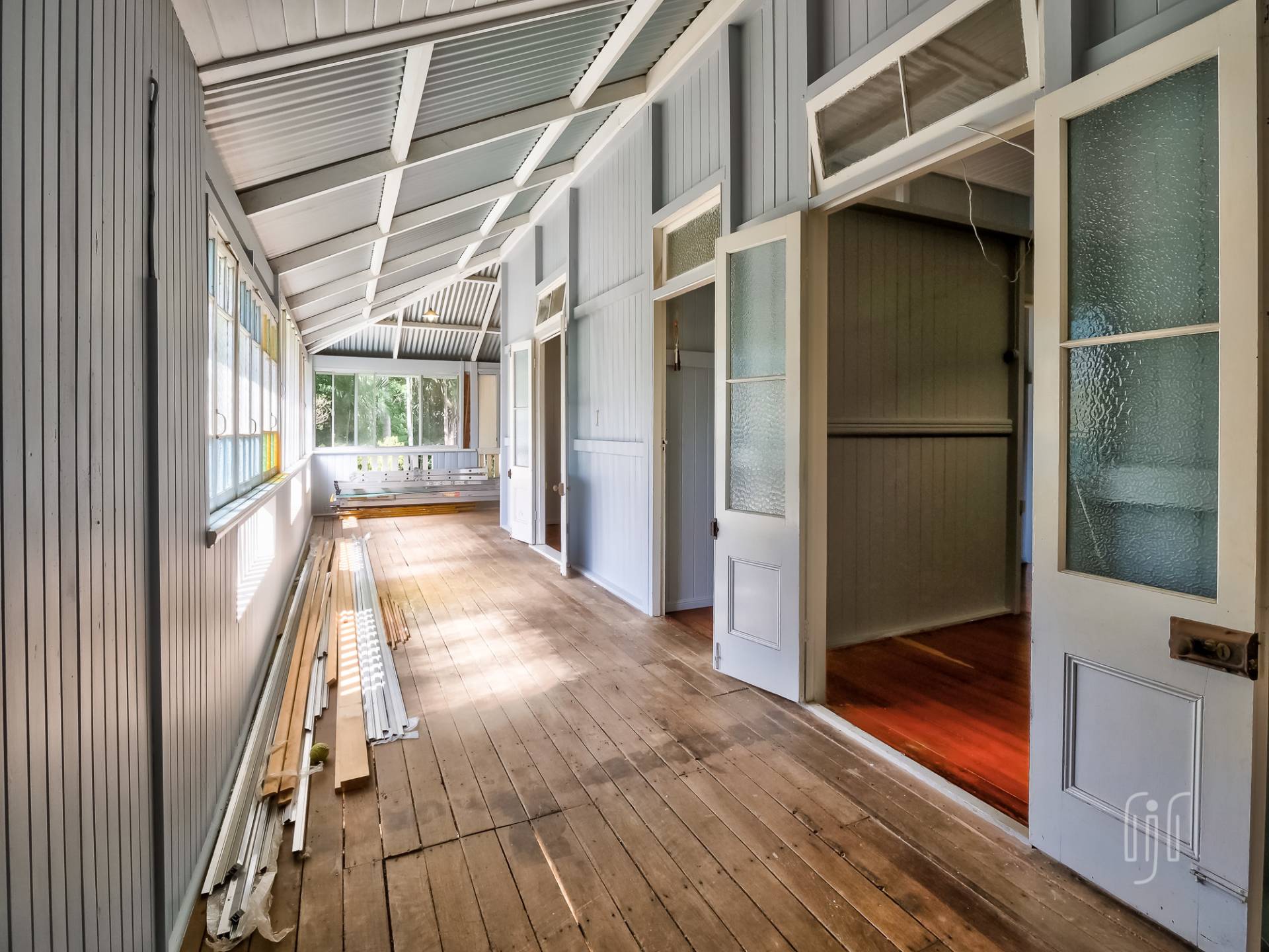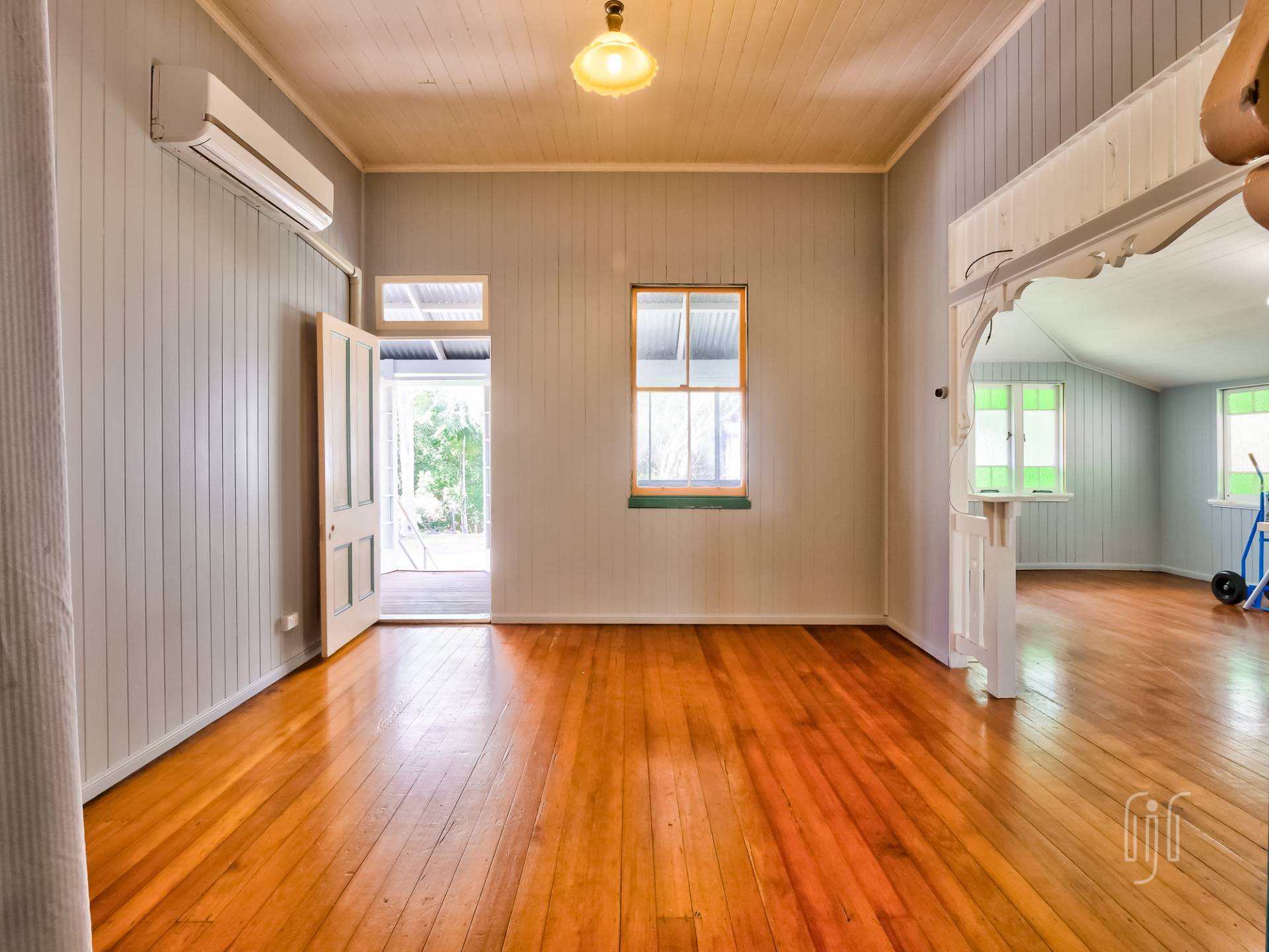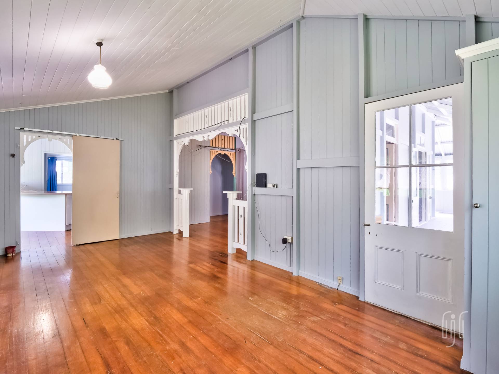 Queenslanders also have a central hallway. Here, it gives access to the living area and kitchen, as well as three of the five bedrooms. The home has the usual Queenslander features that include timber floors, and period windows, doors & trims.