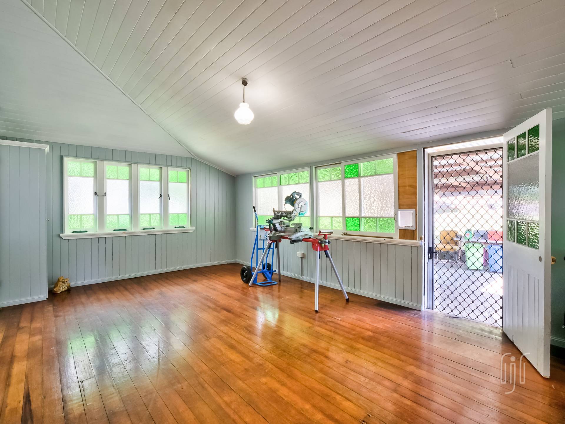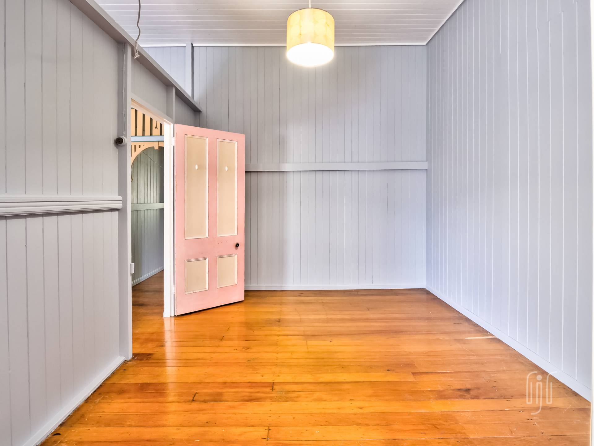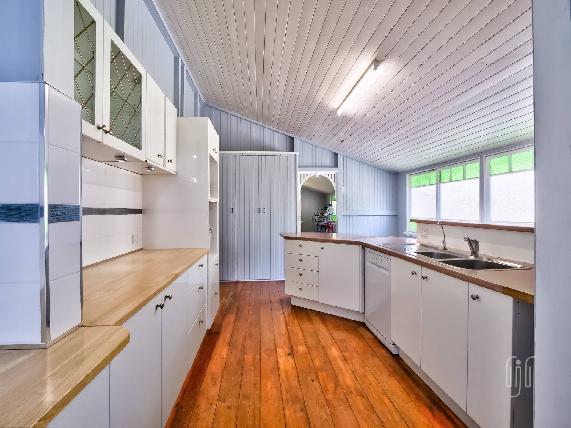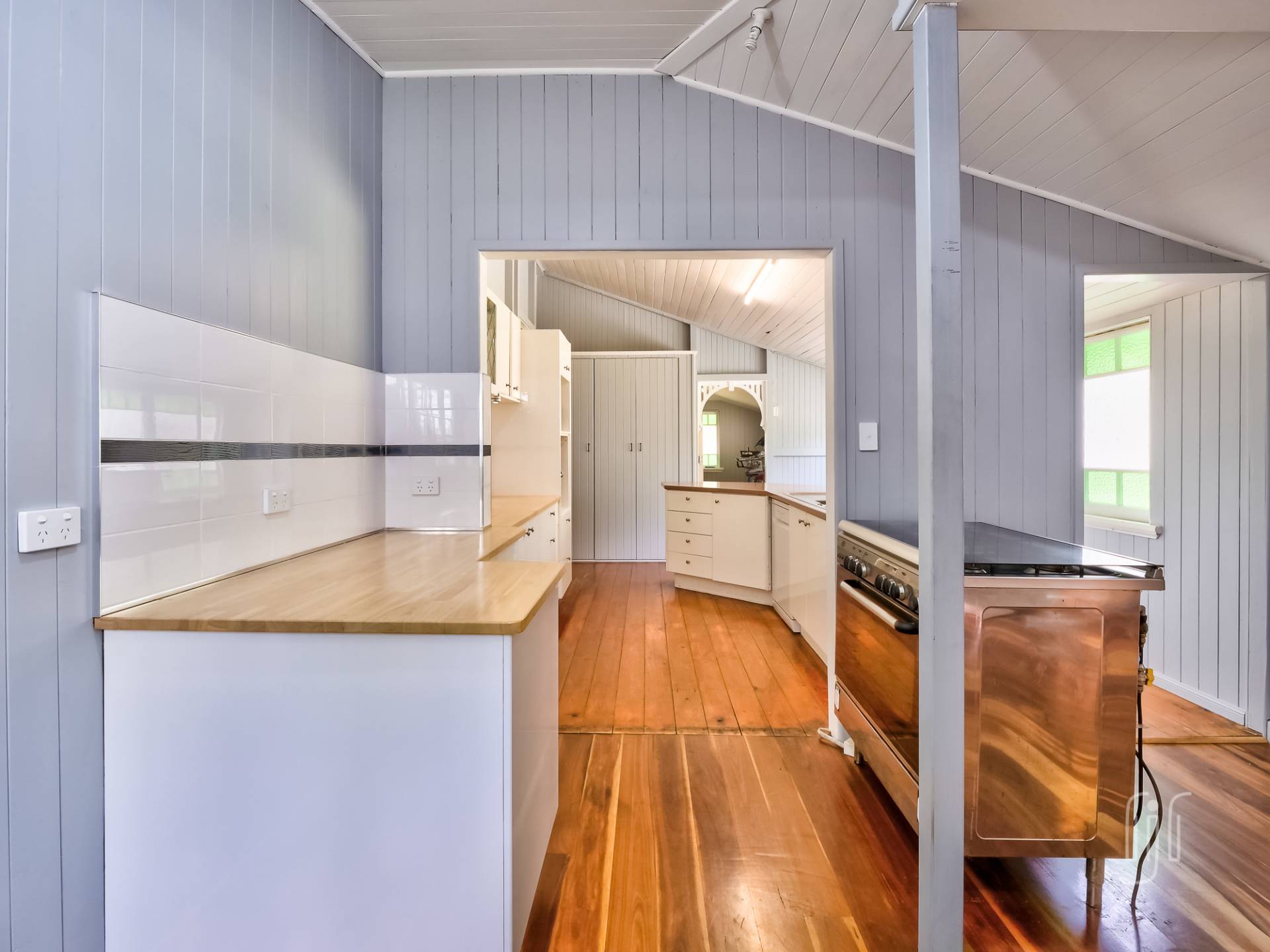 Queenslanders also have a central hallway. Here, it gives access to the living area and kitchen, as well as three of the five bedrooms. The home has the usual Queenslander features that include timber floors, and period windows, doors & trims.