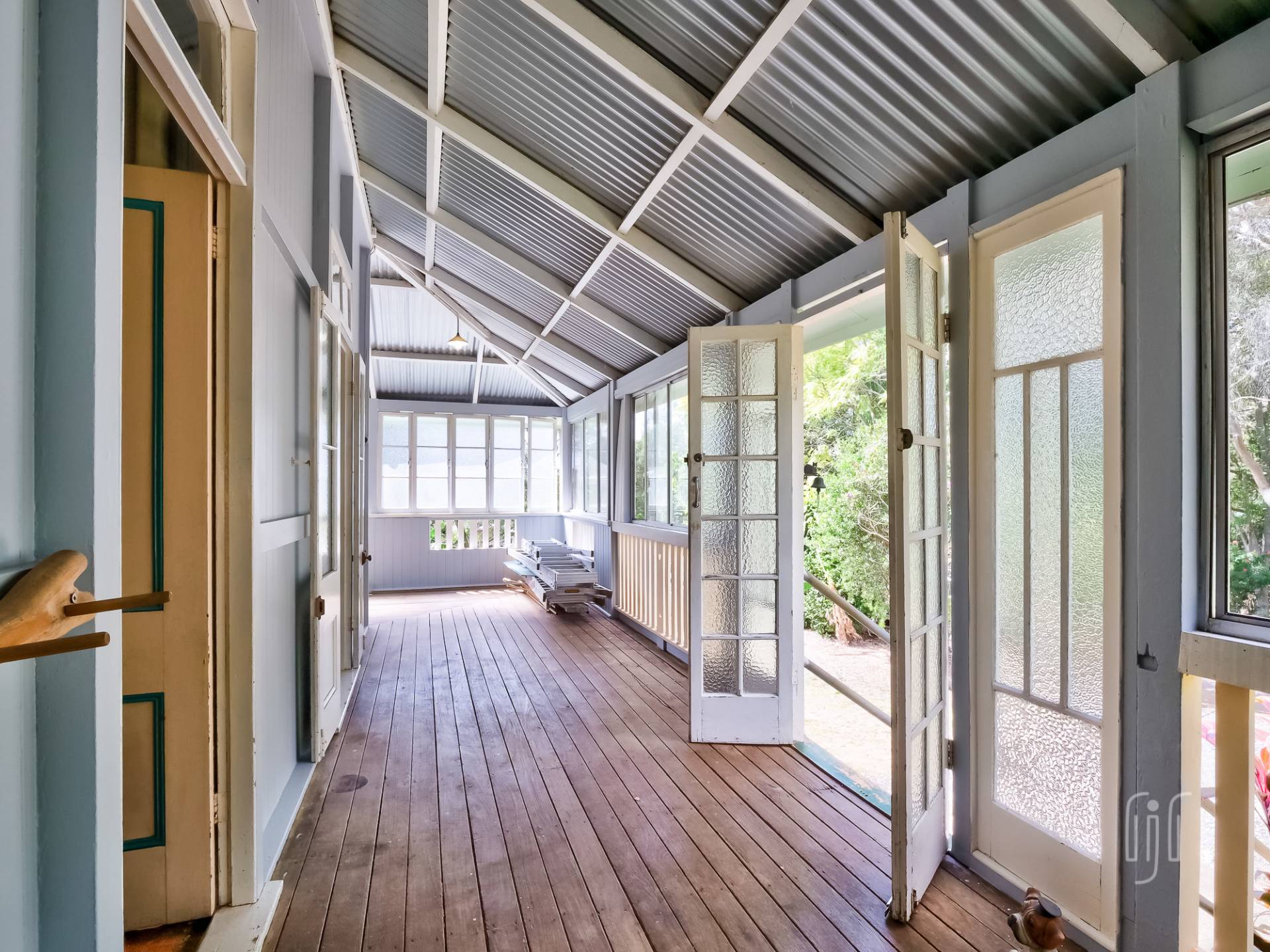 Classic Queensland homes share some common characteristics. One characteristic is that they start small and end up much bigger, and 2 Lutton Lane is no exception to that rule. We enter an enclosed L-shape veranda with banks of casement & sliding windows that turn the veranda into a living room extension.