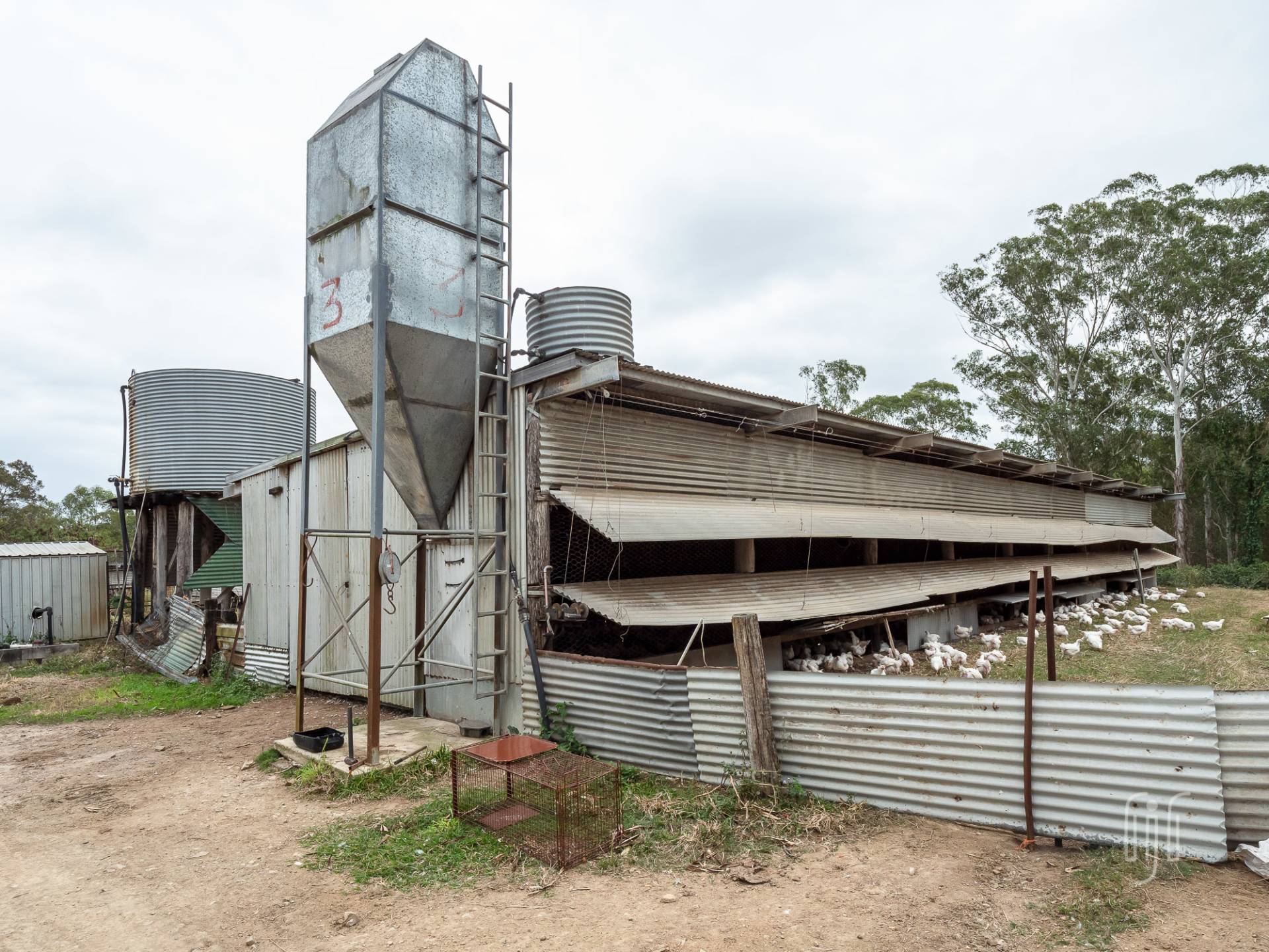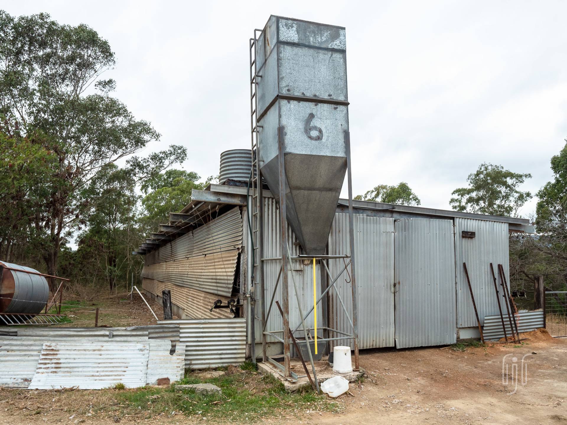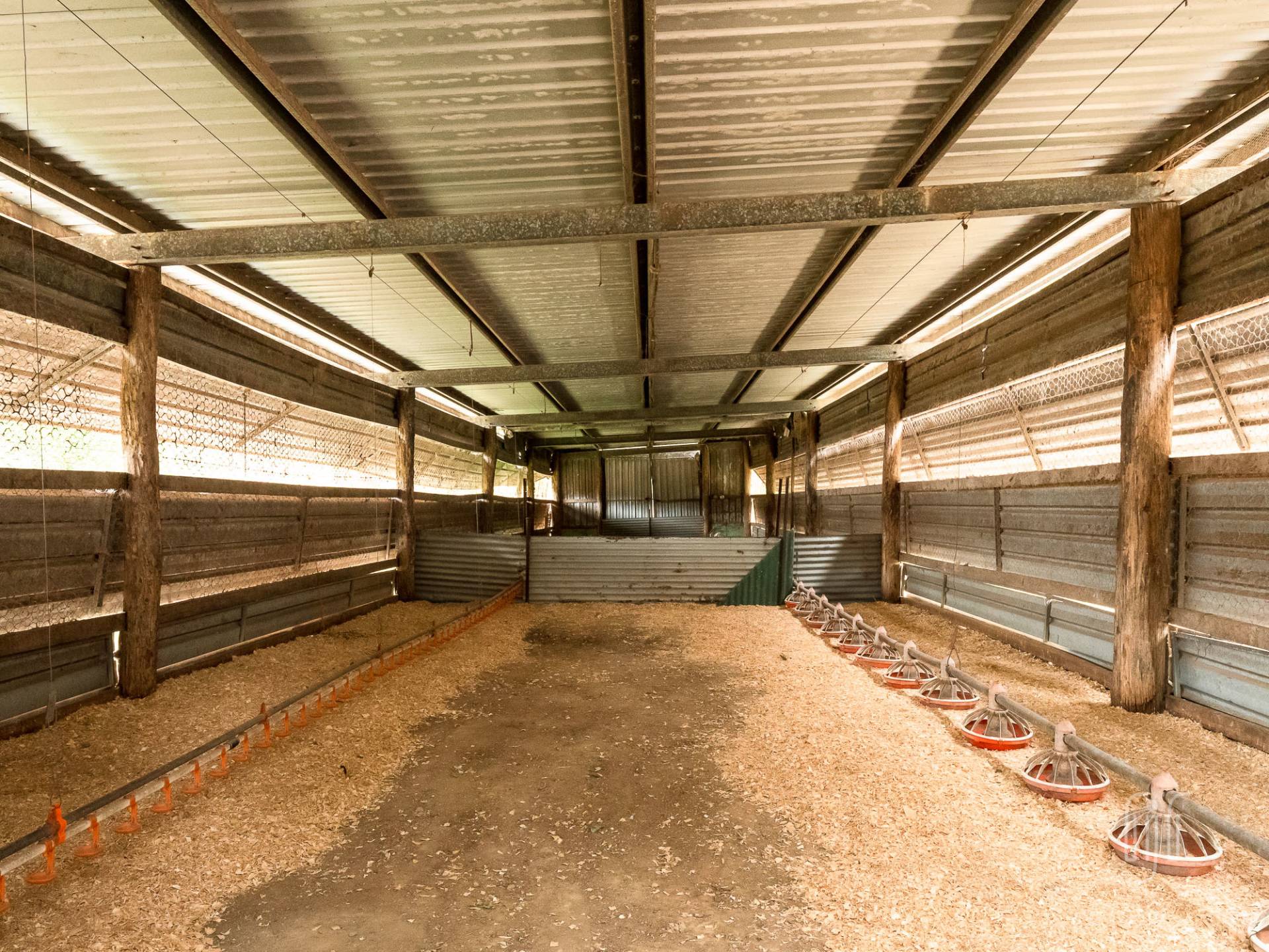 Infra structure includes a two-bedroom/one-bathroom manager’s cottage, six poultry sheds with fenced yards, a workshop/storage shed, the office building and the abattoir facility. All equipment used in poultry production is included in the sale. The land, totalling around 30 acres (12 ha), is fully fences and watered by 5 dams, a bore & licensed-access to Coonoon Gibber Creek. Filtered creek water is used for chicken production.