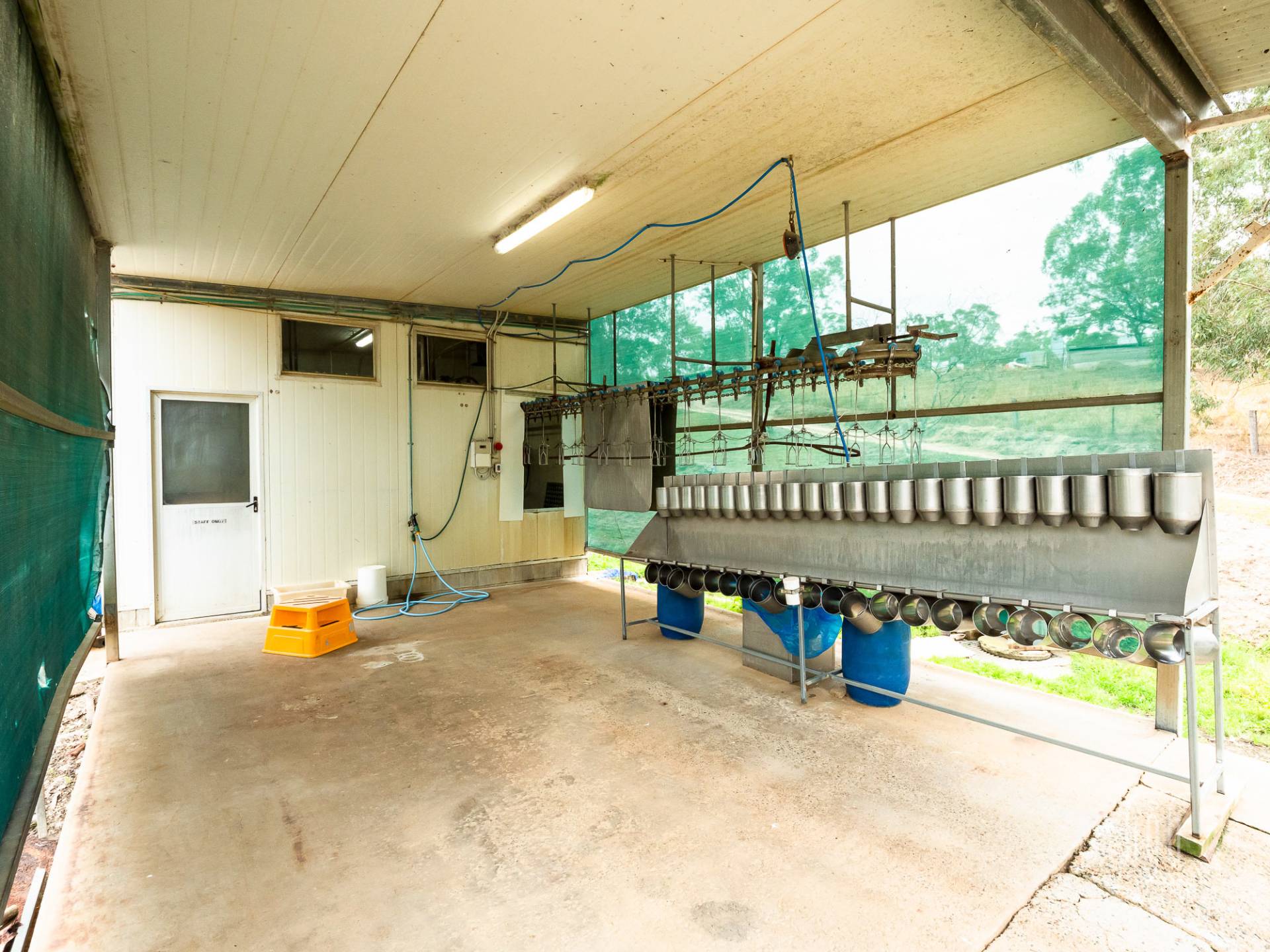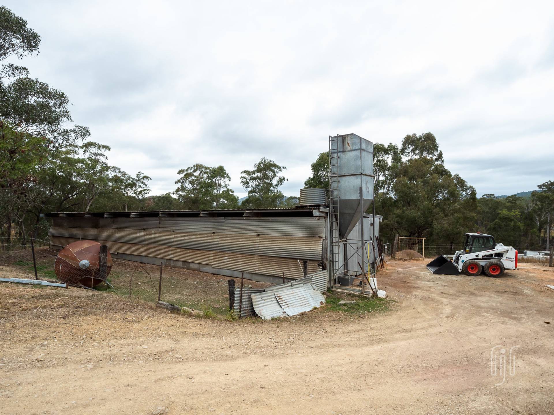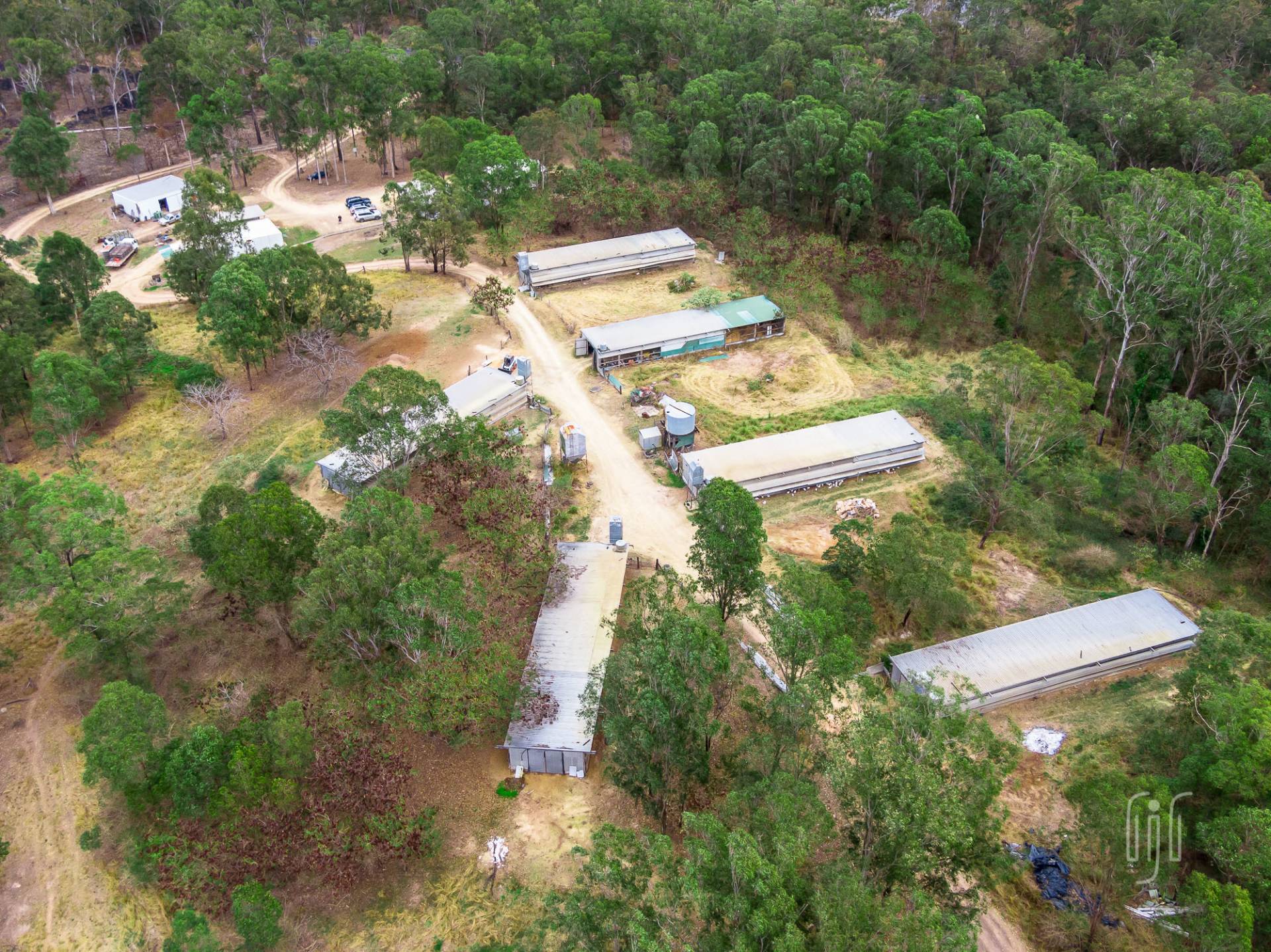 Infra structure includes a two-bedroom/one-bathroom manager’s cottage, six poultry sheds with fenced yards, a workshop/storage shed, the office building and the abattoir facility. All equipment used in poultry production is included in the sale. The land, totalling around 30 acres (12 ha), is fully fences and watered by 5 dams, a bore & licensed-access to Coonoon Gibber Creek. Filtered creek water is used for chicken production.