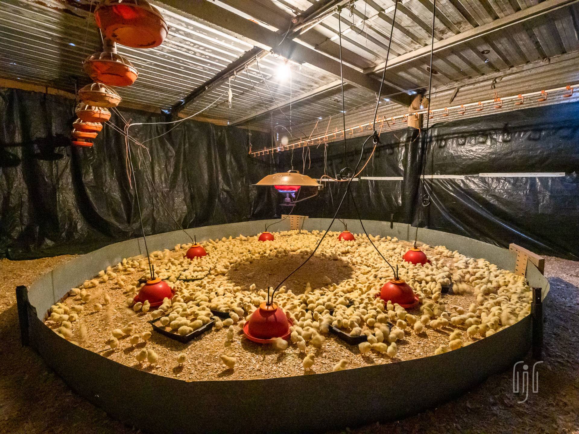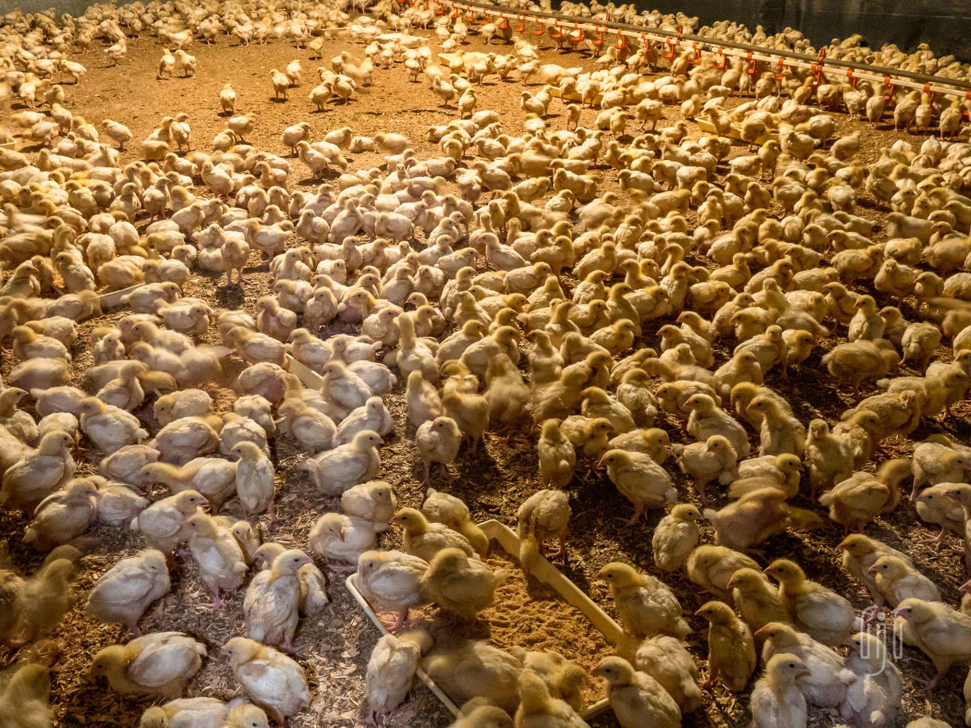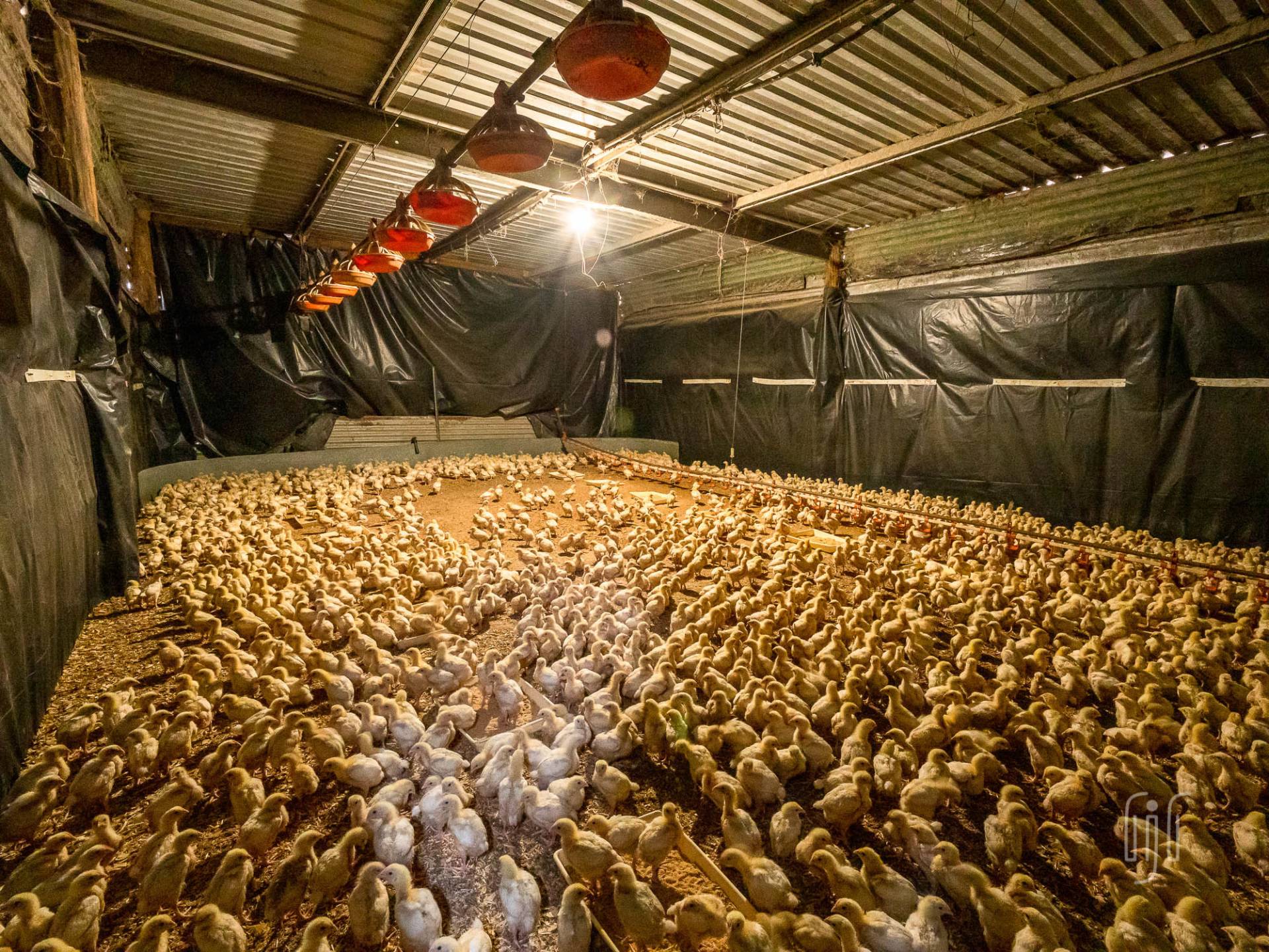 Each of the 5 operating sheds start with around 2,000 day-old chickens, initially occupying a small space in a very large shed. As they grow, their allowable space is increased until, at around 7-8 weeks, they ready for processing through the onsite abattoir.