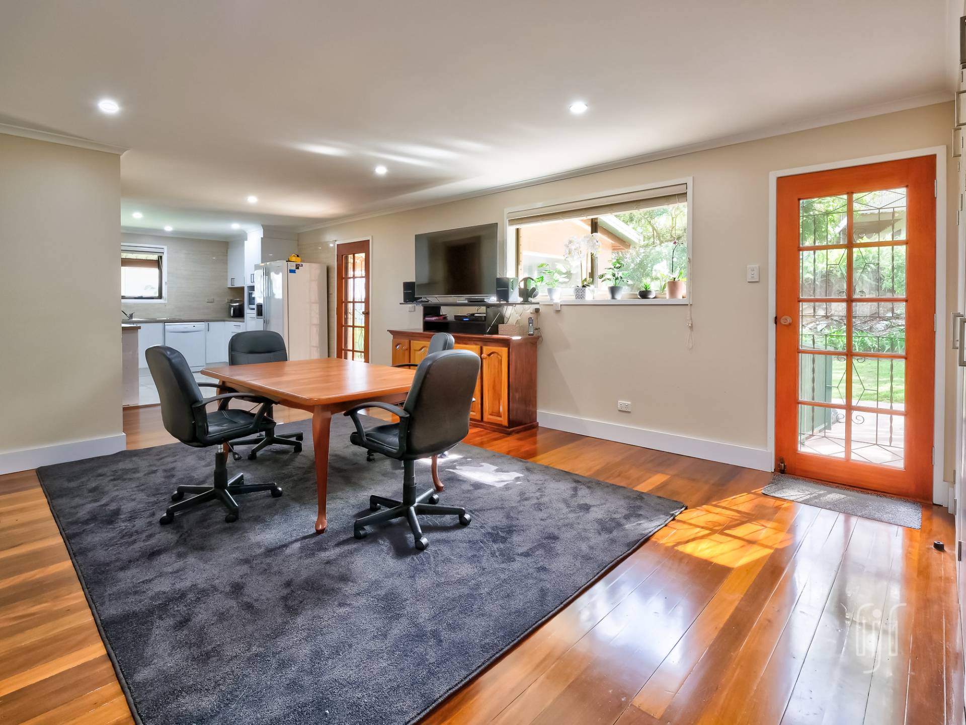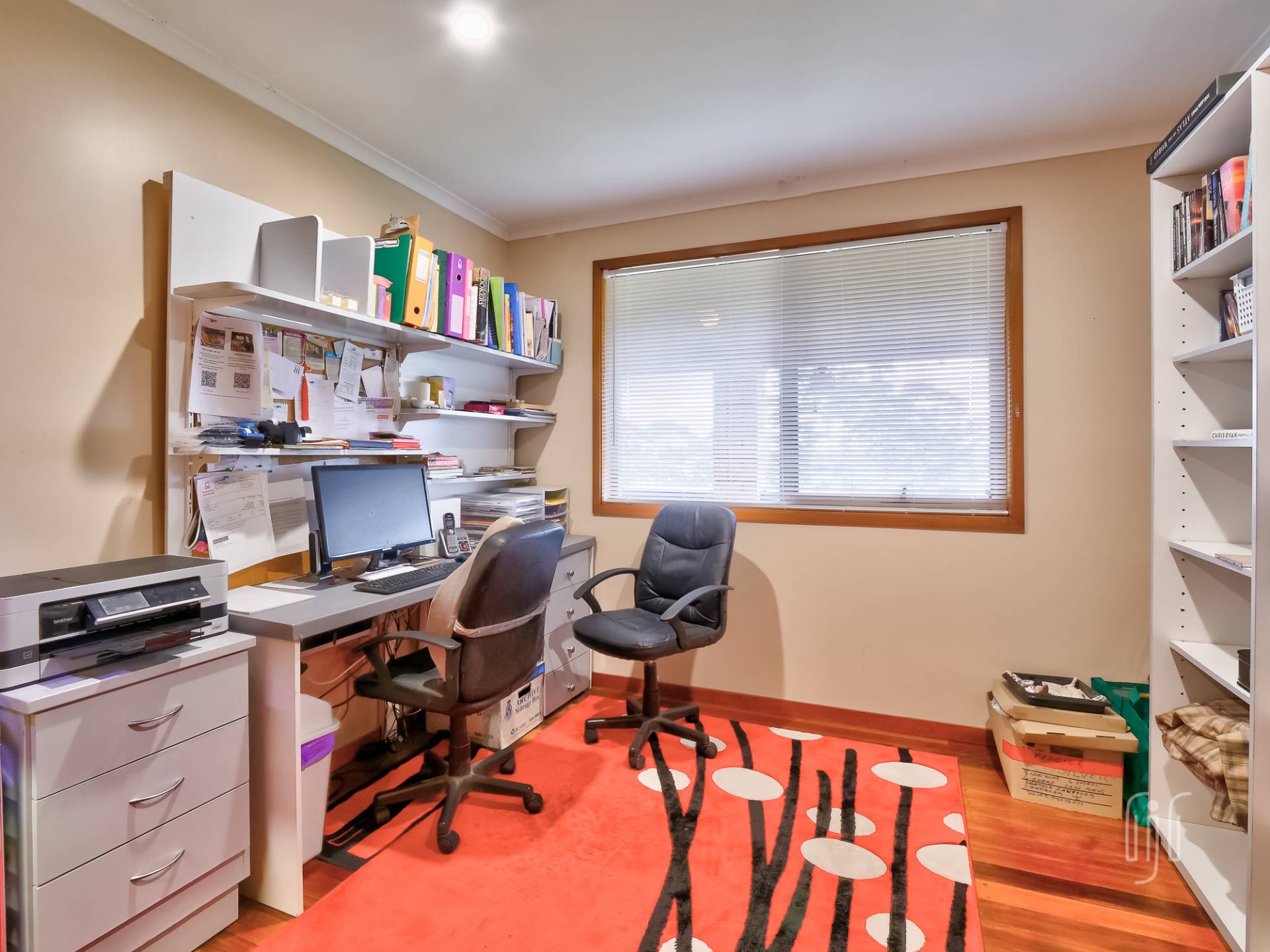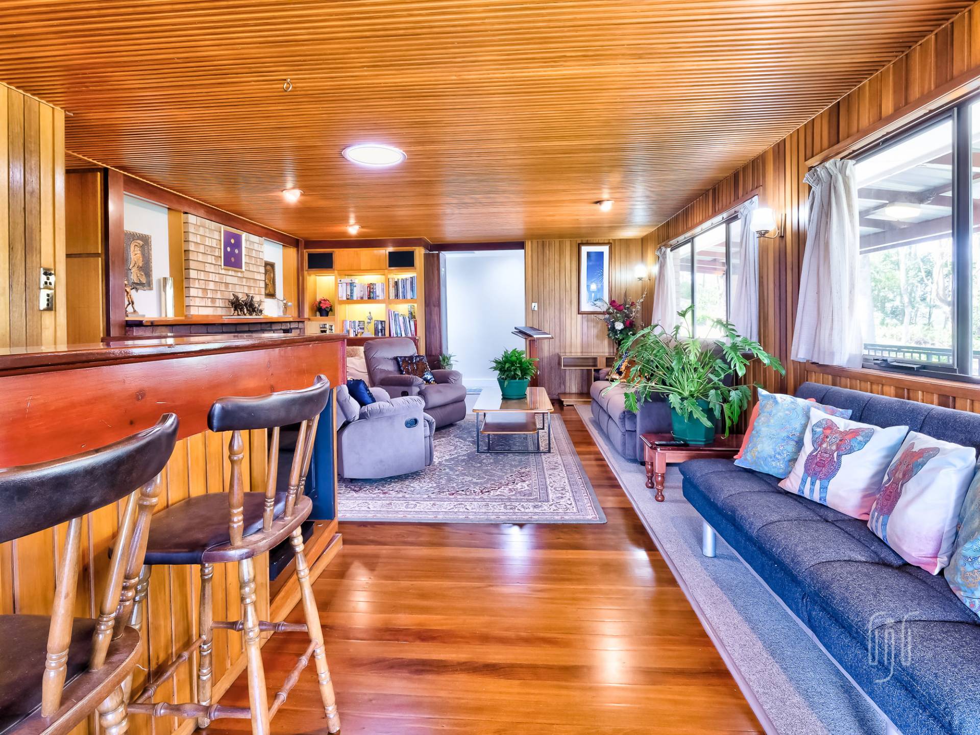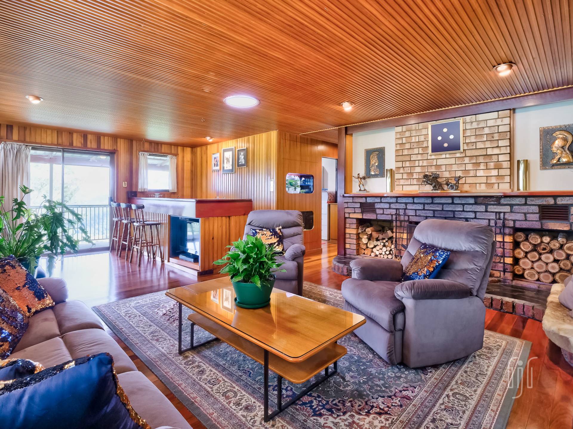 Entry to the main home is via wrap around verandas on the top level that capture those views. Inside, the living area is divided between a lounge & kitchen/family room OR formal & informal areas. While Brush Box flooring is a feature right through the home, the lounge also has the quality feel of timber walls and ceilings. The timber complements the brick open fireplace & built-in bar. The updated kitchen has both electric & slow combustion cooking, a dishwasher and heaps of work space & storage. The adjoining family room doubles as the dining room, has plenty of storage and ramp access to the rear yard. There are 4 bedrooms, 3 with ensuites, plus the office. Internal stairs connect the top level to the garage/workshop under.