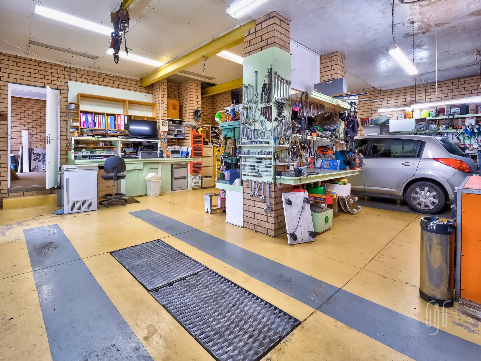 The main garage provides parking for two vehicles and full workshop facilities, including a vehicle service pit. It has additional storage space, a small office and the convenience of a downstairs shower/toilet. A separate garage/storage shed and solar power completes this fully developed block.
