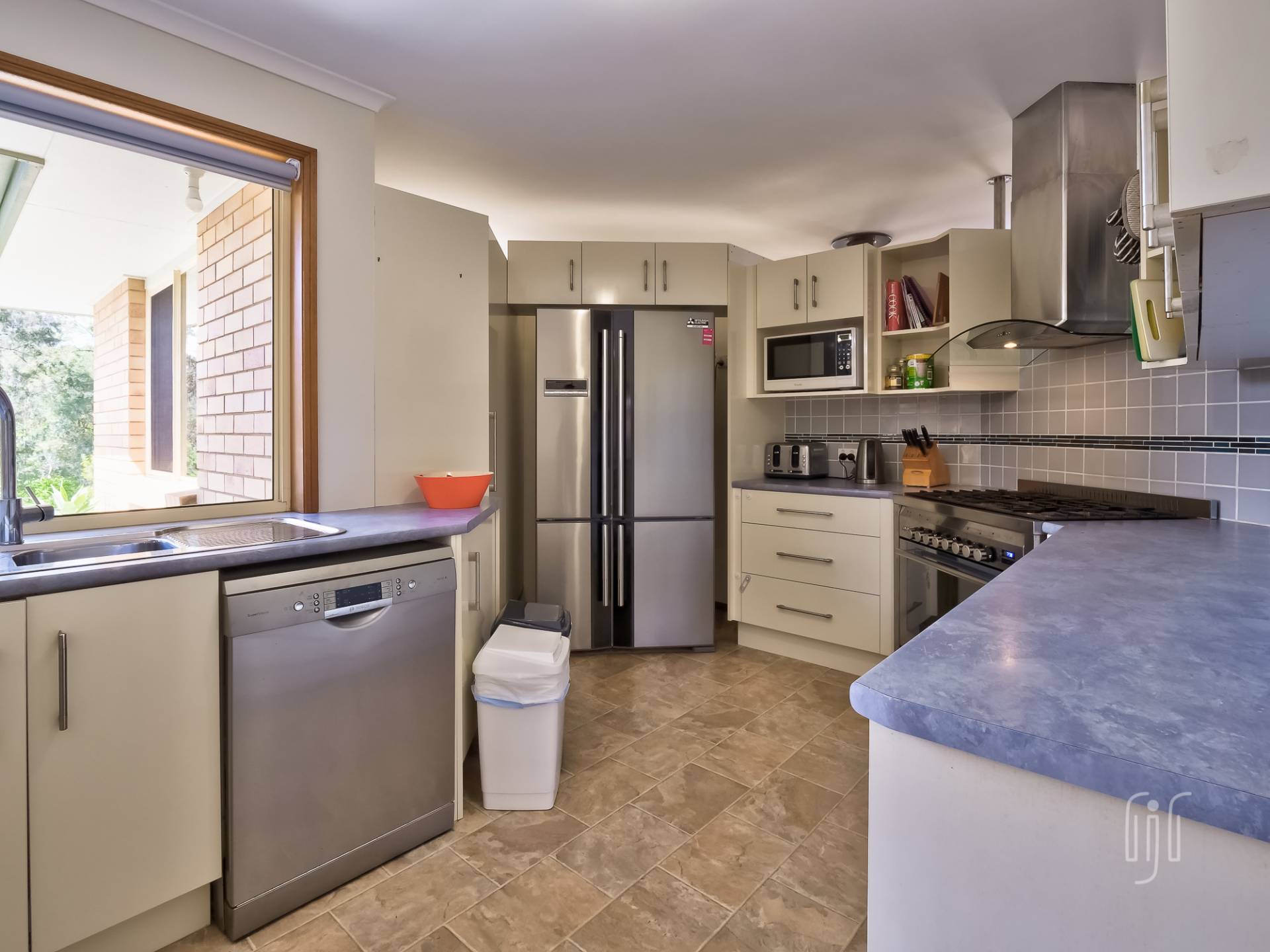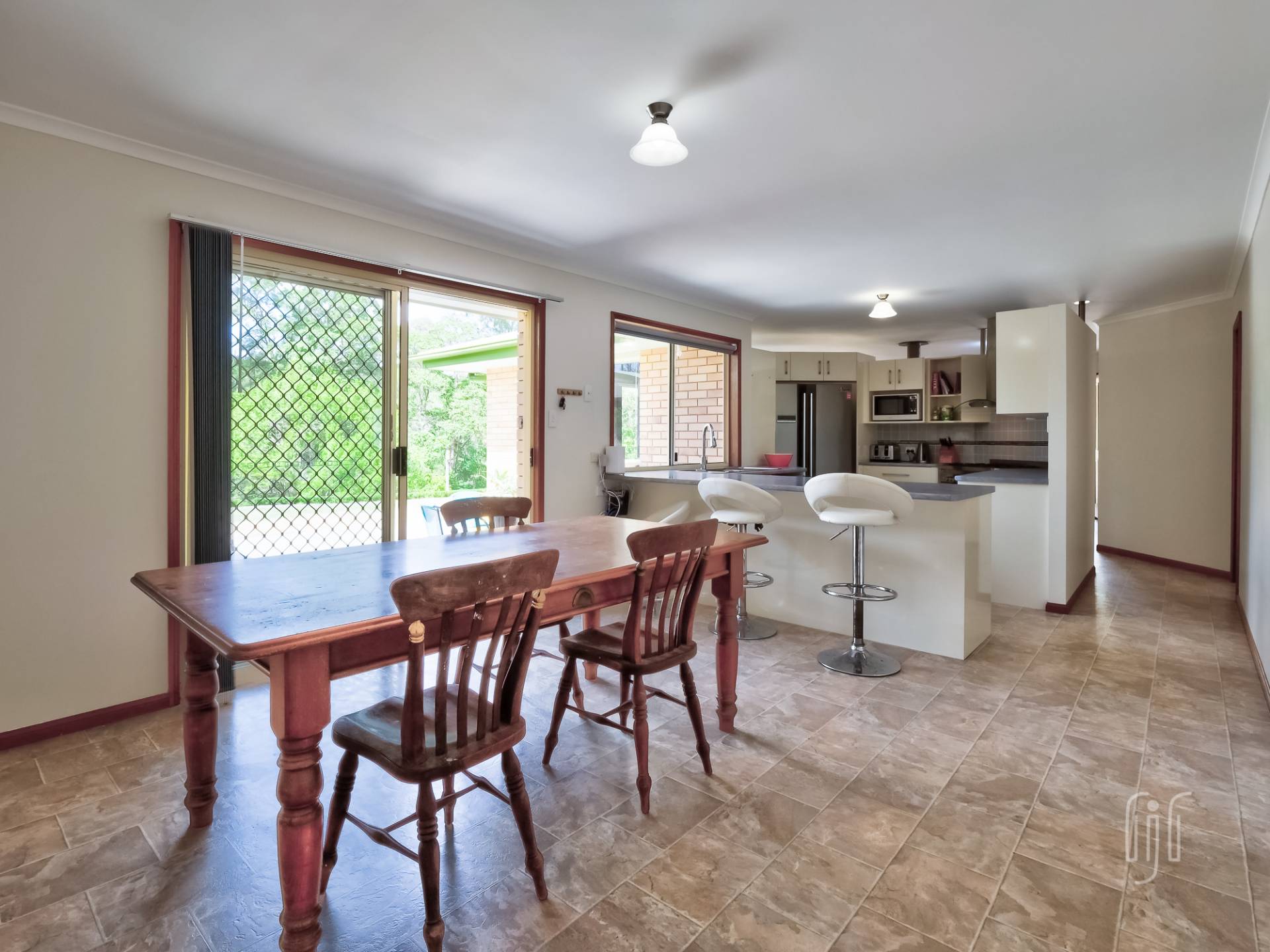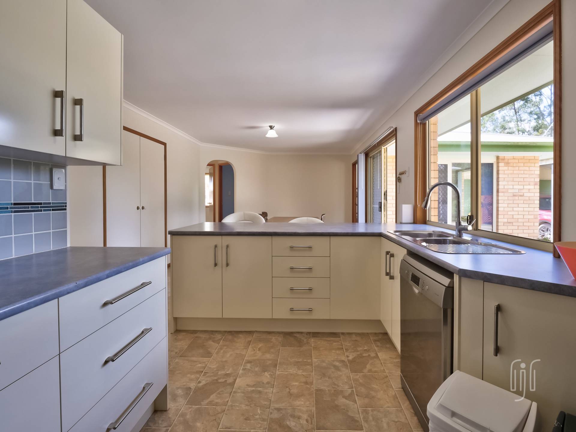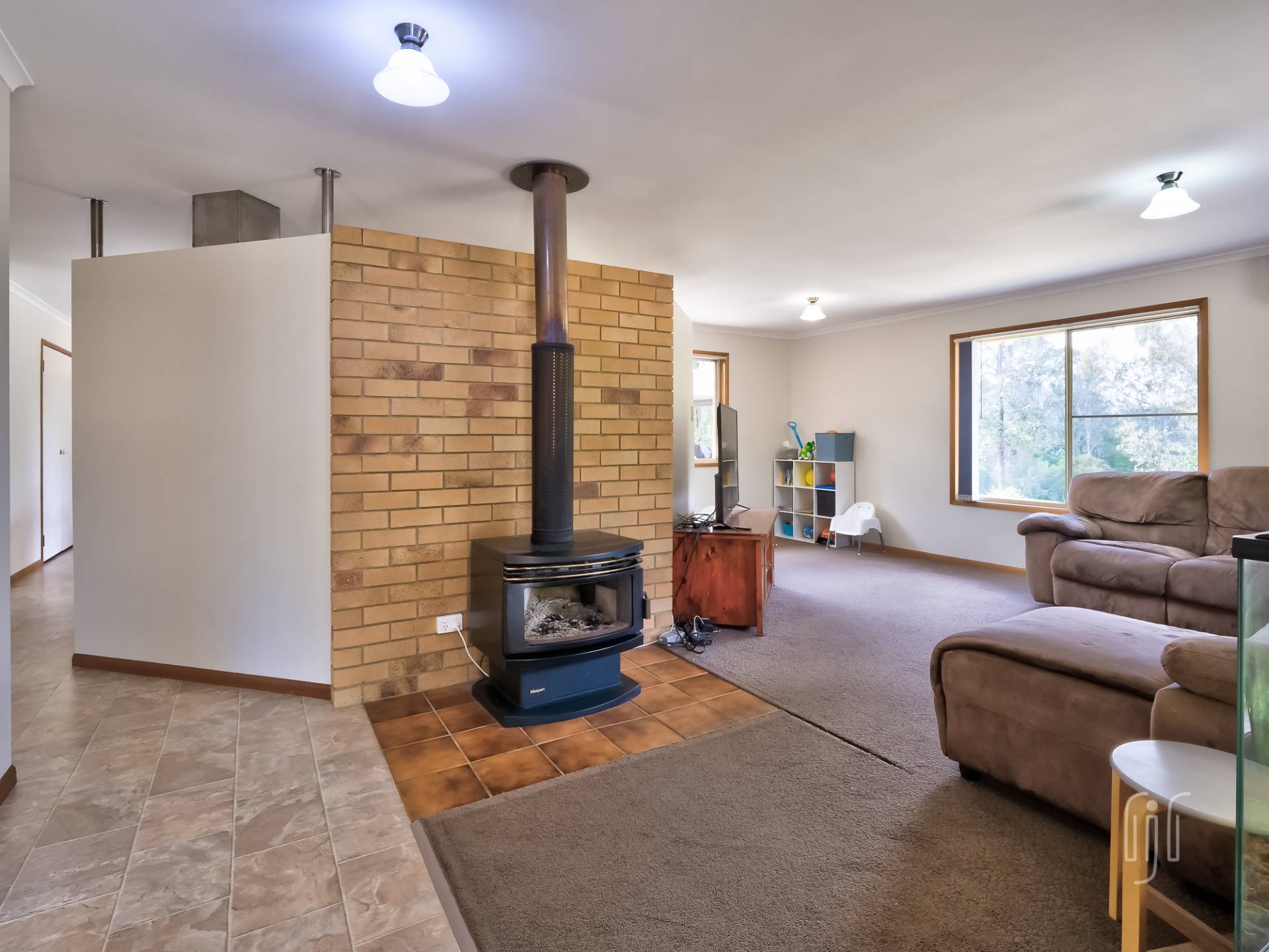Externally, this is a substantial low-set brick residence, in level grounds tamed by timber retainer walls. The home is U-shaped providing a courtyard entertaining space. Inside, you enter a formal living area, with slow combustion heating & air conditioning, then follow the hall to an informal area that includes the kitchen. The kitchen is central to the home, separated from the family/dining room by a breakfast bar. It has a freestanding gas stove & matching rangehood, good bench space and loads of storage that includes a pantry.