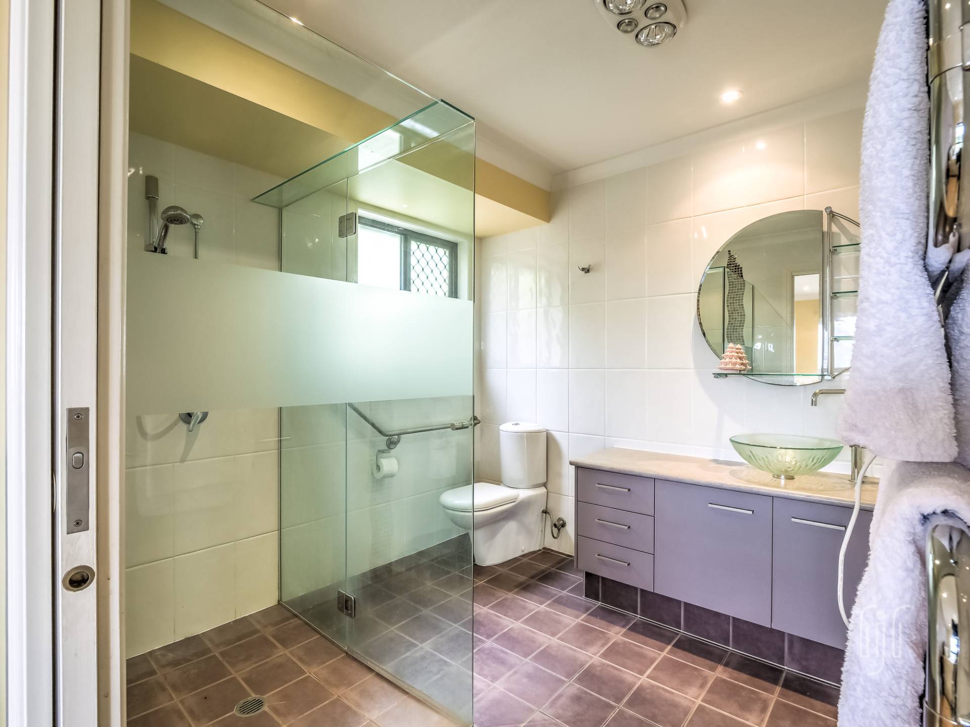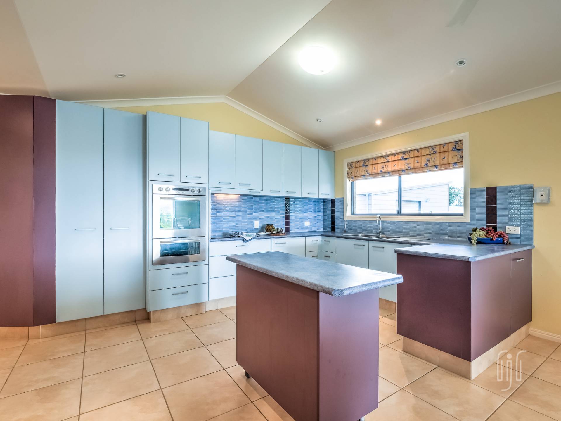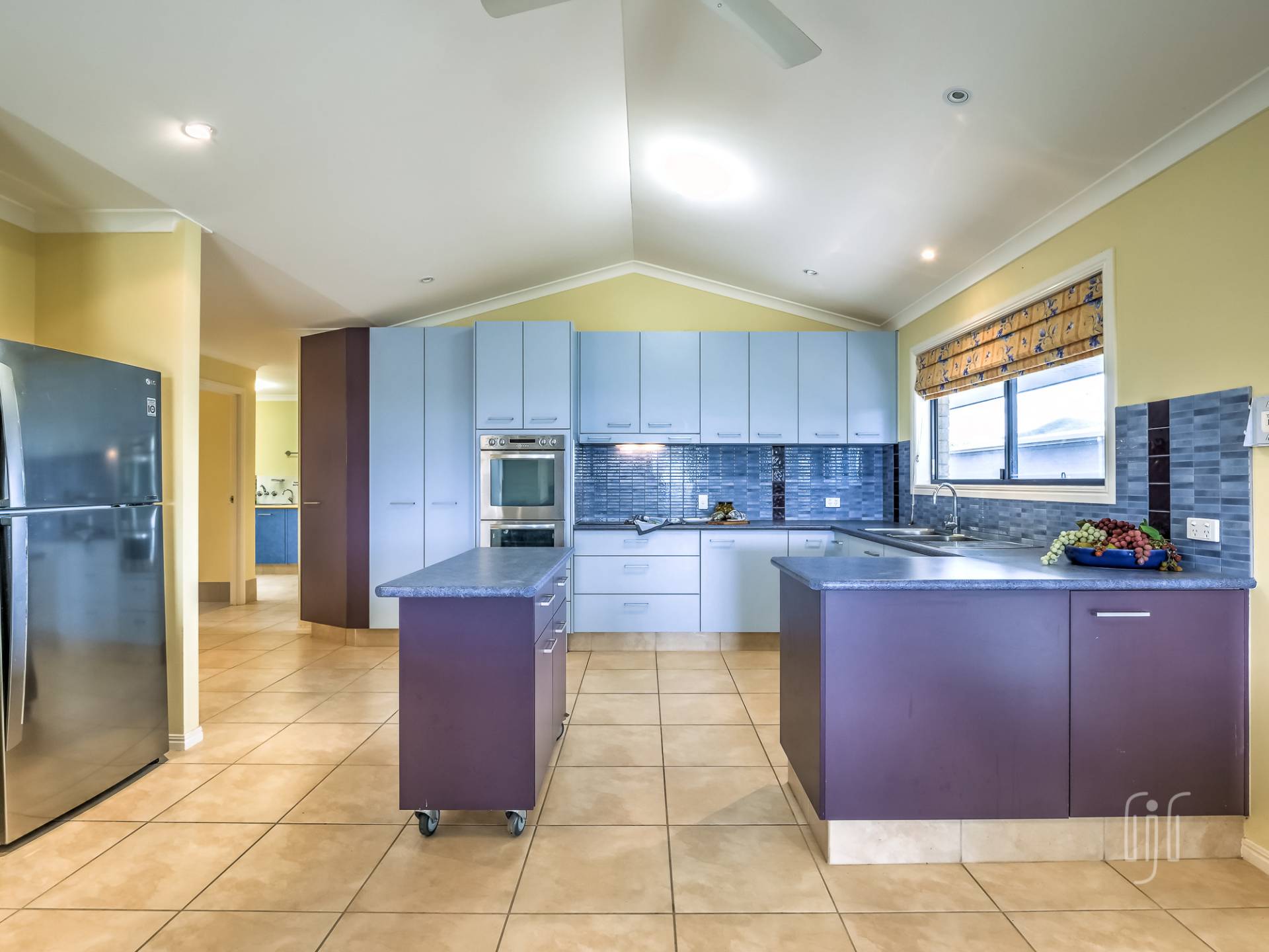 The kitchen has electric cooking, bench space that includes a movable island bench and storage that includes a pantry. There are 3 bedrooms, the main with a walk-in robe, a generous sized ensuite and direct access to the deck (and of course – those views). The other 2 bedrooms have built-in robes and the main bathroom has a separate toilet. The laundry is “country size”.
