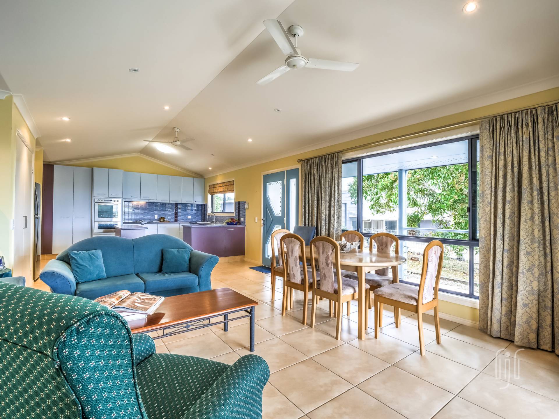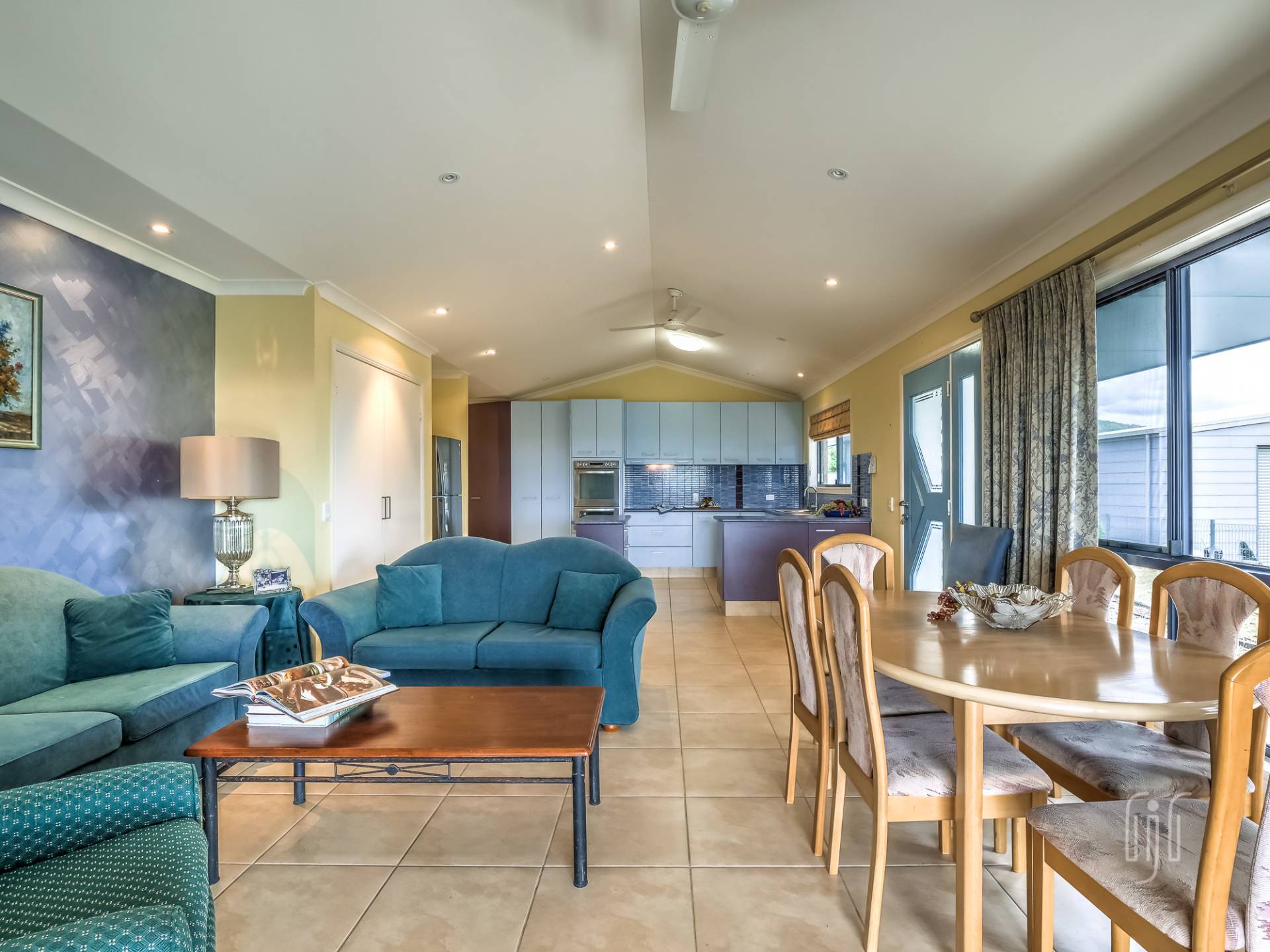 You enter from a covered veranda, straight into a fully-tiles open plan living area. From here, it’s a seamless transition from the inside living area to the outside living area. They share the view.