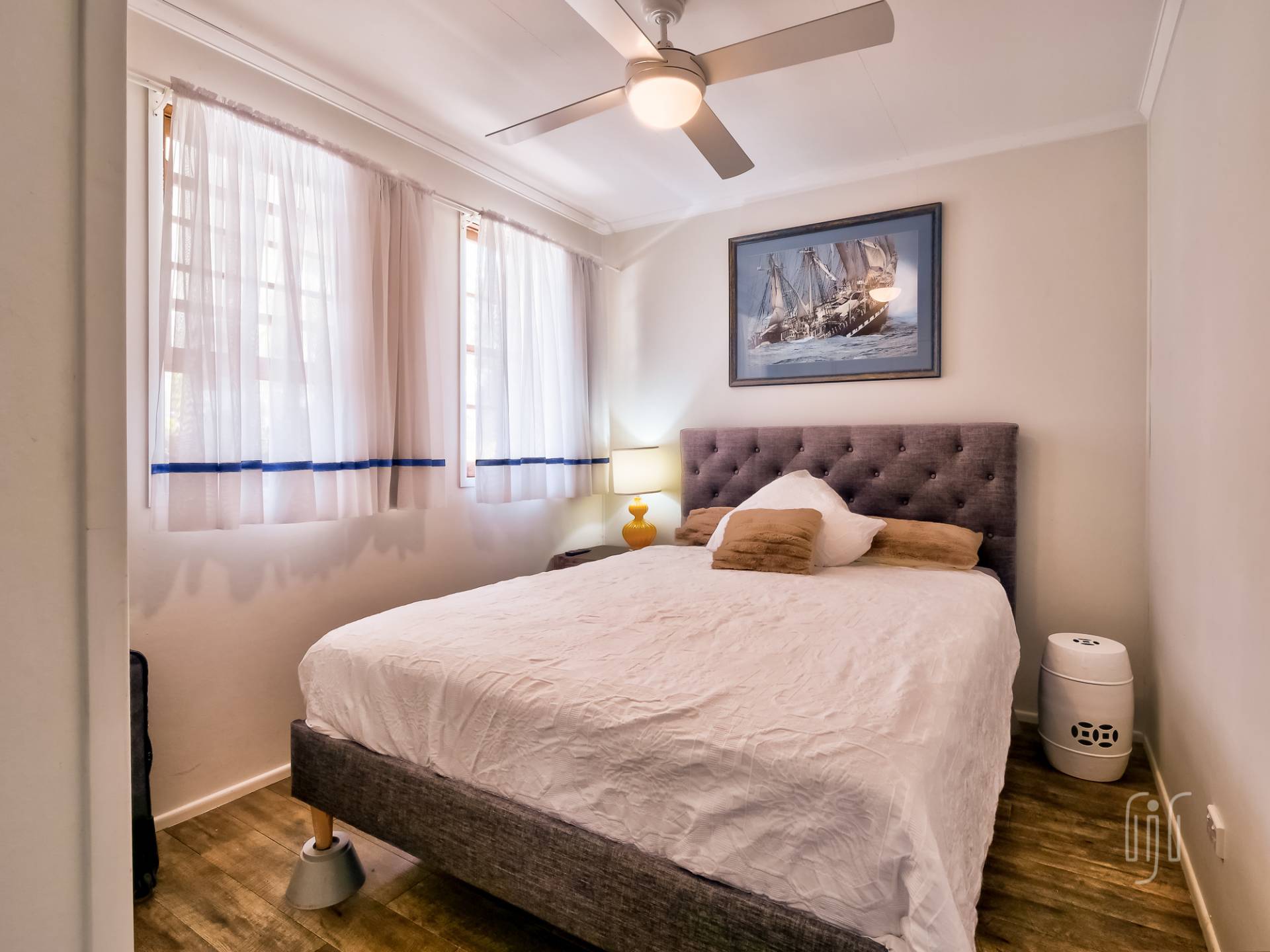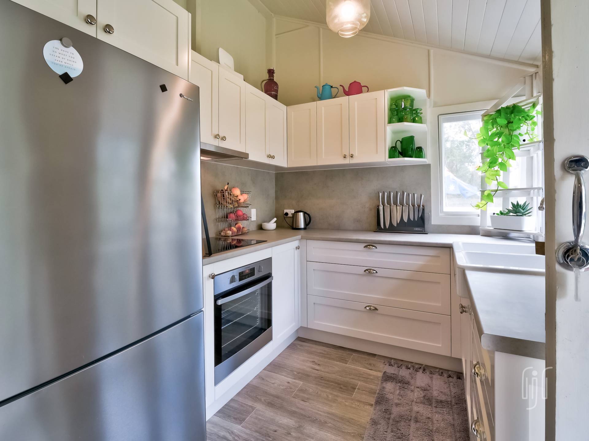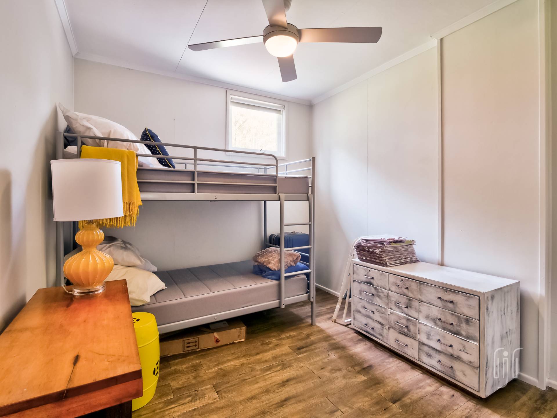 The upper level is an as-new, 1-bedroom cottage. It comprises a lounge/dining room, study nook and an updated kitchen with induction electric cooking and plenty of storage. Finishes include VJ walls & timber-look vinyl floorcoverings. As well as the bedroom, there is a large walk-in robe & modern bathroom. The upstairs deck is the place to catch a breeze or enjoy the outlook.