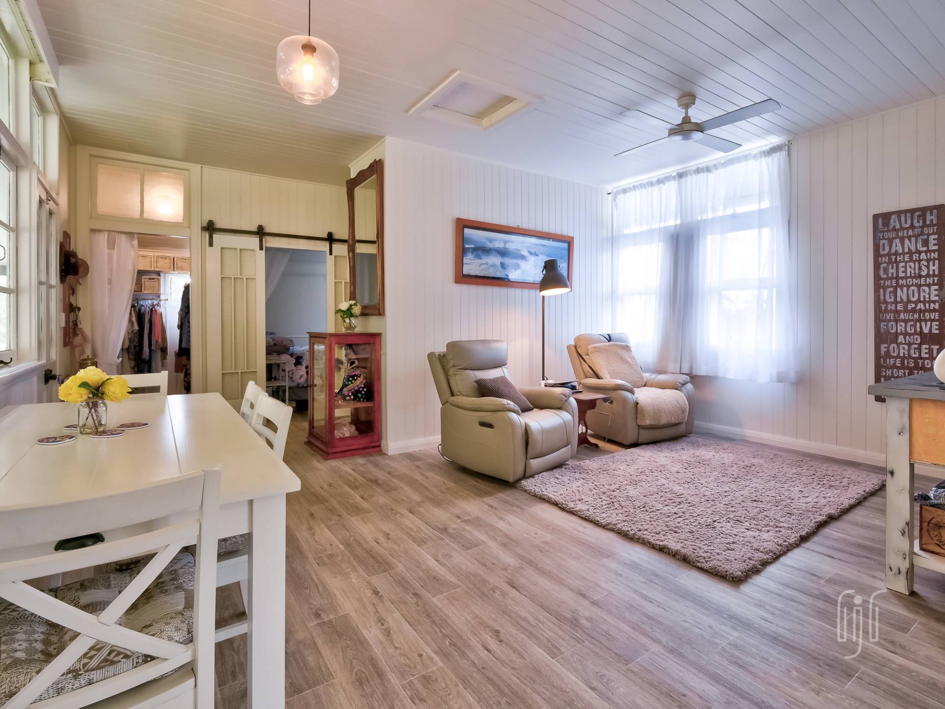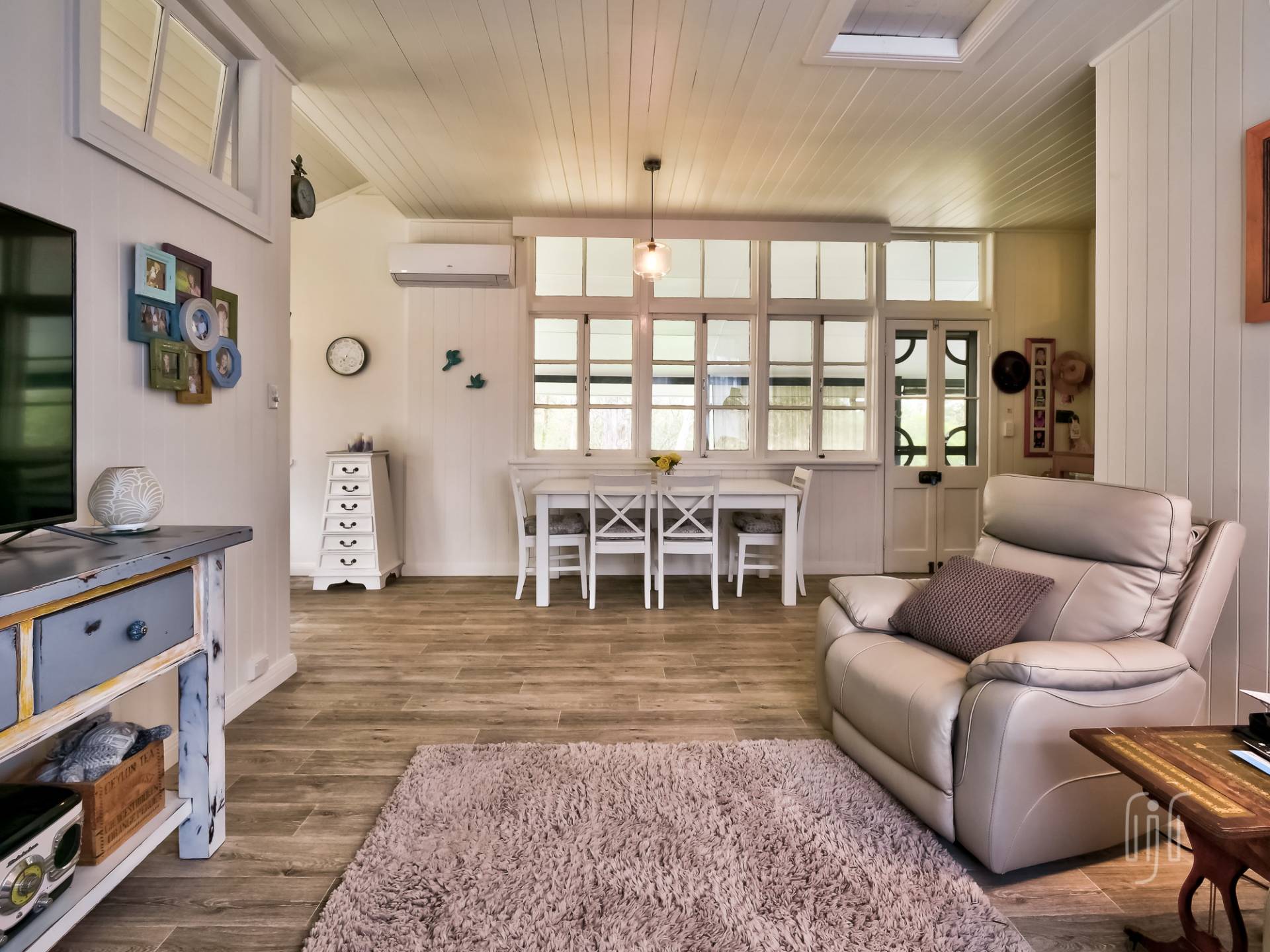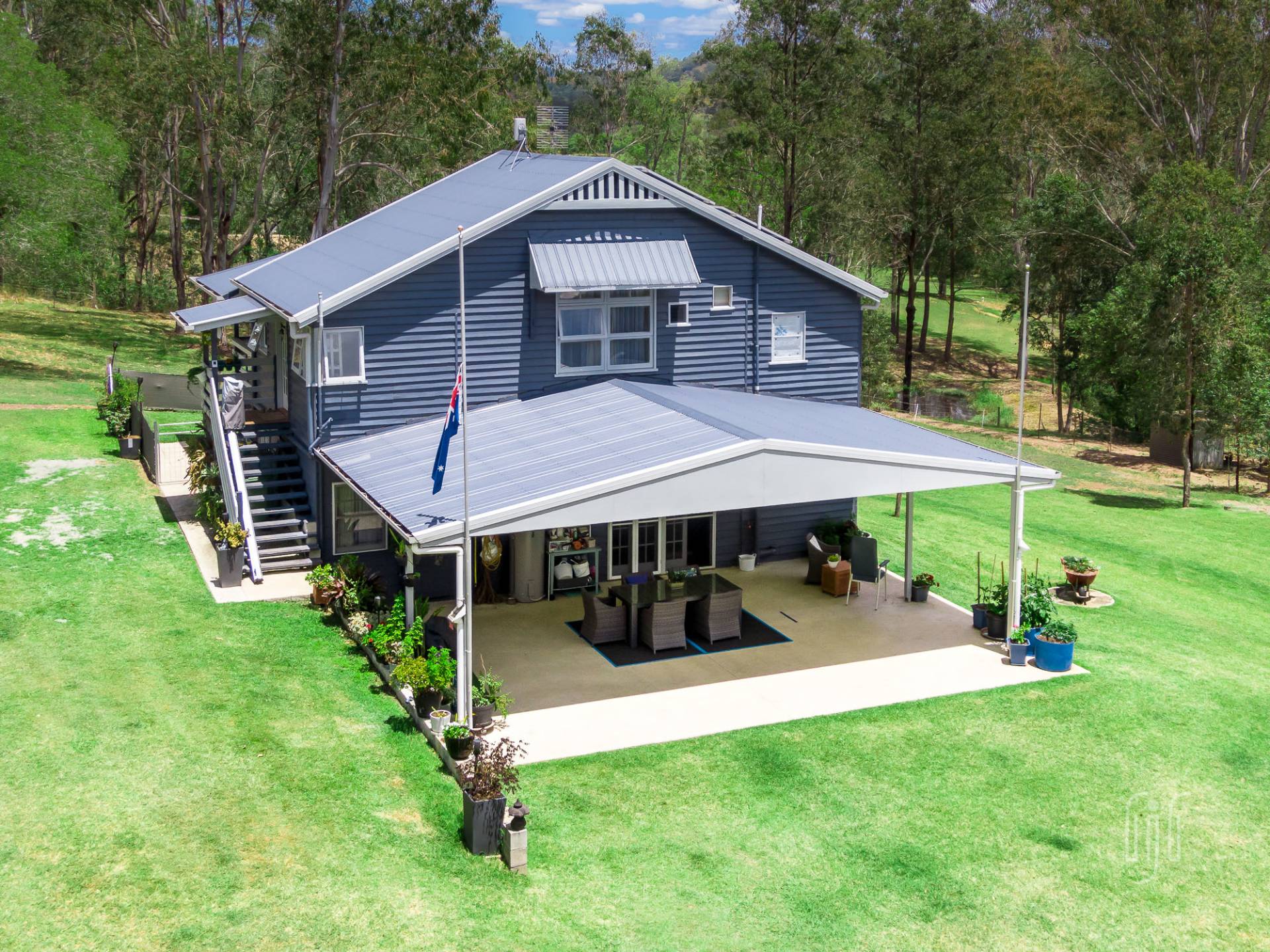 The picturesque grey & white weatherboard-clad home at 31 Hasthorpe Rd Kandanga is sited on a well-grassed 6,802m2 block, far enough off Mary Valley Rd to be away from any road noise. It’s a double-storey building that takes in two cottages … one upstairs and one downstairs!