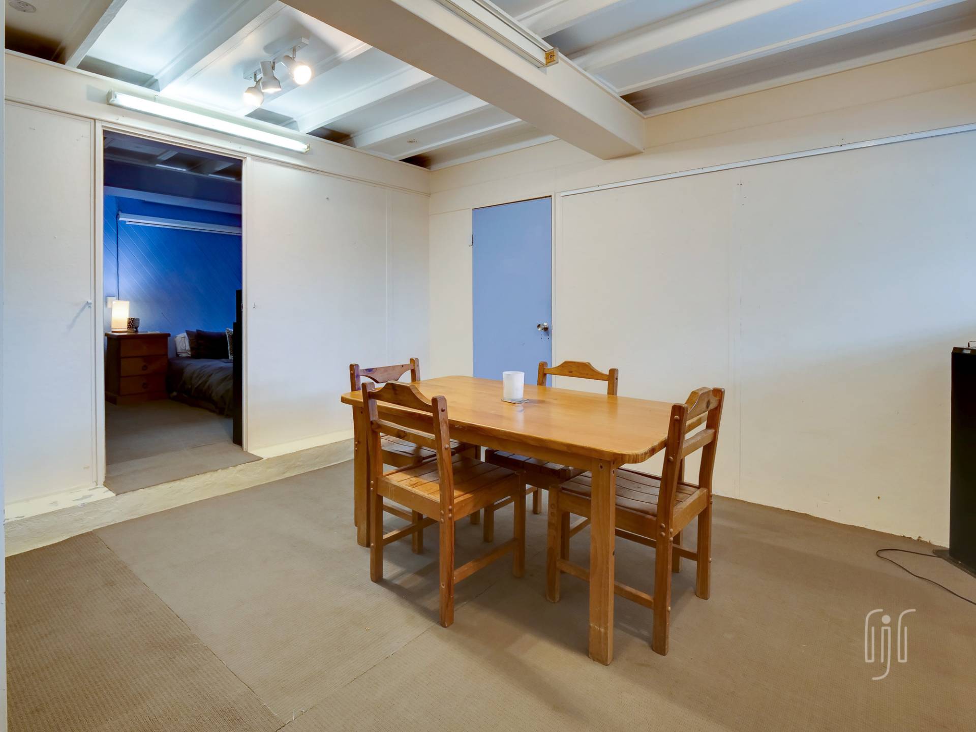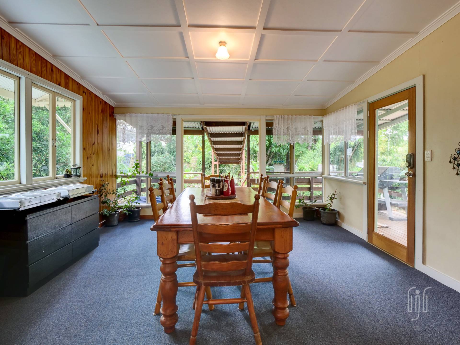 The front stairs lead to an entry room, the enclosed former veranda. The loungeroom is more than generous in size and has air conditioning and a slow-combustion-style gas heater. The dining room, an addition to the original, has access to both loungeroom and a kitchen with electric cooking and loads of storage.