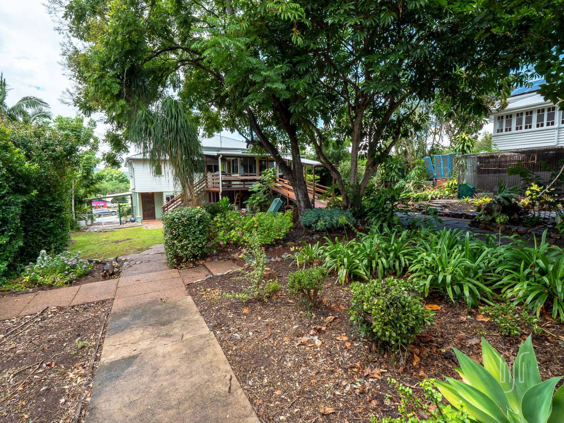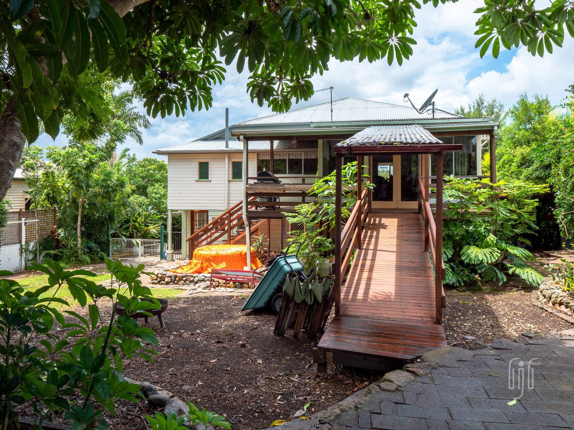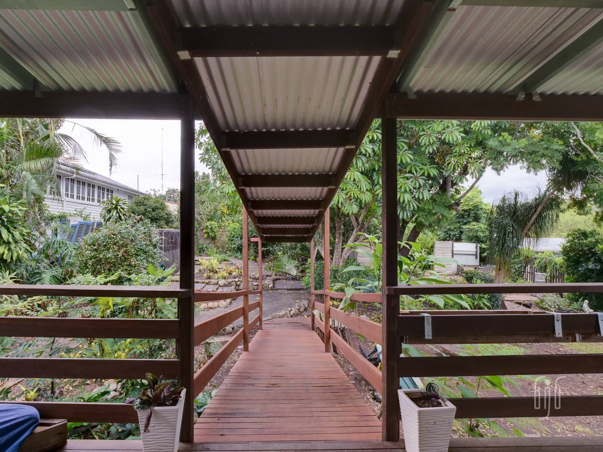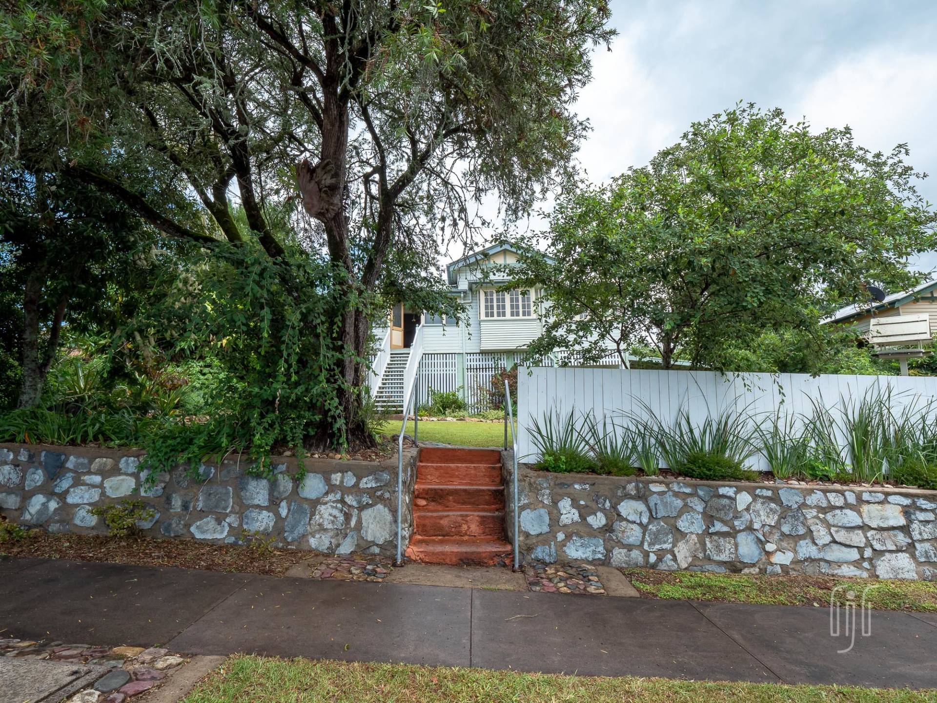 From the street, this is a high-set Queenslander with distinctive features and plenty of character. It sits in landscaped grounds that include a well-presented front yard of lawn surrounded by edged gardens, and a rear yard full of great spots (a little oasis).