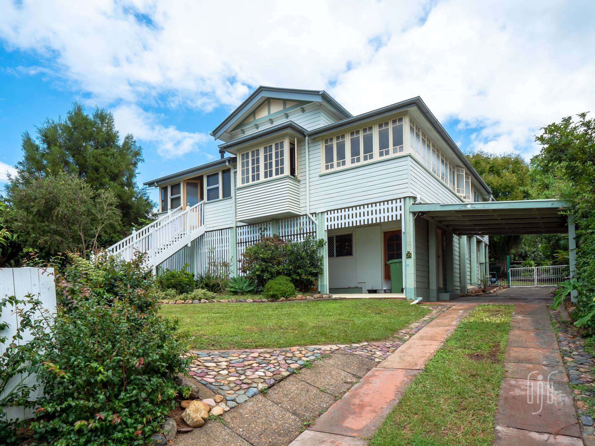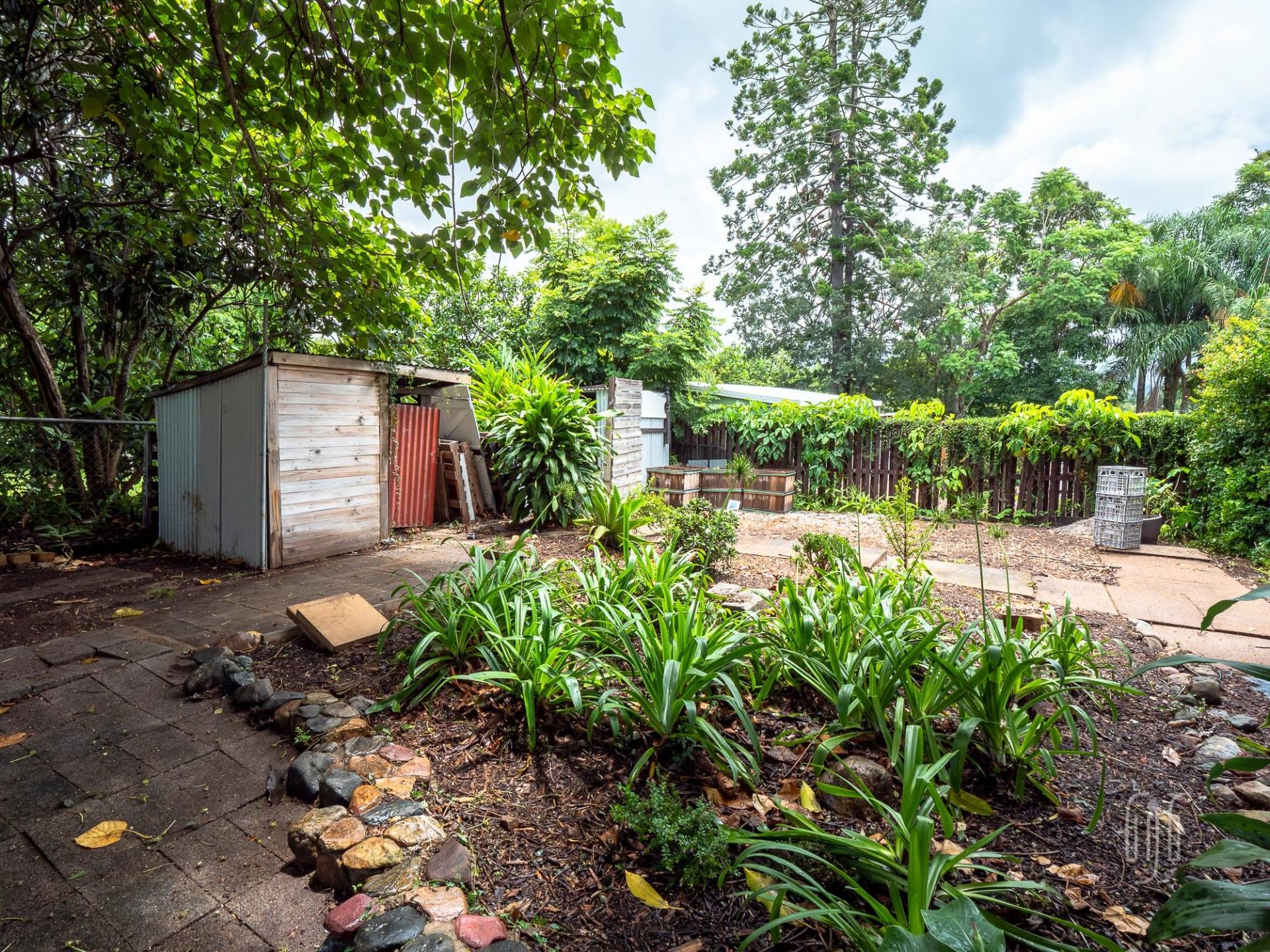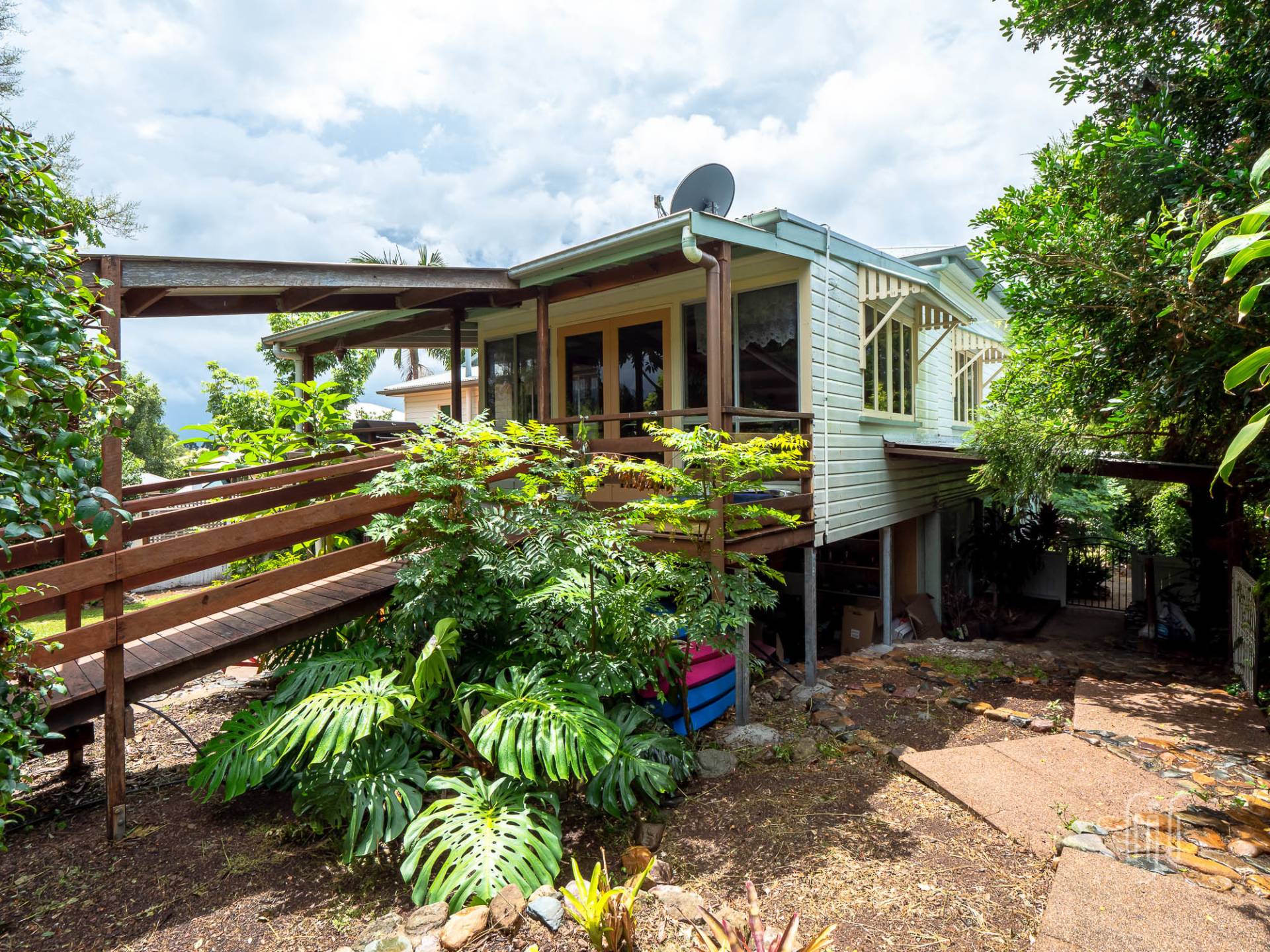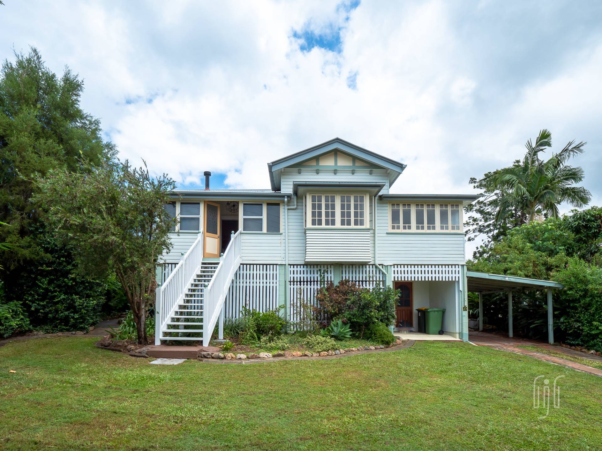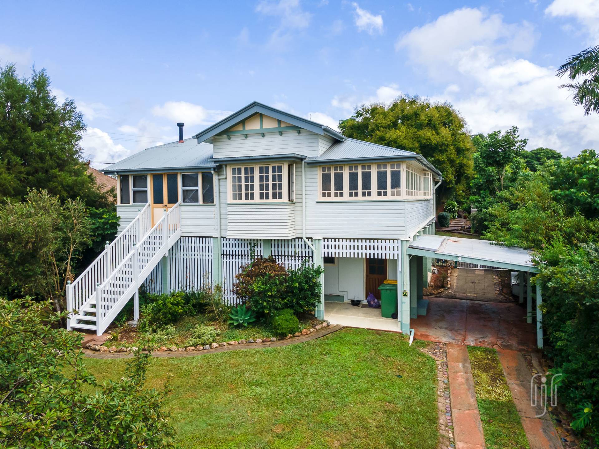 From the street, this is a high-set Queenslander with distinctive features and plenty of character. It sits in landscaped grounds that include a well-presented front yard of lawn surrounded by edged gardens, and a rear yard full of great spots (a little oasis).