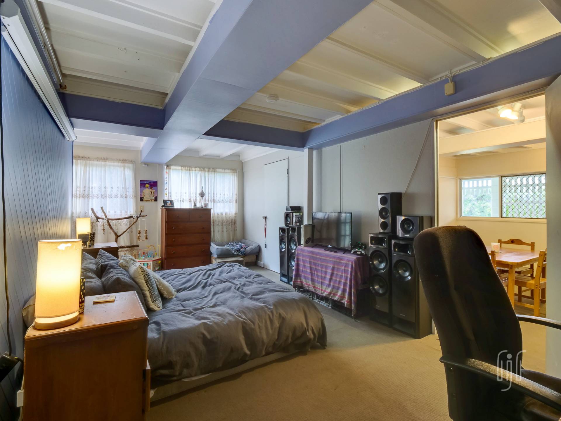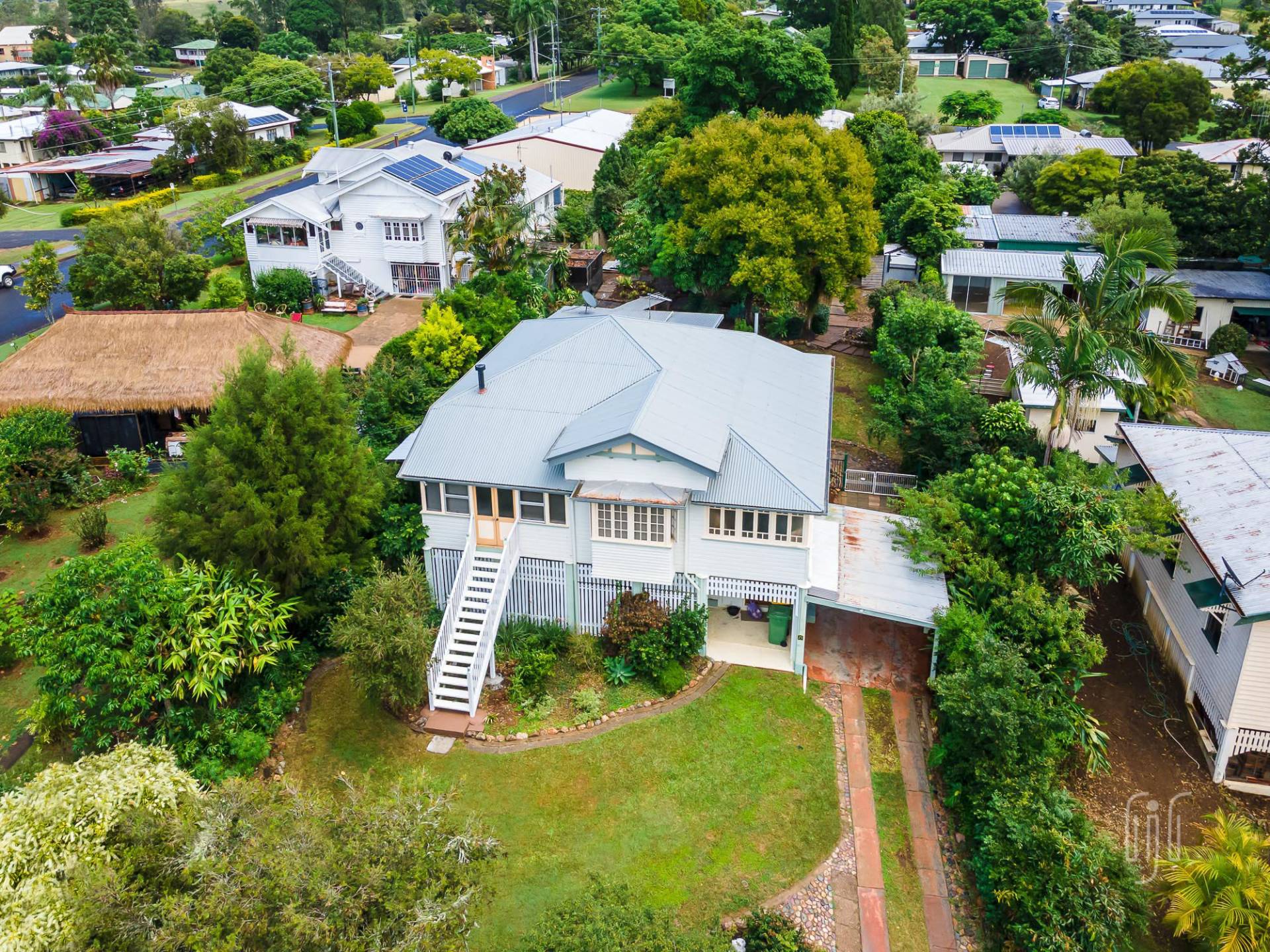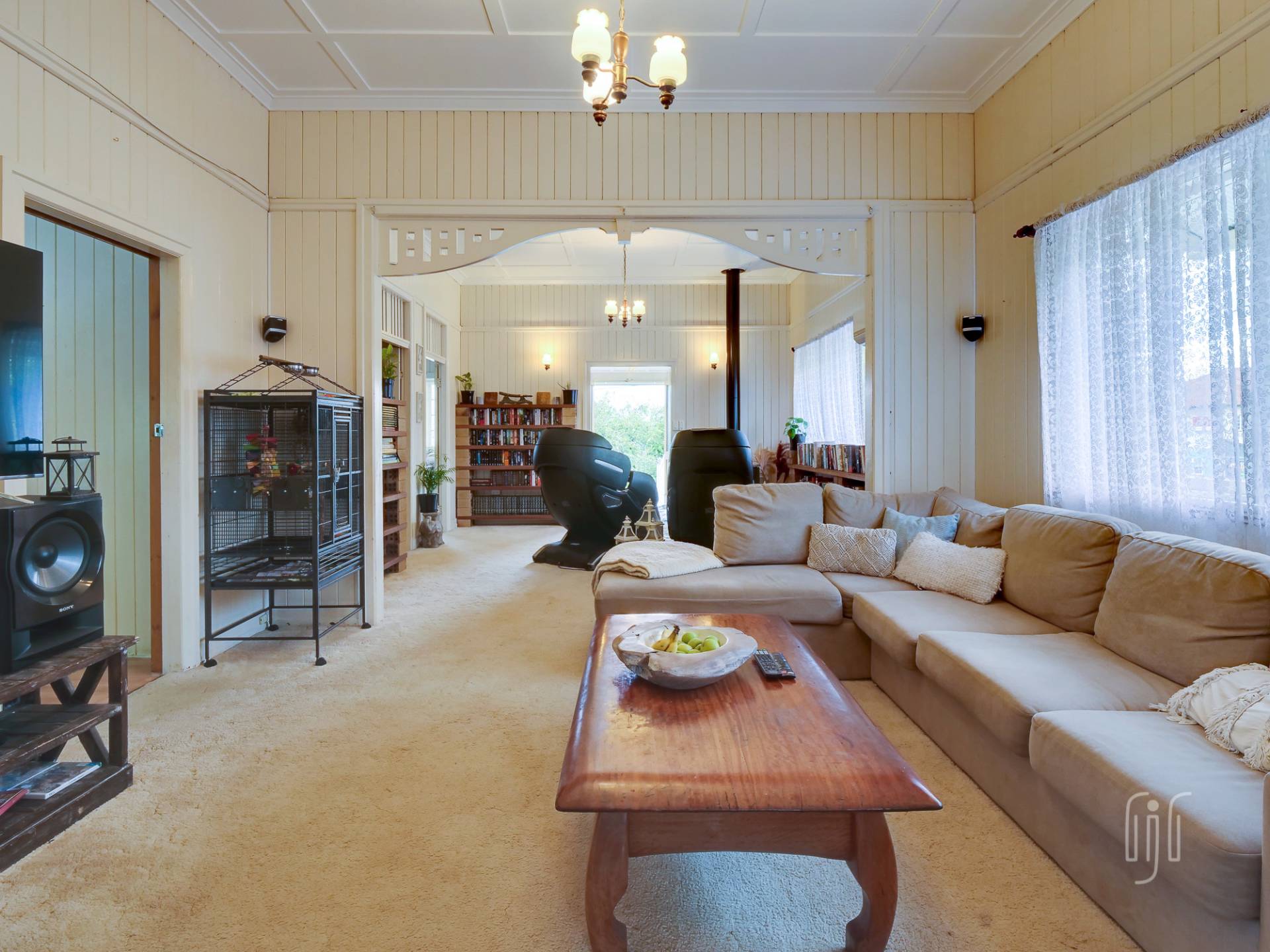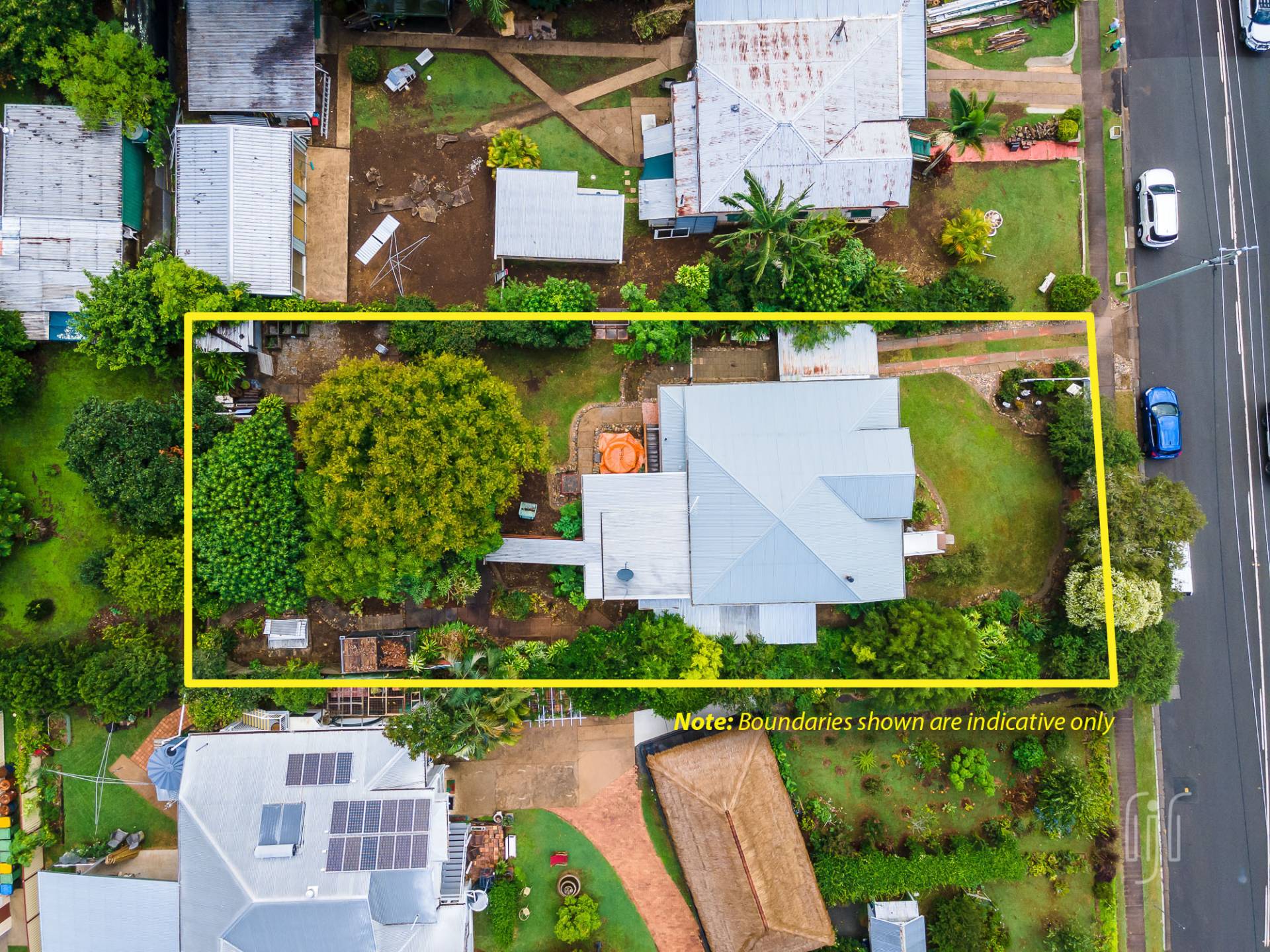 From the street, this is a high-set Queenslander with distinctive features and plenty of character. It sits in landscaped grounds that include a well-presented front yard of lawn surrounded by edged gardens, and a rear yard full of great spots (a little oasis).