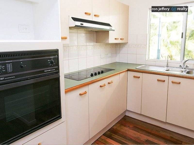 The lounge and dining rooms are the traditional L-shape with air conditioning and ceiling fans. If youre in the kitchen, youre still in the action. AND, you can still enjoy the fantastic view from the living area. There is one bathroom with a separate toilet and three bedrooms, all with built-in-robes. The master has direct access to the veranda.