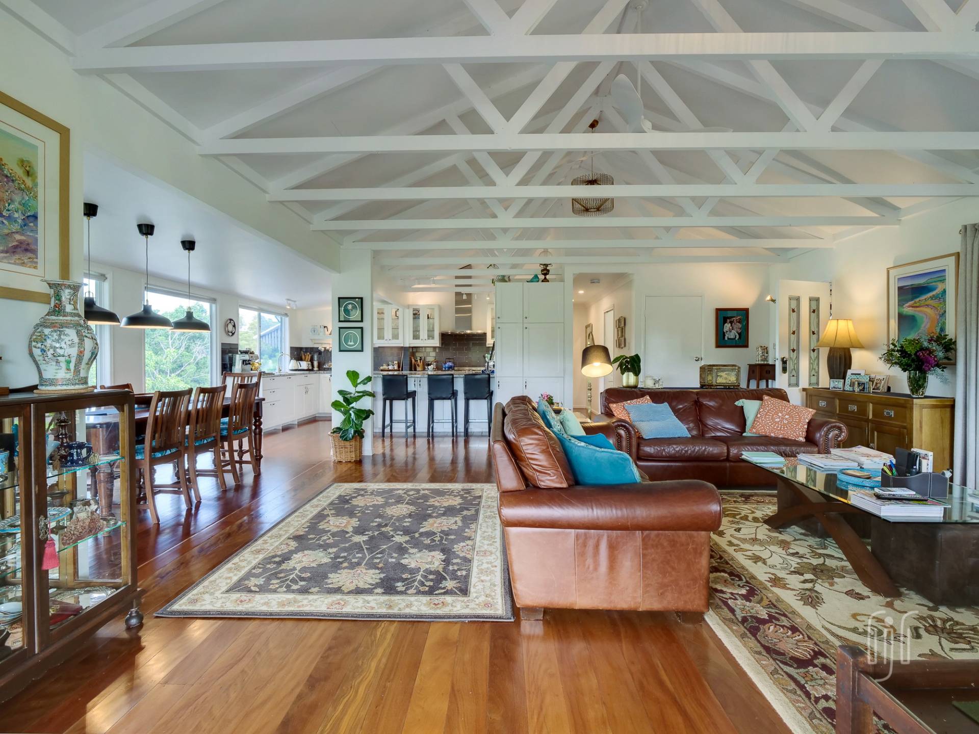 Arriving on a semi-circular driveway and descending the grand stairway through landscaped grounds to the homestead, still doesn’t prepare you for the Hamptons style home that lies within. This is a 5½ acre (2.25 ha) block that not only borders the creek, the homestead overlooks it!