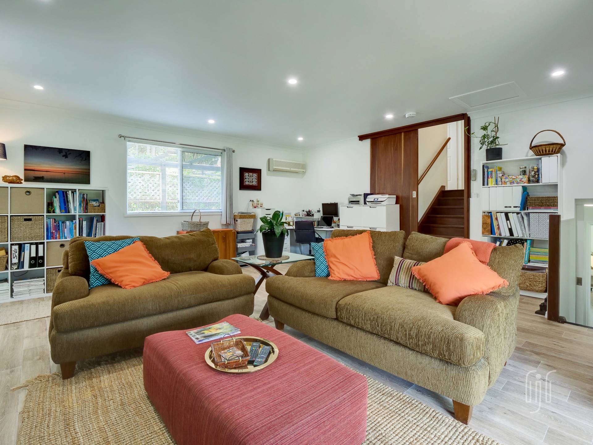The hallway (dog-legged so you can’t see through) leads to the master bedroom suite, complete with both built-in & walk-through robes and an en-suite, second bedroom & main bathroom. It also provides access to the multi-purpose living area on the lower level and extra bedrooms on the bottom level. The last bedroom has access to a large storeroom and second outside relaxation spot, almost on the creek. How cool!