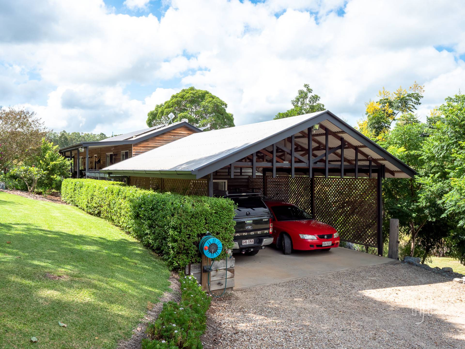 Car accommodation includes the double carport attached to the home, plus a share of the extensive outbuilding away from the home. Outbuildings include an enclosed workshop/vehicle park, a 3-stable complex and a high access shed suited to caravan/ boat/motorhome storage.