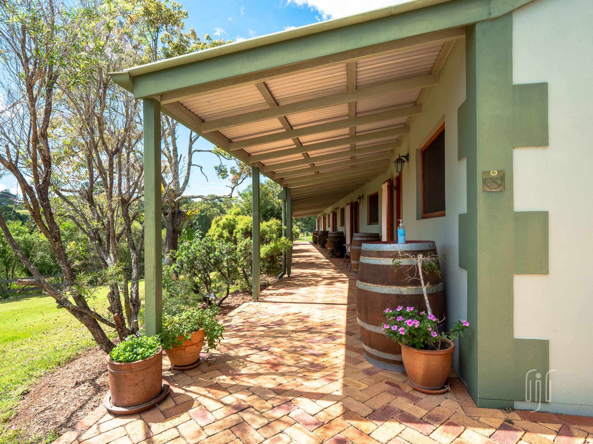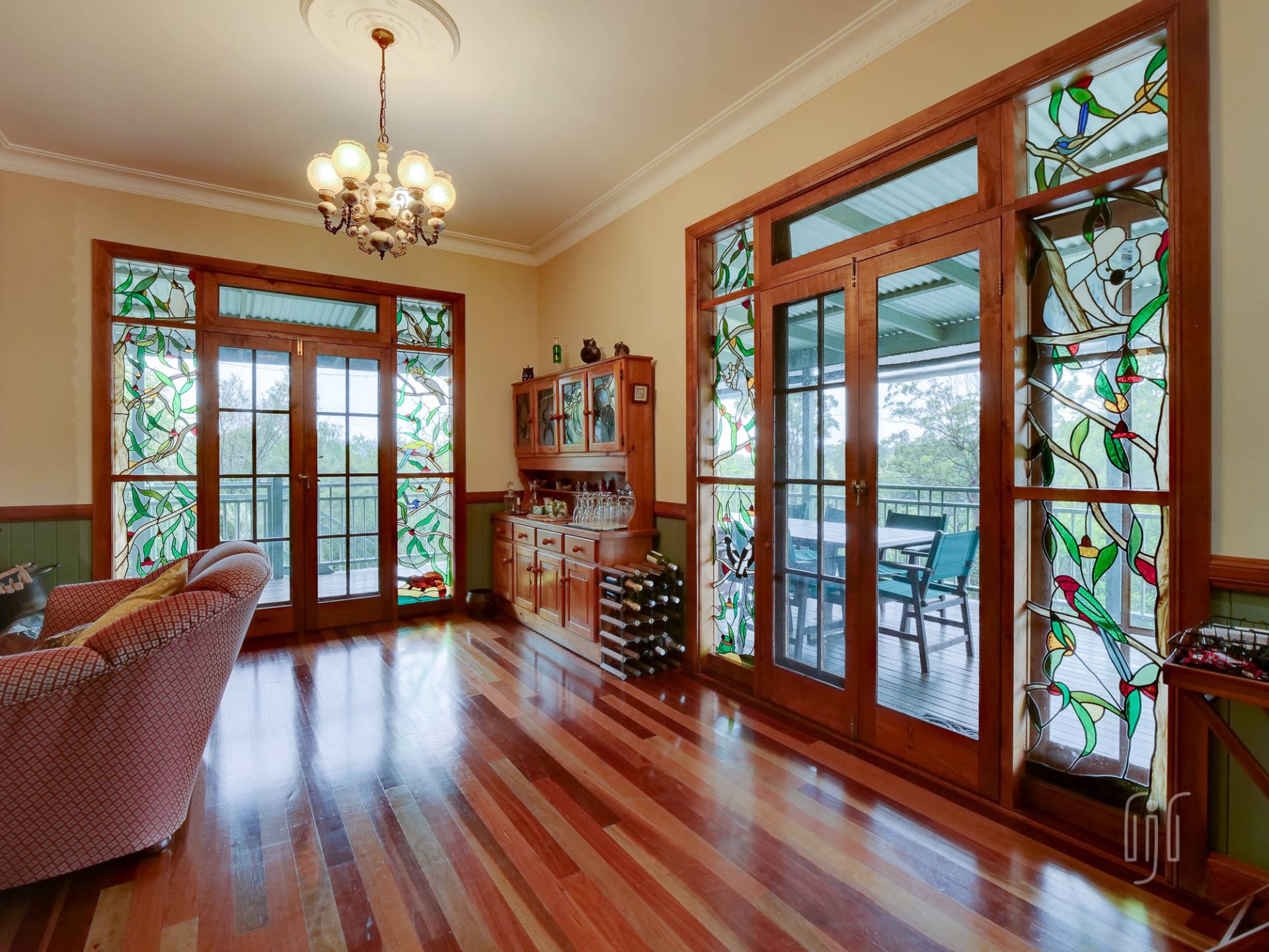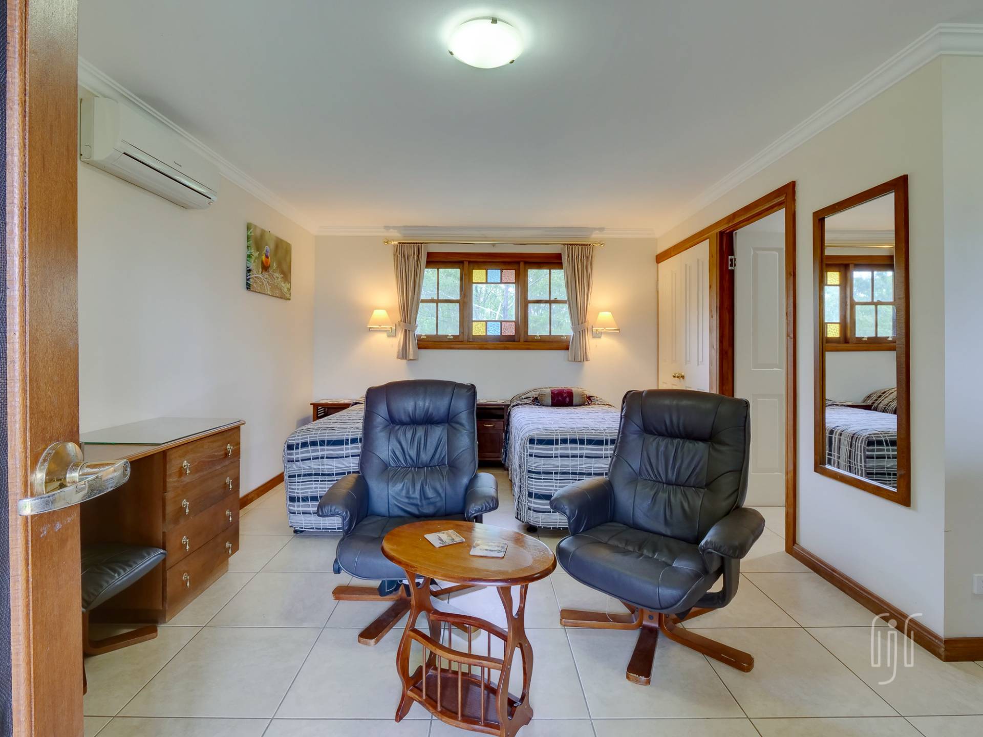 From the moment you walk through the door of the Lodge, you know you are in a grand residence. An entry, wide enough for a piano, guides you via a change of levels, to an open plan lounge/dining room that features an open fire. The style of furniture sets the tone for this home (and most of the furniture stays). The timber floors on display in this room extend right through the Lodge. The kitchen is of generous proportions with plenty of bench space, wonderful storage that includes a walk-in pantry, a dishwasher, gas cooktop & double oven. There are 3 en-suited bedrooms, all with tea & coffee making facilities & external access. One is wheel chair (disable) friendly. There is a separate office and a powder room. A true homestead, the Lodge has wide verandas on all sides. The north/east corner is the favoured spot where you have a view over the pool, the property and the Amamoor countryside!