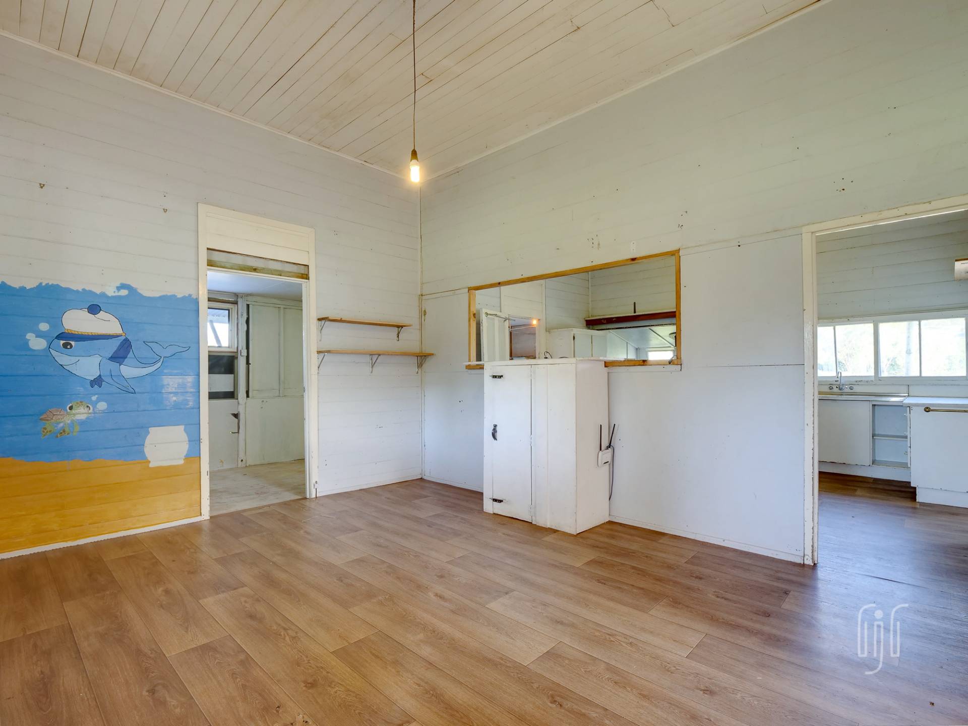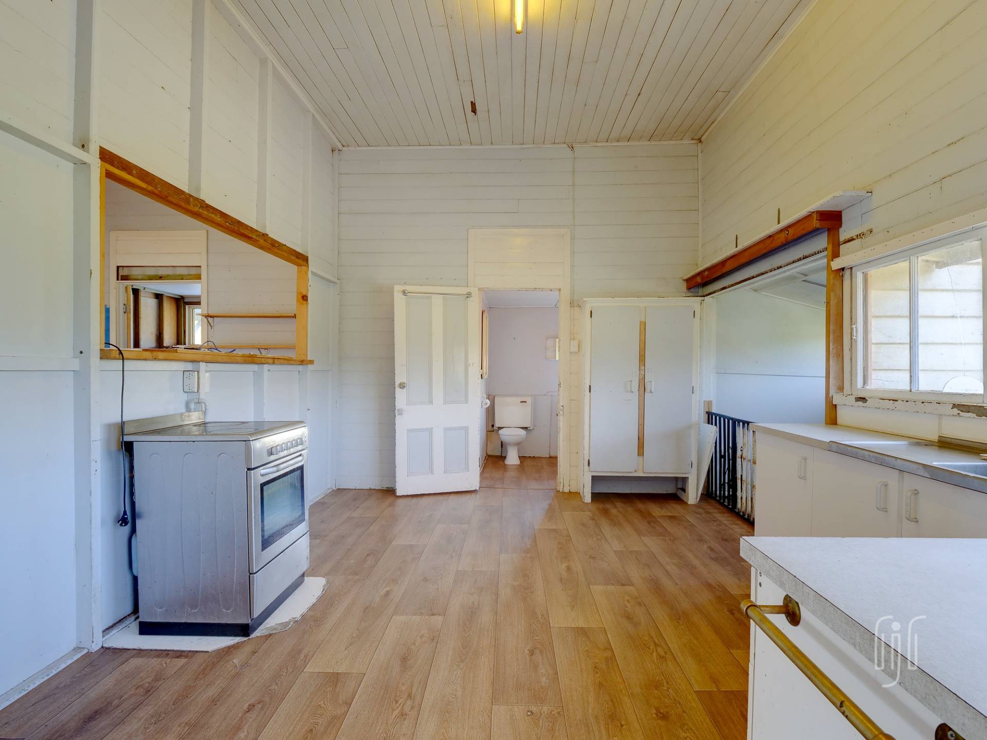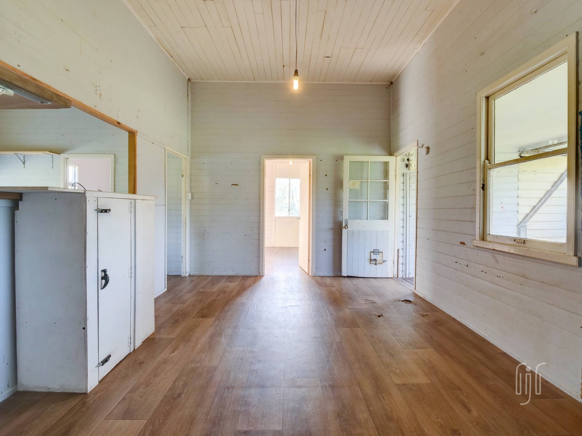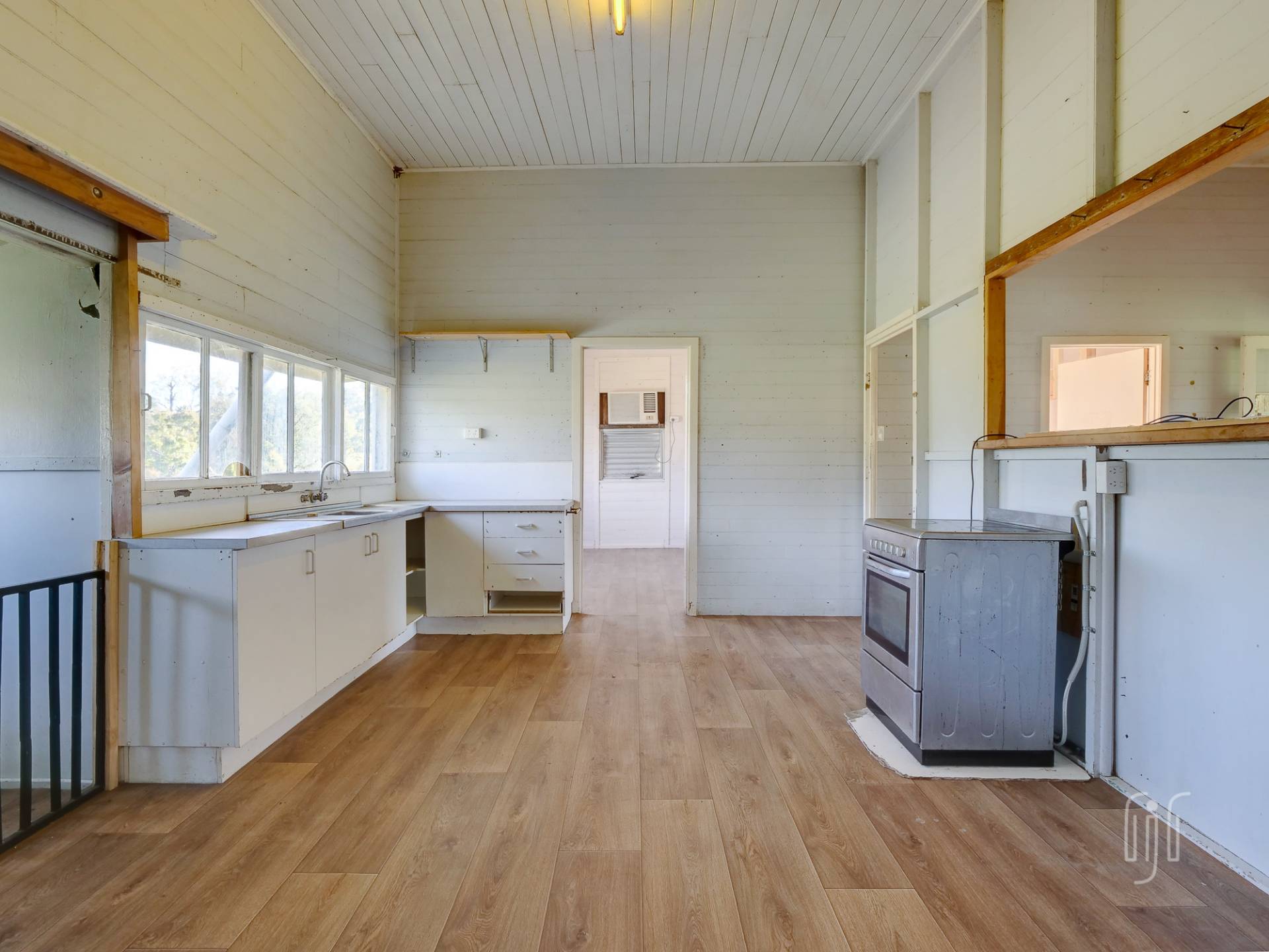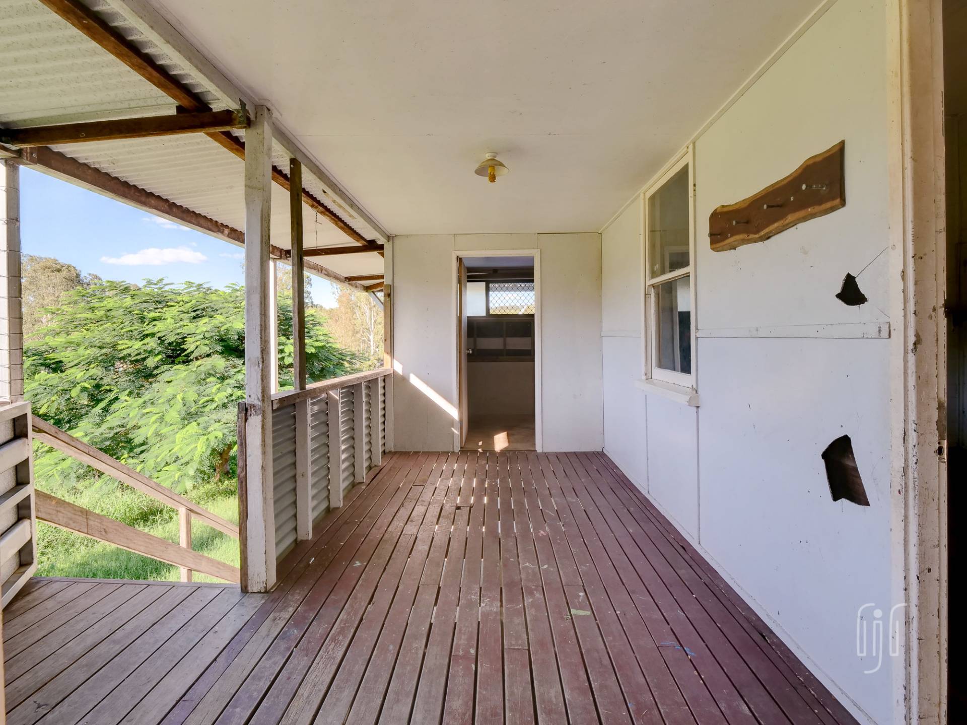 You enter from the front veranda to a living area, with high ceilings, divided between loungeroom and kitchen-dinner. The kitchen, with a slow combustion heater where the fuel stove used to be, could be a great eat-in style country kitchen. There are 3 generous sized bedrooms down one side of the house, 2 with air conditioners, 1 with a built-in robe and 1 with a loft/mezzanine. The long sleepout on the other side is divided into 2 rooms, and there is 1 bathroom. With easy access to underneath, you can see that this house has good bones. Vehicle accommodation is a carport attached to the house.