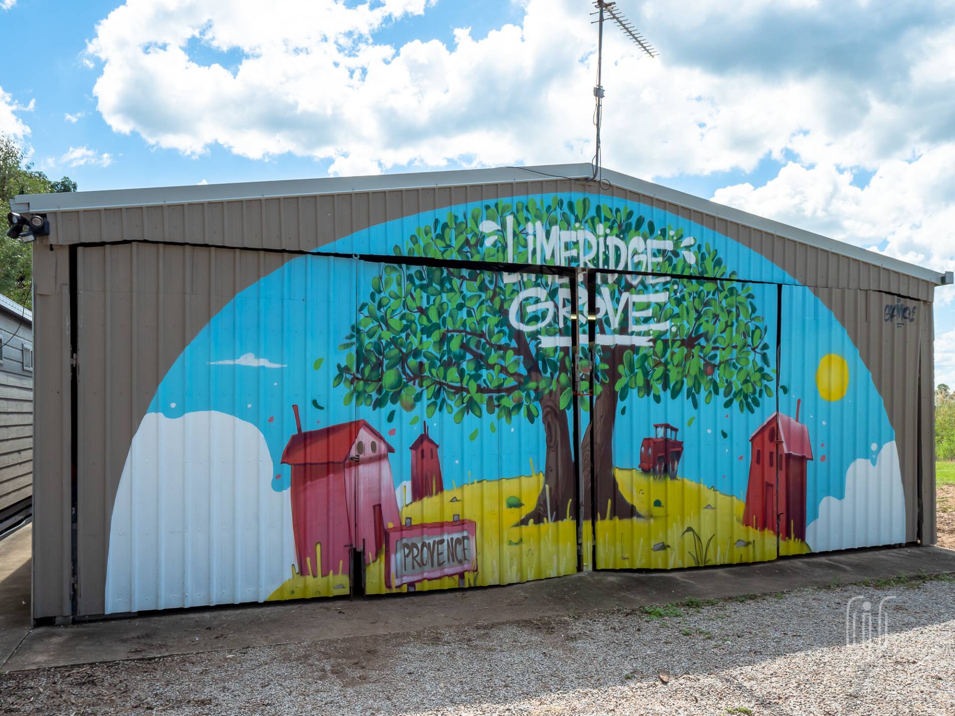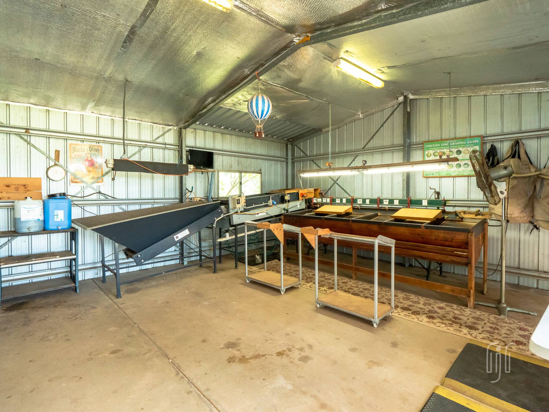 • An open machinery shed,