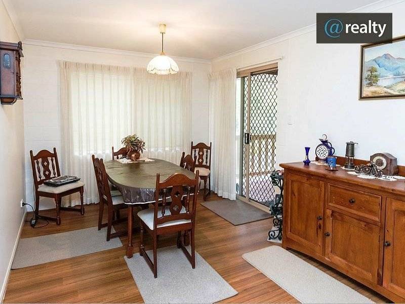 A concrete path leads to a long veranda on this high set solid brick home. You enter an air conditioned living room, divided between lounge and dining areas, overlooked by a well appointed kitchen. This living area can be accessed from verandas on both sides of the house. The large laundry off the kitchen really extends the kitchen space. A central hallway gives access to four bedrooms, 3 with built-in-robes, and one bathroom. The word that comes to mind is "immaculate". The floor coverings, paintwork and general presentation are immaculate!