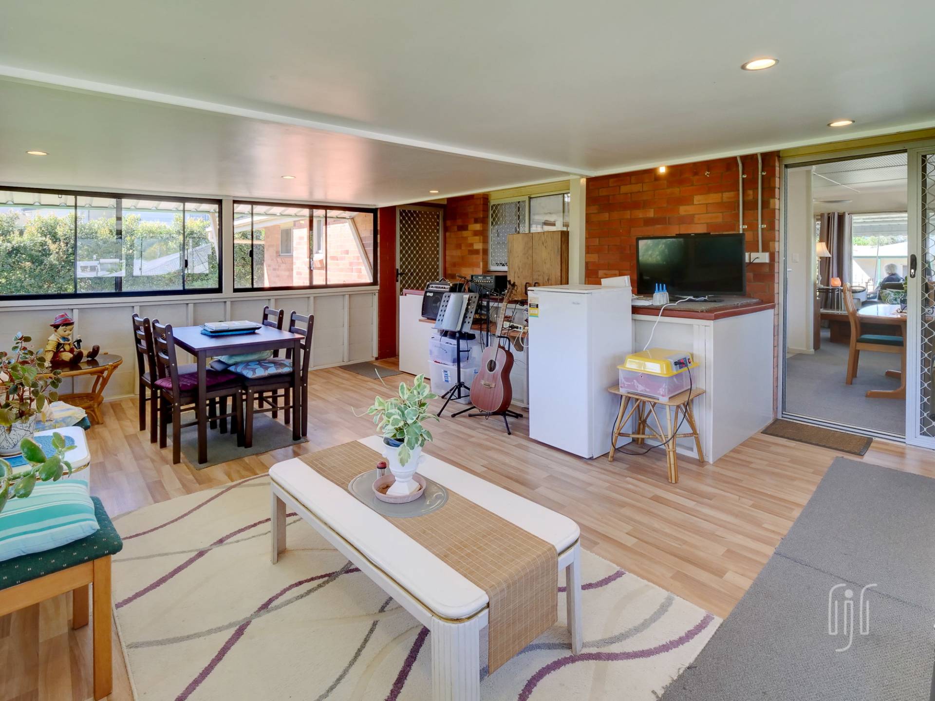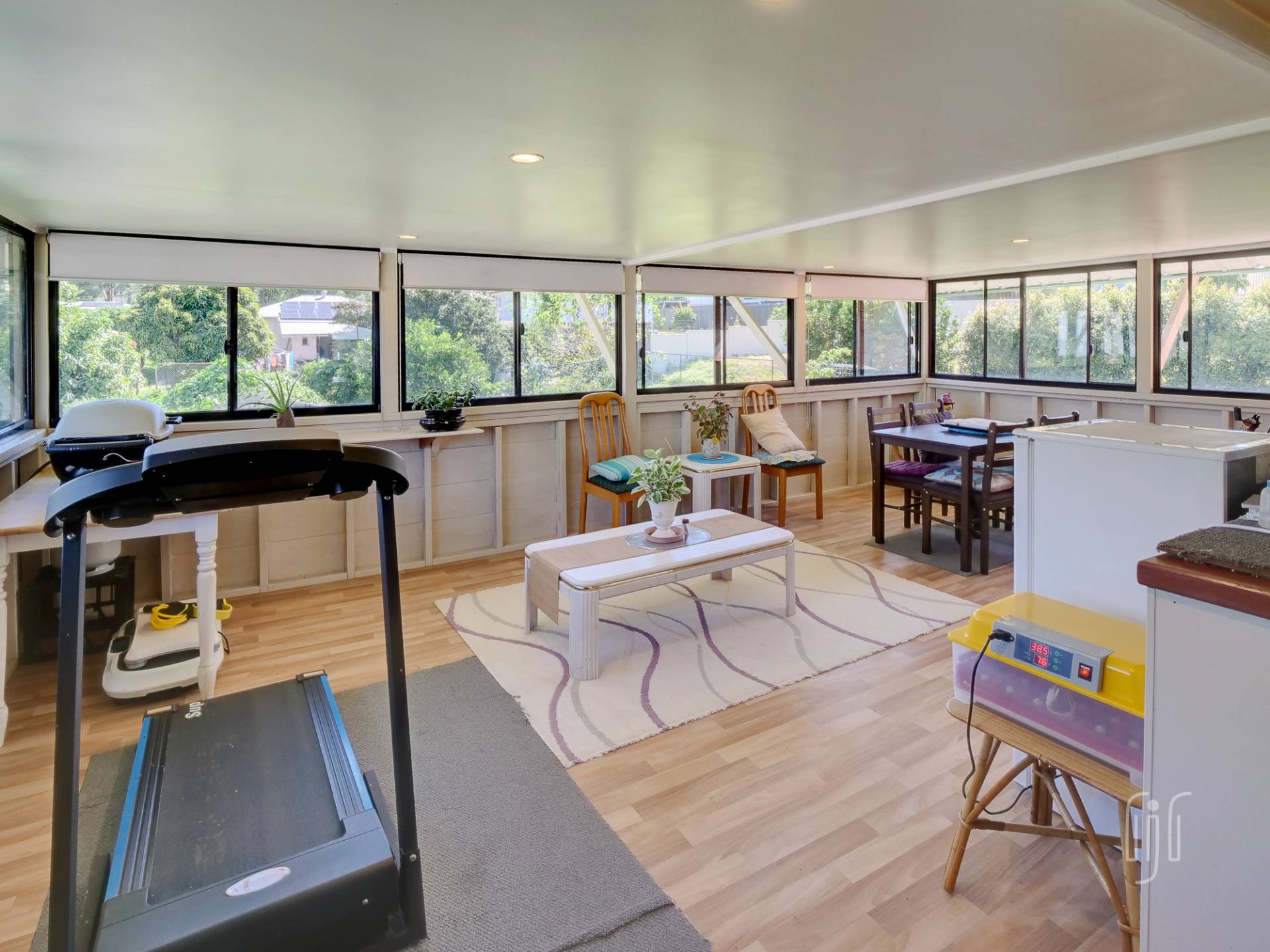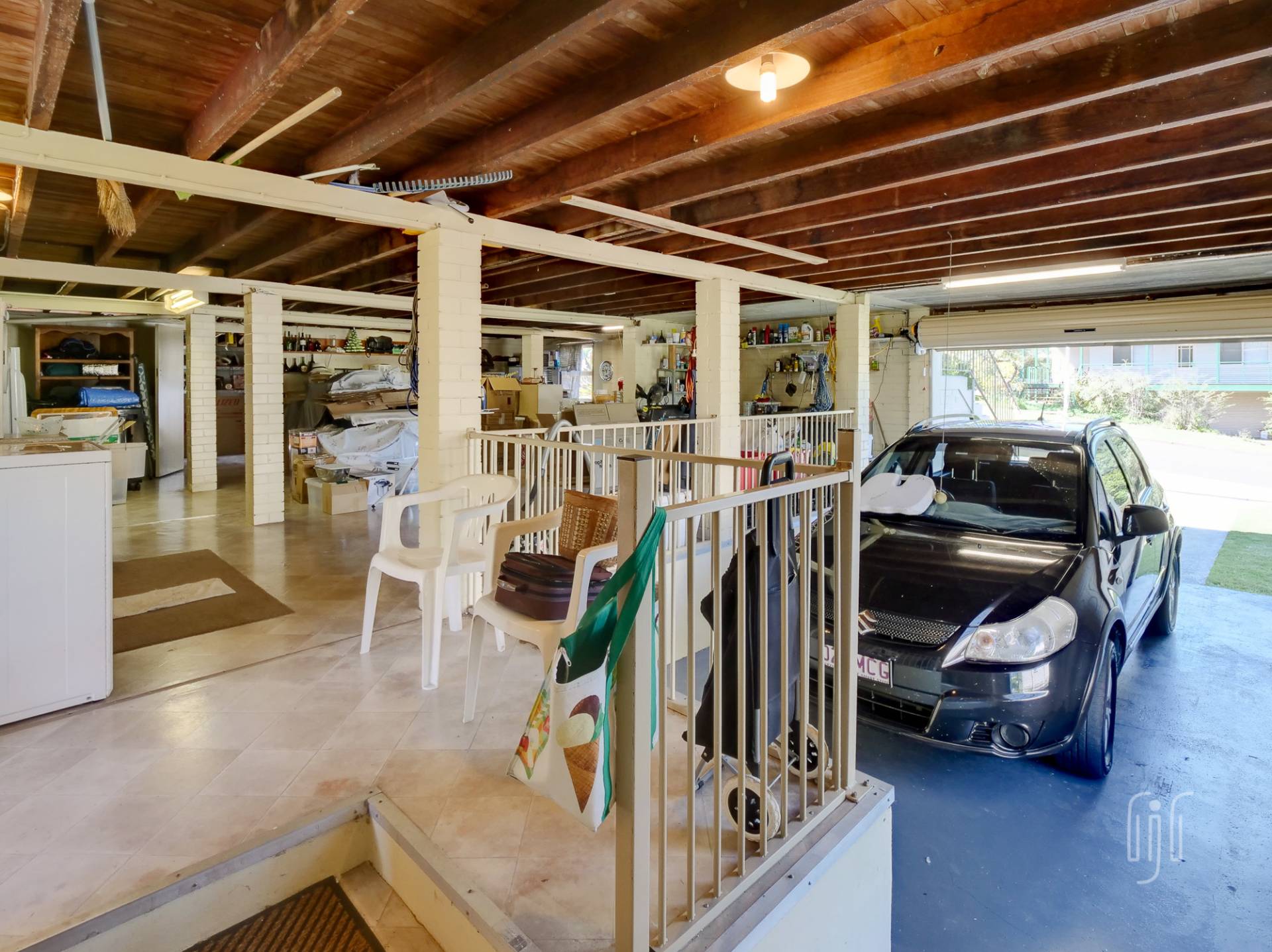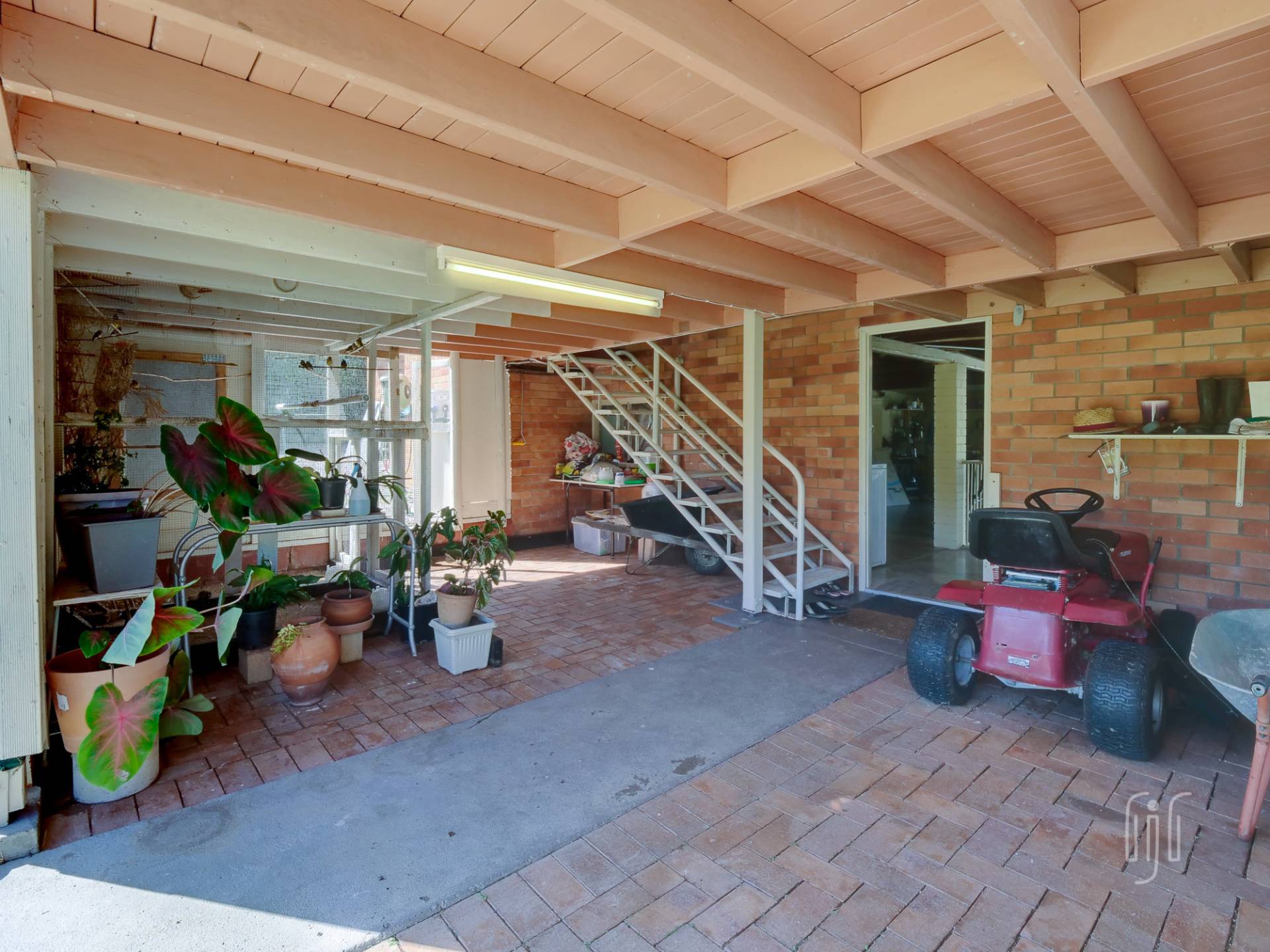 The lower level has a cool spot under the sunroom, and an even cooler area under the house. This area provides parking for 1 vehicle and, apart from the laundry and downstairs shower/toilet, there’s heaps of space for workshop & storage. Extra vehicle parking is a single carport attached to the home.