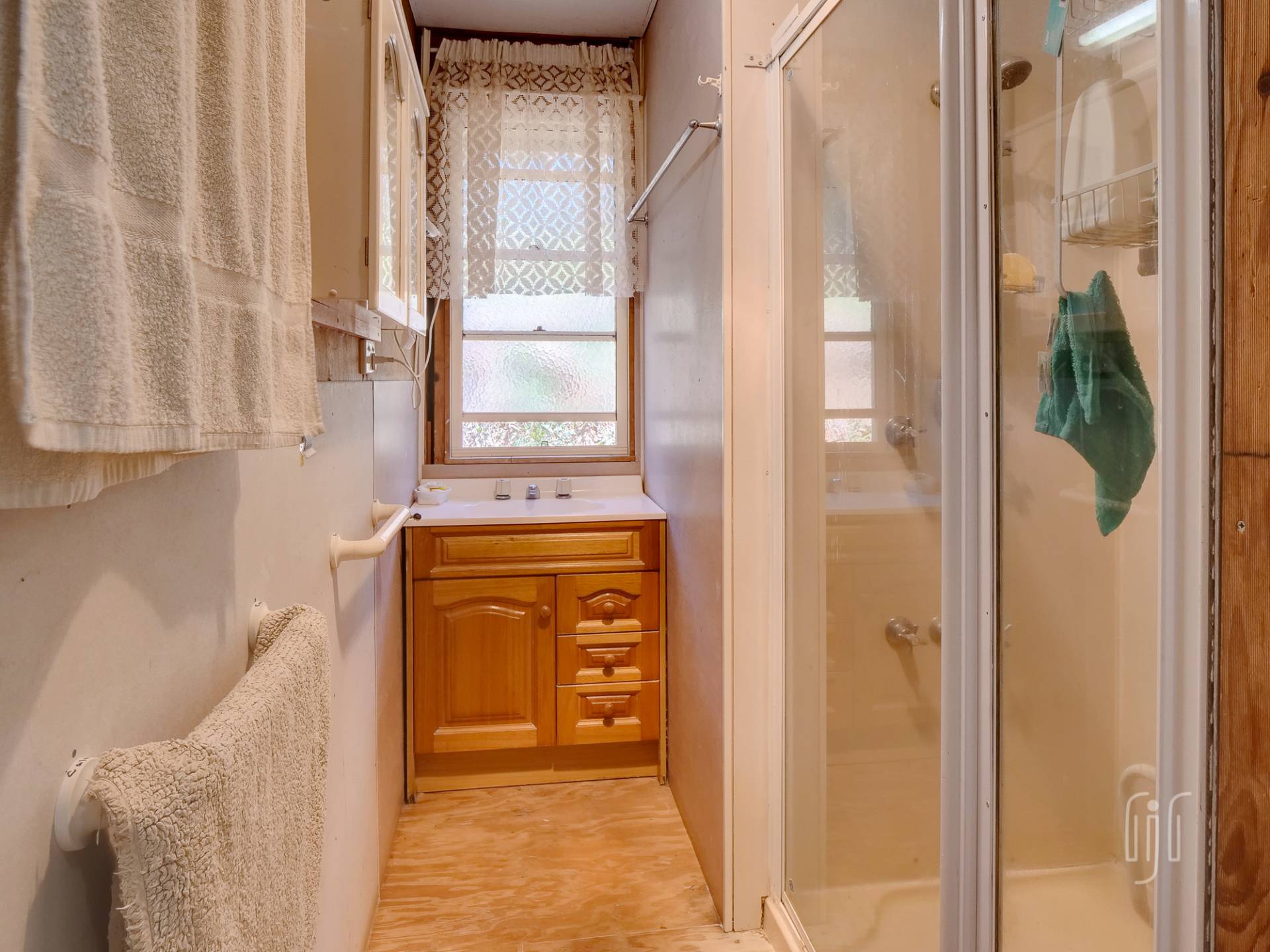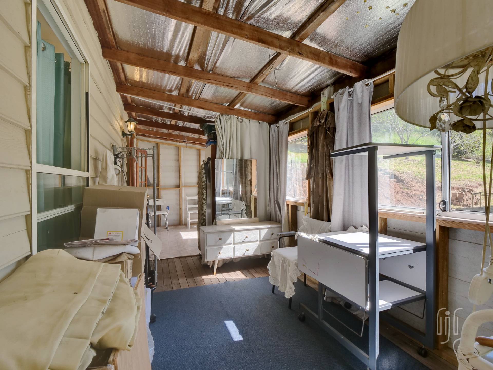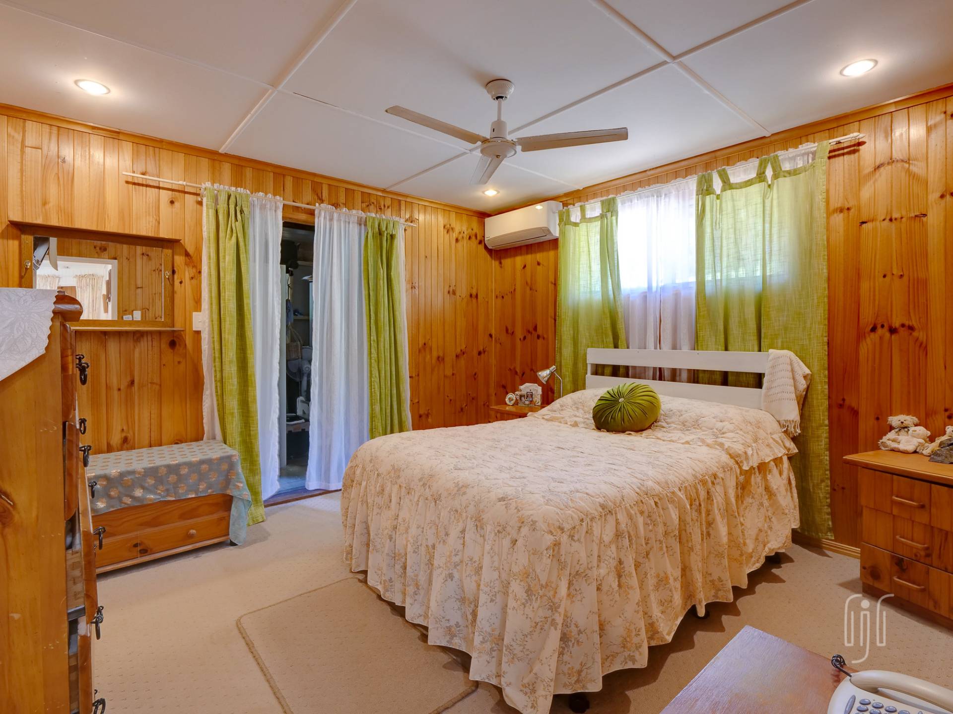 There is 1 bathroom, 2 bedrooms, both with built-in robes, and 2 sleepouts (require some finishes), one at each end.